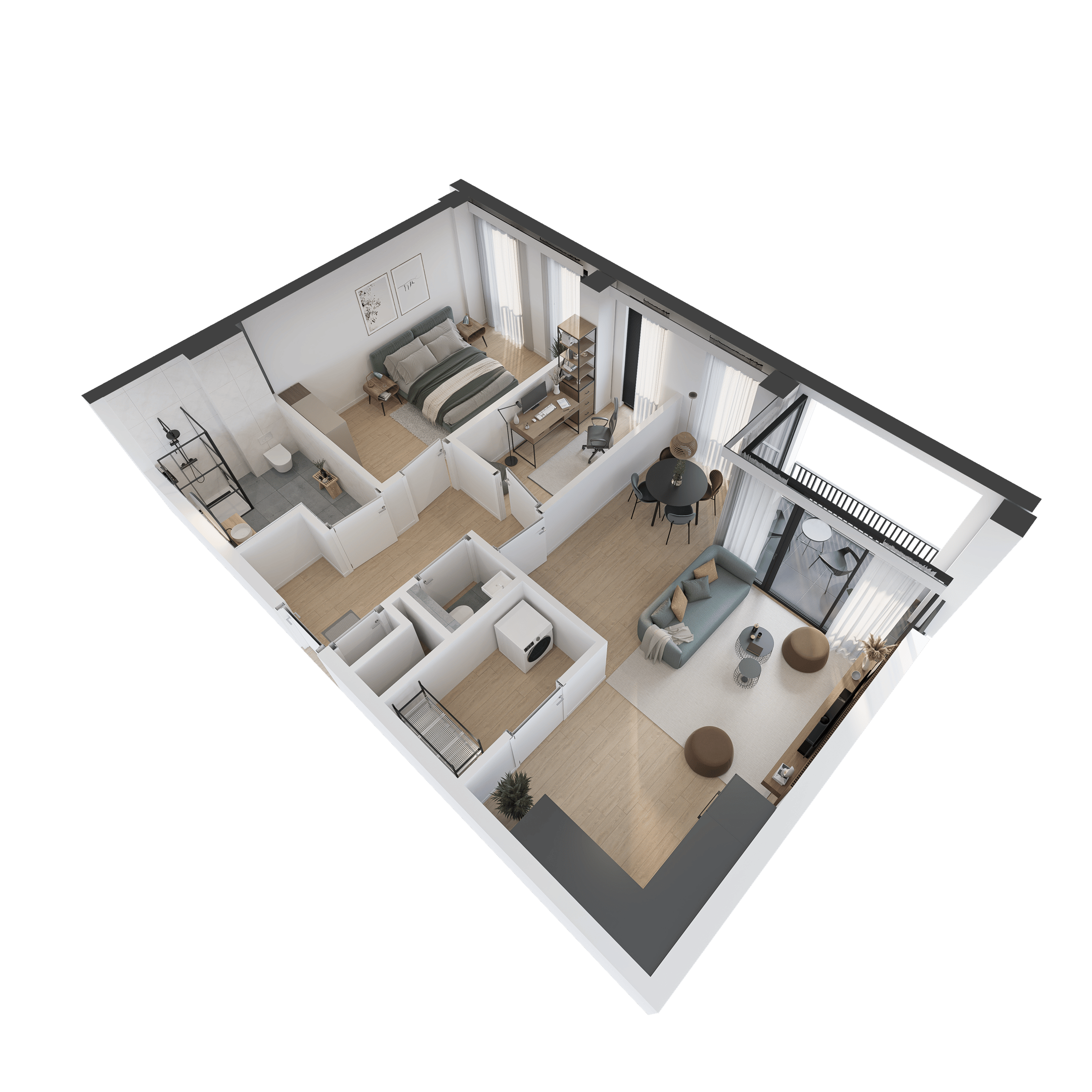 Ontdek het comfort van modern wonen in appartement type A2, een ruime nieuwbouwwoning van 73 m2, strategisch gelegen op de 6e verdieping. Elk van deze appartementen biedt een prachtige loggia, een uitnodigende buitenruimte die het hele jaar door een verlengstuk van uw woonkamer vormt. Geniet van de rust en privacy hoog boven de levendige stad, met alle gemakken van een nieuw gebouw. De slimme indeling zorgt voor een optimale benutting van de ruimte, terwijl grote ramen zorgen voor een overvloed aan natuurlijk licht. Dit is uw kans om te wonen in een stijlvol appartement dat design, comfort en functionaliteit combineert.