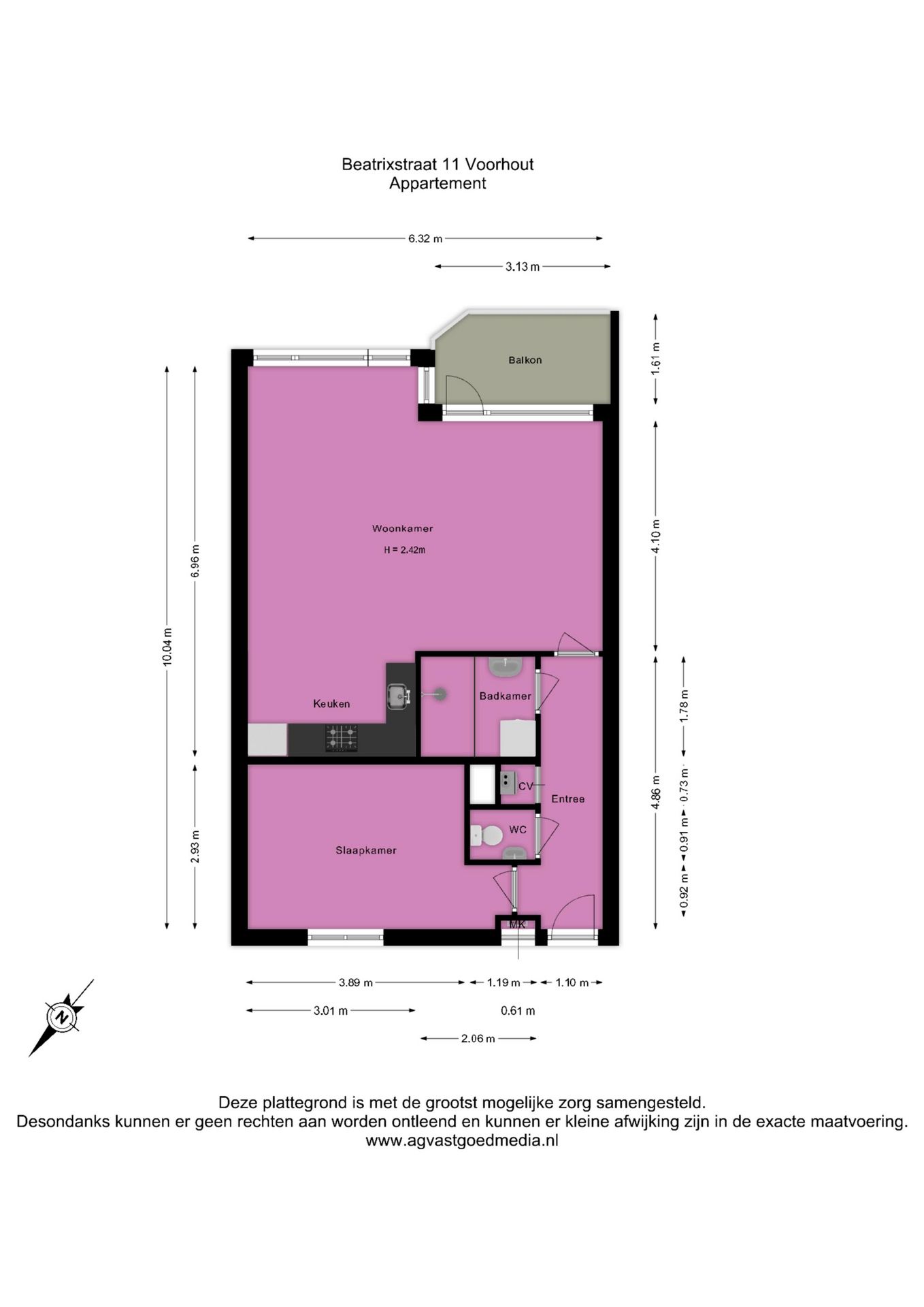 Appartement in het hartje van Voorhout! Ben jij opzoek naar een net onderhouden appartement op toplocatie? Kom dan zeker eens kijken bij de Beatrixstraat 11 te Voorhout! Dit appartement beschikt over een ruime woonkamer, nette badkamer en een balkon op het zuiden. De locatie is fantastisch, namelijk midden in het bruisende centrum van Voorhout. Hier zijn diverse voorzieningen te vinden zoals supermarkten, winkels, restaurants en scholen op loopafstand. Binnen enkele minuten bereik je het centraal station van Voorhout, evenals de uitvalswegen naar de omliggende steden Leiden, Amsterdam en Den-Haag. Kortom, een appartement dat je absoluut niet wilt missen! Ben jij nieuwsgierig geworden? Neem dan snel contact met ons op om een afspraak in te plannen. En wie weet, misschien wordt dit binnenkort jouw nieuwe thuis. De indeling is als volgt: Via de gezamenlijke entree met brievenbussen, bellentableau, intercominstallatie, trappenhuis, berging en lift bereik je de eerste verdieping. Eerste verdieping: Bij binnenkomst van de woning bevind je je in de entree met aan je linkerzijde toegang tot de goed formaat slaapkamer, het toilet met fonteintje, cv opstelling, badkamer en verder toegang naar de woonkamer. De woonkamer is ruim opgezet en voorzien van een airco en een fijn lichtinval doormiddel van de raampartijen. De open keuken is uitgerust met diverse inbouwapparatuur waaronder een gaskookplaat, afzuigkap, oven, vaatwasser en koel-vries combinatie. Middels de woonkamer bereik je het balkon, gelegen op het zuiden met uitzicht over de winkelstraat. Grenzend aan de woonkamer de badkamer, voorzien van een inloopdouche en wastafel. Ook is hier de aansluiting voor de wasmachine te vinden. Separaat het toilet. Bijzonderheden: - Airco in de woonkamer - VvE kosten 225,- per maand - Midden in het bruisende centrum van Voorhout - Energielabel A Ten aanzien van de juistheid van de vermelde informatie kan door ons kantoor geen aansprakelijkheid worden aanvaard, noch kan aan de vermelde informatie enig recht worden ontleend. Gebruiksoppervlakte wonen: De Meetinstructie is gebaseerd op de NEN2580. De Meetinstructie is bedoeld om een meer eenduidige manier van meten toe te passen voor het geven van een indicatie van de gebruiksoppervlakte. De Meetinstructie sluit verschillen in meetuitkomsten niet volledig uit, door bijvoorbeeld interpretatieverschillen, afrondingen of beperkingen bij het uitvoeren van de meting.