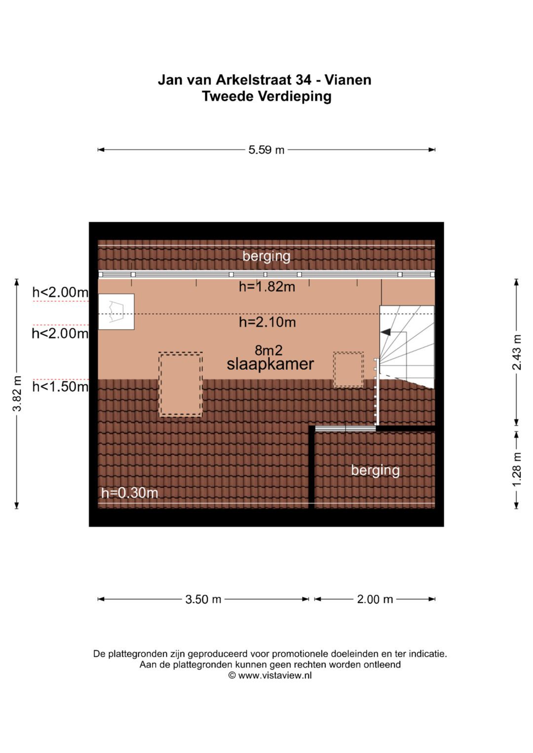 Ben je op zoek naar een lichte en verzorgde tussenwoning in een rustige, kindvriendelijke buurt? Dan is dit een fijne kans. Met een doorzonwoonkamer, een praktische zolder met nokverhoging en een diepe, onderhoudsvriendelijke tuin biedt deze woning verrassend veel ruimte. Bovendien is een snelle oplevering mogelijk. De woning ligt in een prettige woonwijk waar scholen, supermarkten, winkels, sportvoorzieningen en het historische centrum van Vianen dichtbij zijn. Ook de snelwegen A2 en A27 zijn binnen enkele minuten bereikbaar, wat de locatie extra aantrekkelijk maakt. De voortuin op het zuiden en de doorzonwoonkamer zorgen voor veel daglicht in huis. De woning is gebouwd in 1963 en beschikt over een woonoppervlakte van ca. 71 m2 (exclusief de zolder(!)) en een perceel van ca. 137 m2. Indeling: Begane grond: Entreehal met toiletruimte, vernieuwde meterkast en trapopgang naar de eerste verdieping. De woonkamer is voorzien van een laminaatvloer en heeft een open verbinding met de keuken. De open keuken beschikt over een gaskookplaat met afzuigschouw, vaatwasser en combi-oven. Vanuit de keuken is de achtertuin bereikbaar. Eerste verdieping: De overloop geeft toegang tot twee slaapkamers en de badkamer met toilet, inloopdouche en wastafelmeubel. En van de slaapkamers beschikt over een ruime inloopkast. Tweede verdieping: Via een vaste trap bereik je de zolderverdieping. In 2008 is hier een verhoogde nok geplaatst, gecombineerd met twee Velux-dakramen en een brede dakkapel aan de achterzijde. Hierdoor voelt deze verdieping licht en ruim aan. Achter de knieschotten bevindt zich extra bergruimte. Het is goed mogelijk om hier een (extra) slaapkamer te realiseren. Ook bevinden zich de cv-ketel (2019) en witgoedaansluiting op deze verdieping. Tuin: De achtertuin van circa 11,4 meter diep is verzorgd en onderhoudsvriendelijk ingericht, met een vrijstaande stenen berging en een praktische achterom. Door de royale diepte vind je op elk moment van de dag een plek in de zon of juist in de schaduw. Bijzonderheden: - Let op: de zolderverdieping (ca. 8 m2) telt volgens NEN2580 niet volledig mee als woonoppervlak; een deel heeft wl een hoogte van meer dan 2 meter en is hierdoor praktisch goed bruikbaar. - De woning is voorzien van glad gestucte wanden. - Onderhoudsvriendelijke achtertuin met berging en achterom. - Dak gesoleerd, houten kozijnen met isolerende beglazing; - In de koopovereenkomst worden een ouderdomsclausule en asbestclausule opgenomen. Aanvaarding: In overleg, kan snel Energielabel: C Interesse in deze woning? Schakel direct je eigen NVM-aankoopmakelaar in. Je NVM-aankoopmakelaar behartigt jouw belangen en bespaart tijd, geld en zorgen. Adressen van collega NVM-aankoopmakelaars in Vianen vind je op Domek.nl.
