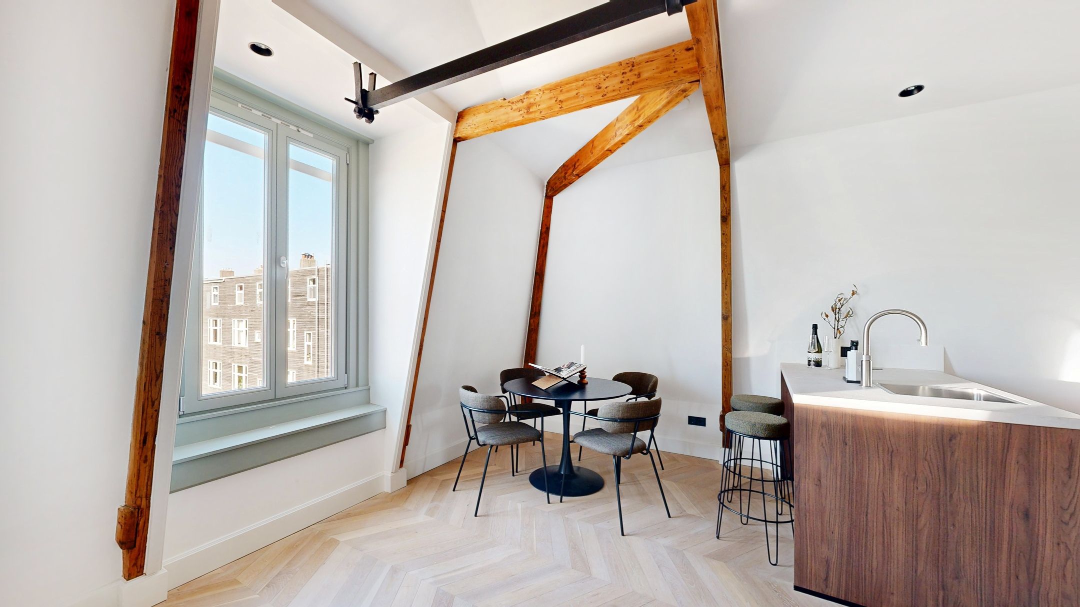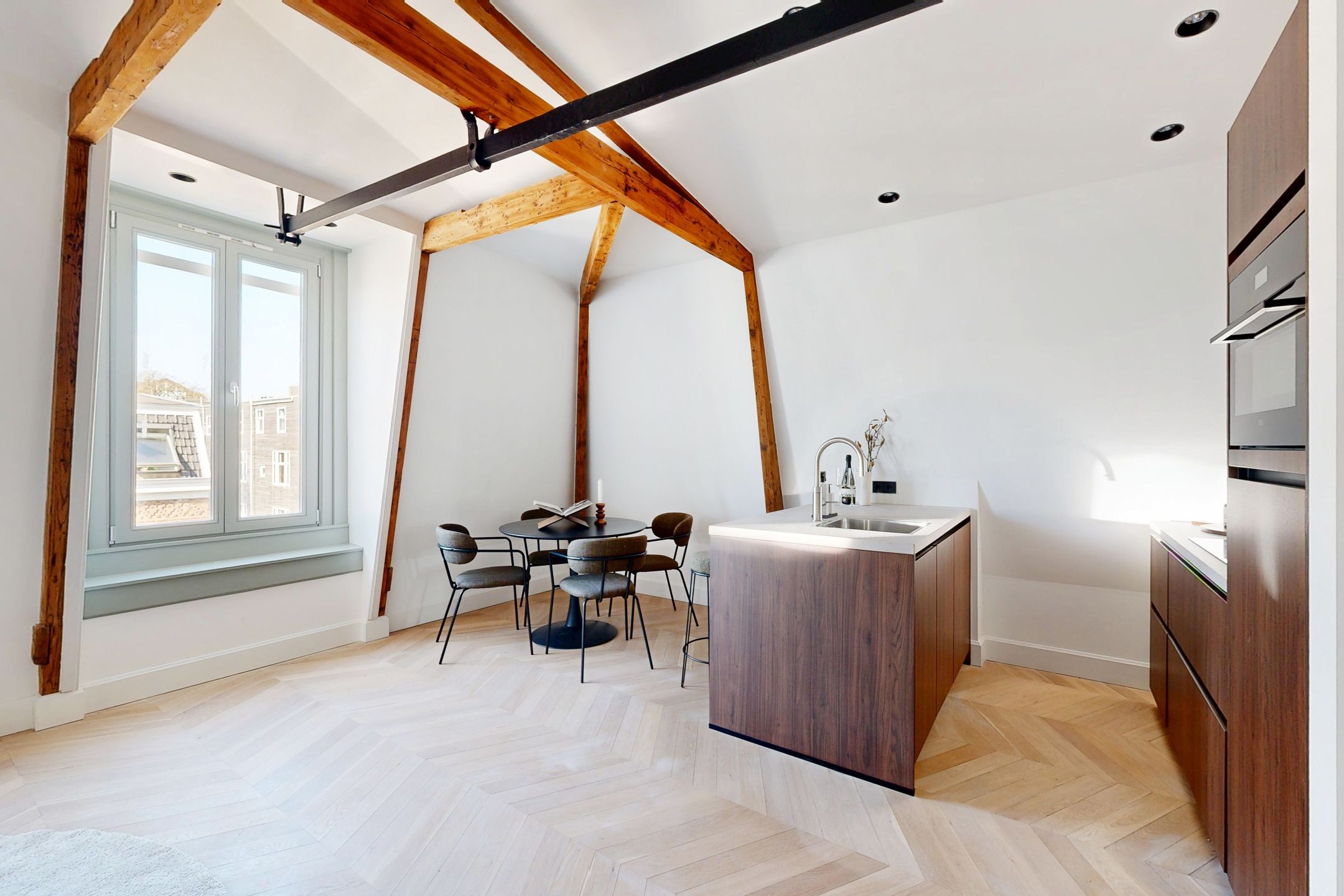 In de rustige, charmante straat van het geliefde Oud-West bevindt zich dit hoogwaardig gerenoveerde appartement van 62m2 op eigen grond. Het appartement is recent volledig vernieuwd en biedt luxe, comfort en modern woongemak. Met twee ruime slaapkamers en een fraaie open keuken, is het ideaal voor wie op zoek is naar stijl en functionaliteit op een centrale locatie. Oplevering kan snel plaatsvinden! Indeling: Het appartement is gelegen op de tweede verdieping en heeft een praktische indeling. Bij binnenkomst kom je in de hal die toegang biedt tot de ruime woonkamer met open keuken aan de voorzijde van het appartement. De moderne keuken is voorzien van alle gewenste inbouwapparatuur en een sfeervol spoeleiland, wat het hart van de woning vormt. Aan de rustige achterzijde vind je de twee lichte slaapkamers, waarvan de master bedroom een Frans balkon heeft, ideaal voor een moment van ontspanning in de buitenlucht. De luxe badkamer is centraal gelegen en is uitgerust met een inloopdouche, wastafel en een toilet. Het gehele appartement is voorzien van een prachtige houten Hongaarse puntvloer met vloerverwarming, wat bijdraagt aan het luxe gevoel van het interieur. Locatie: De locatie van dit appartement is werkelijk ideaal. Gelegen in een rustige straat in het populaire Oud-West, ben je toch slechts een steenworp verwijderd van het bruisende Vondelpark. Het stadscentrum, het Museumplein en het Leidseplein liggen op slechts vijf minuten fietsen. In de nabije omgeving vind je een ruime keuze aan gezellige cafs, restaurants, boetieks en de beroemde Hallen. Met uitstekende verbindingen naar het openbaar vervoer (tramlijnen 1, 7 en 17, en metrostation Lelylaan op 5 minuten afstand) en snel toegang tot de uitvalswegen (S106 en ring A-10), is het appartement bovendien zeer goed bereikbaar. Voor de autoliefhebber zijn er voldoende parkeermogelijkheden in de straat, waaronder een ondergrondse parkeergarage aan het Staringplein. Kenmerken: - Ca. 62m2 woonoppervlak (NEN-gemeten) - Hoogwaardig gerenoveerd met luxe afwerking - Eerste gebruik na renovatie - Twee slaapkamers, waaronder een master bedroom met Frans balkon - Luxe badkamer met inloopdouche en wastafel - Vloerverwarming en fraaie visgraat houten vloer door het gehele appartement - Rustige straat met een centrale ligging in Oud-West - Eigen grond - VvE in oprichting - Energielabel B - Nieuwe fundering - Oplevering kan per direct Interesse? Maak snel een afspraak voor een bezichtiging en ontdek dit prachtige appartement zelf!