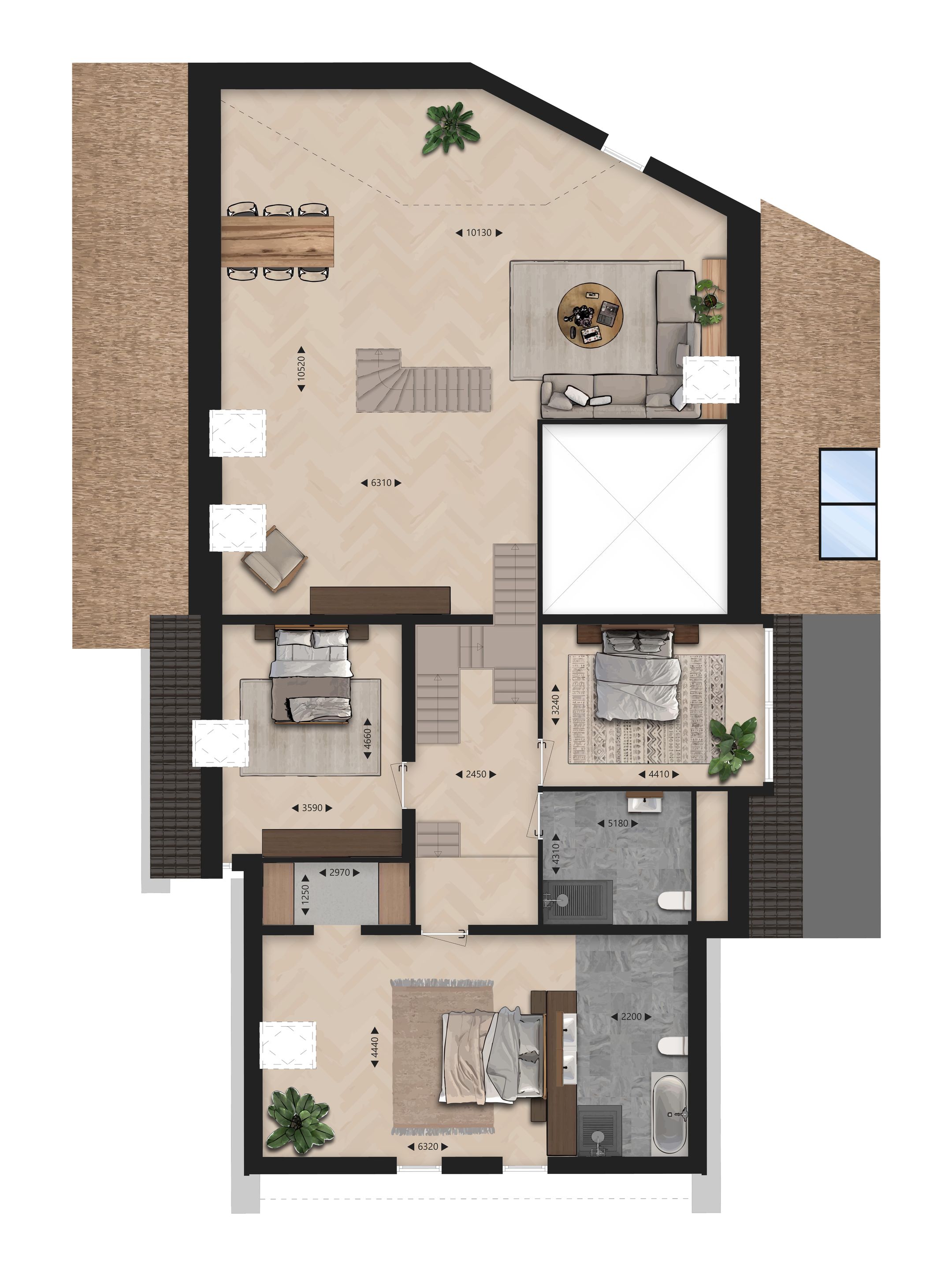 | Acoperiș | Samengesteld dak bedekt met pannen en riet |
