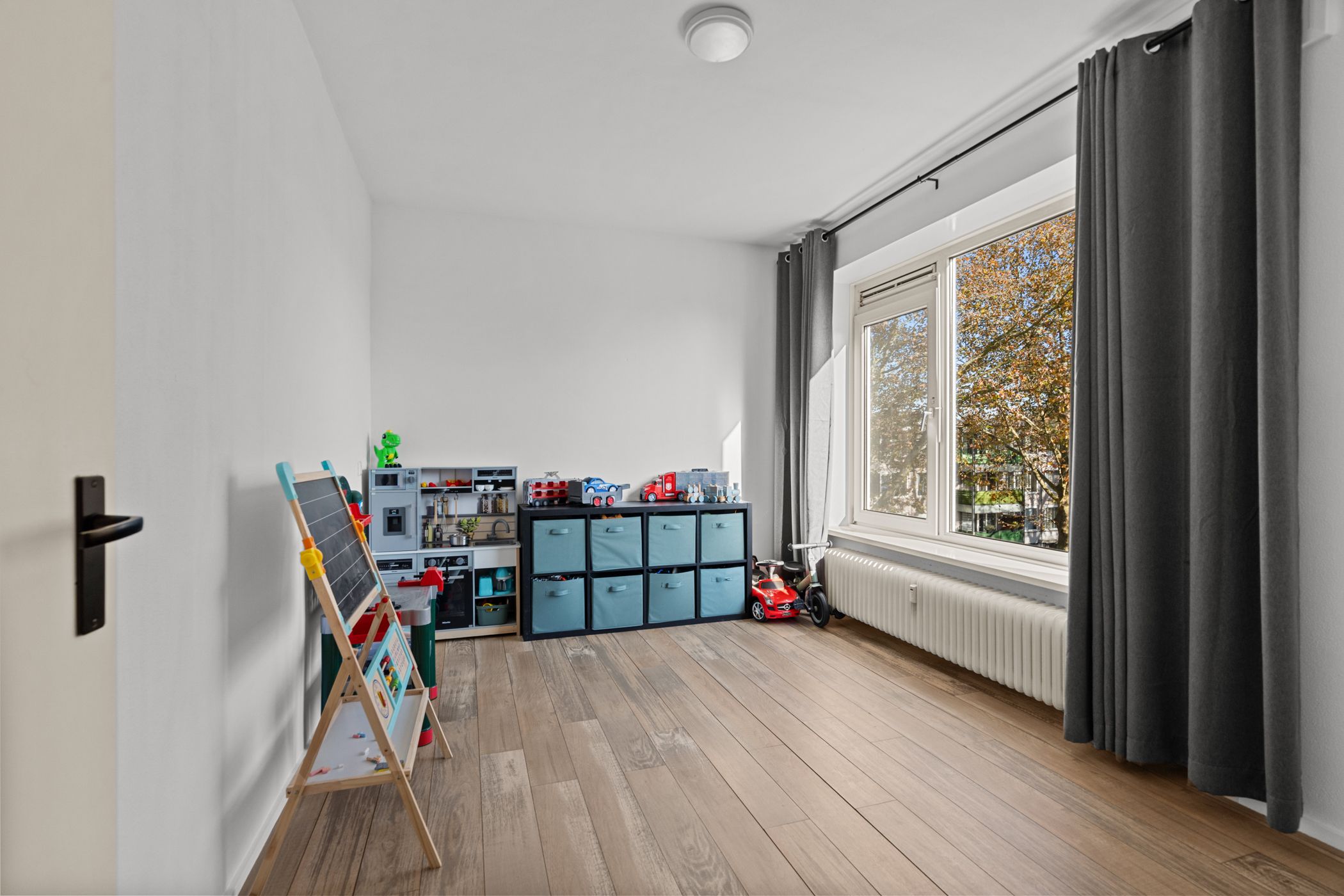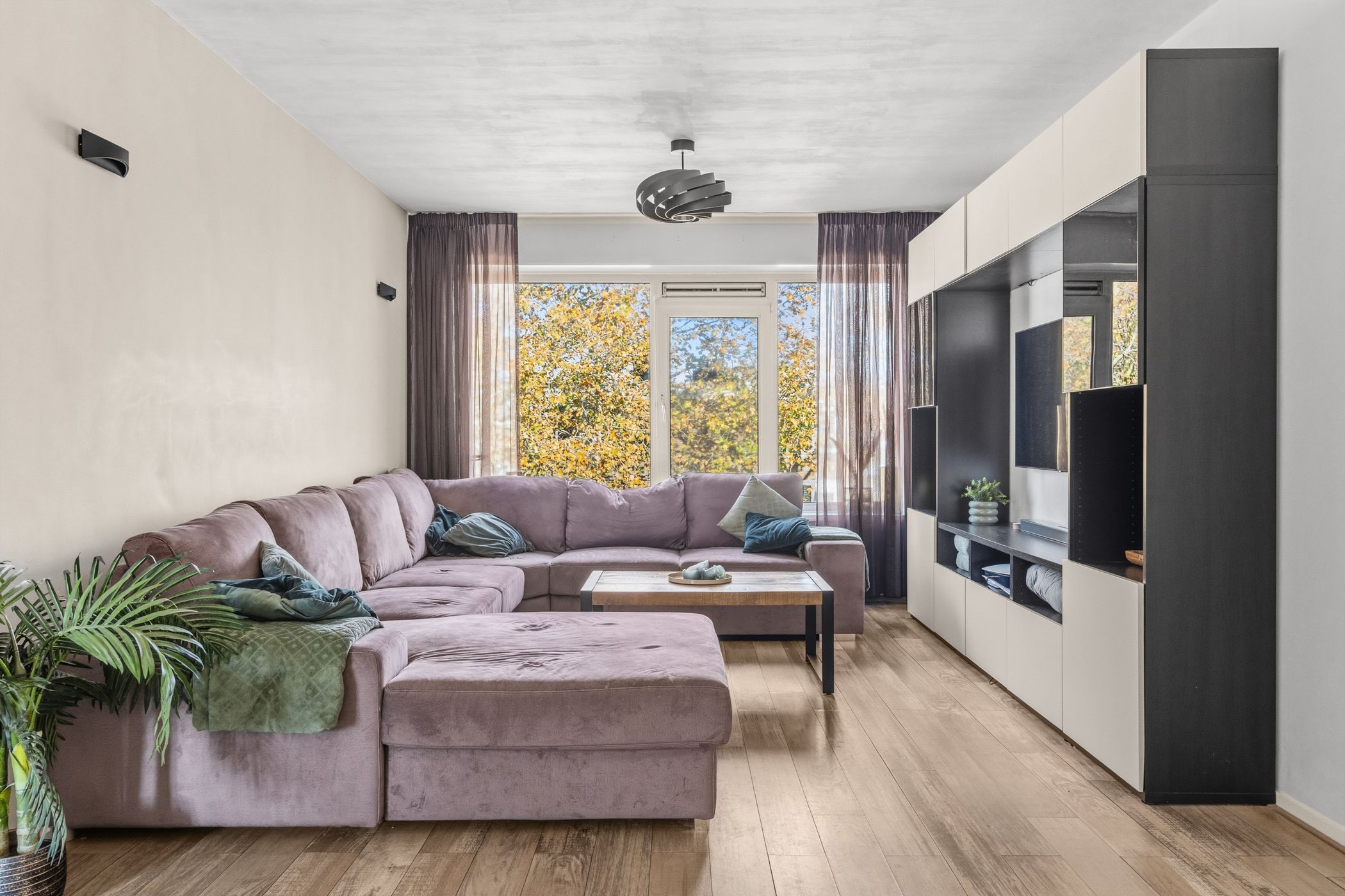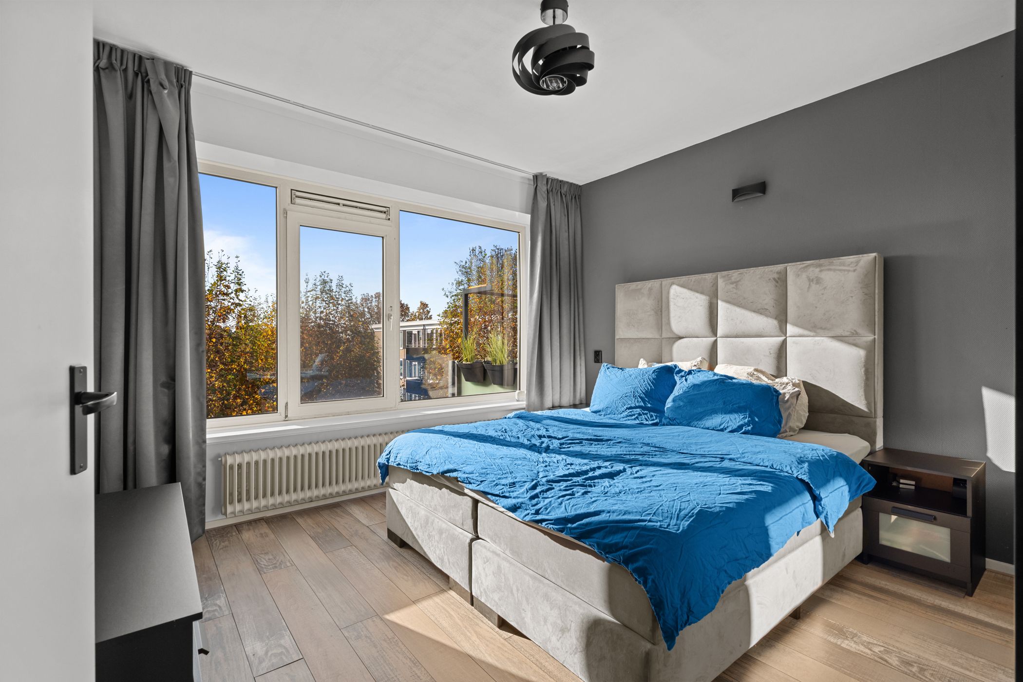 Televisiebaan 96 Licht, ruimte en modern woongemak in hartje IJsselstein In dit ruime en frisse hoekappartement aan de Televisiebaan 96 woon je precies zoals je het graag hebt: comfortabel, modern en met een heerlijk vrij uitzicht over het groen. Alles voelt verzorgd en eigentijds, van de afwerking tot de royale leefruimtes. Een fijne plek voor wie meteen goed wil wonen zonder te hoeven klussen. Samenvatting Televisiebaan 96 biedt je 94 m2 aan lichte en prettig ingedeelde woonruimte op een rustige, groene locatie. De moderne keuken, ruime kamers en verzorgde afwerking maken dit appartement helemaal klaar voor nieuw woongeluk. Met een zonnig balkon en alle voorzieningen om de hoek voelt dit direct als thuis. Kenmerken Circa 95 m2 woonoppervlak Drie slaapkamers Balkon op het zuidwesten (circa 6 m2) Externe berging van circa 8 m2 Energielabel D Moderne keuken en nette afwerking Gelegen in een groene woonwijk met vrij uitzicht Bijdrage VVE 291 Stookkosten 71 Wonen De woonkamer is op licht en uitnodigend, met grote ramen die de ruimte vullen met zon en uitzicht op de bomen langs de straat. De moderne keuken in zwart is een echte blikvanger: donker, strak vormgegeven en voorzien van inbouwapparatuur zoals een inductiekookplaat, oven, magnetron en vaatwasser. De warme vloer in eikenmotief loopt mooi door in de ruimte, waardoor alles n geheel vormt. Je merkt dat hier met aandacht is gekozen voor kwaliteit en rust in afwerking. Slapen De drie slaapkamers zijn stuk voor stuk prettig van formaat en goed bruikbaar als slaap-, werk- of hobbyruimte. De rustige ligging en de nette, lichte afwerking maken dit apartement tot een comfortabele plek om je terug te trekken. Buitenruimte Het balkon ligt op het zuidwesten, ideaal om na het werk nog van de zon te genieten. Je kijkt fijn weg over de bomen, plantsoenen en de omgeving, en ondanks de centrale ligging zit je hier verrassend beschut. De externe berging biedt ruimte voor fietsen en opslag. Ligging en omgeving Televisiebaan 96 ligt in een rustige en groene wijk, met brede lanen en veel volwassen bomen. Fietsend ben je binnen enkele minuten in het historische centrum van IJsselstein, met sfeervolle terrassen, boetieks en de gezellige winkelstraten. Supermarkten, scholen en sportvoorzieningen liggen op loop- of fietsafstand. De tram richting Utrecht is makkelijk bereikbaar, net als diverse uitvalswegen, waardoor je zowel met OV als met de auto goed uit de voeten kunt. Benieuwd naar deze woning? Kom snel langs voor een bezichtiging en ontdek zelf het comfort en de sfeer van Televisiebaan 96. Of bekijk de woningpresentatie op: Interesse? Neem contact op via of bel 030 688 45 35.