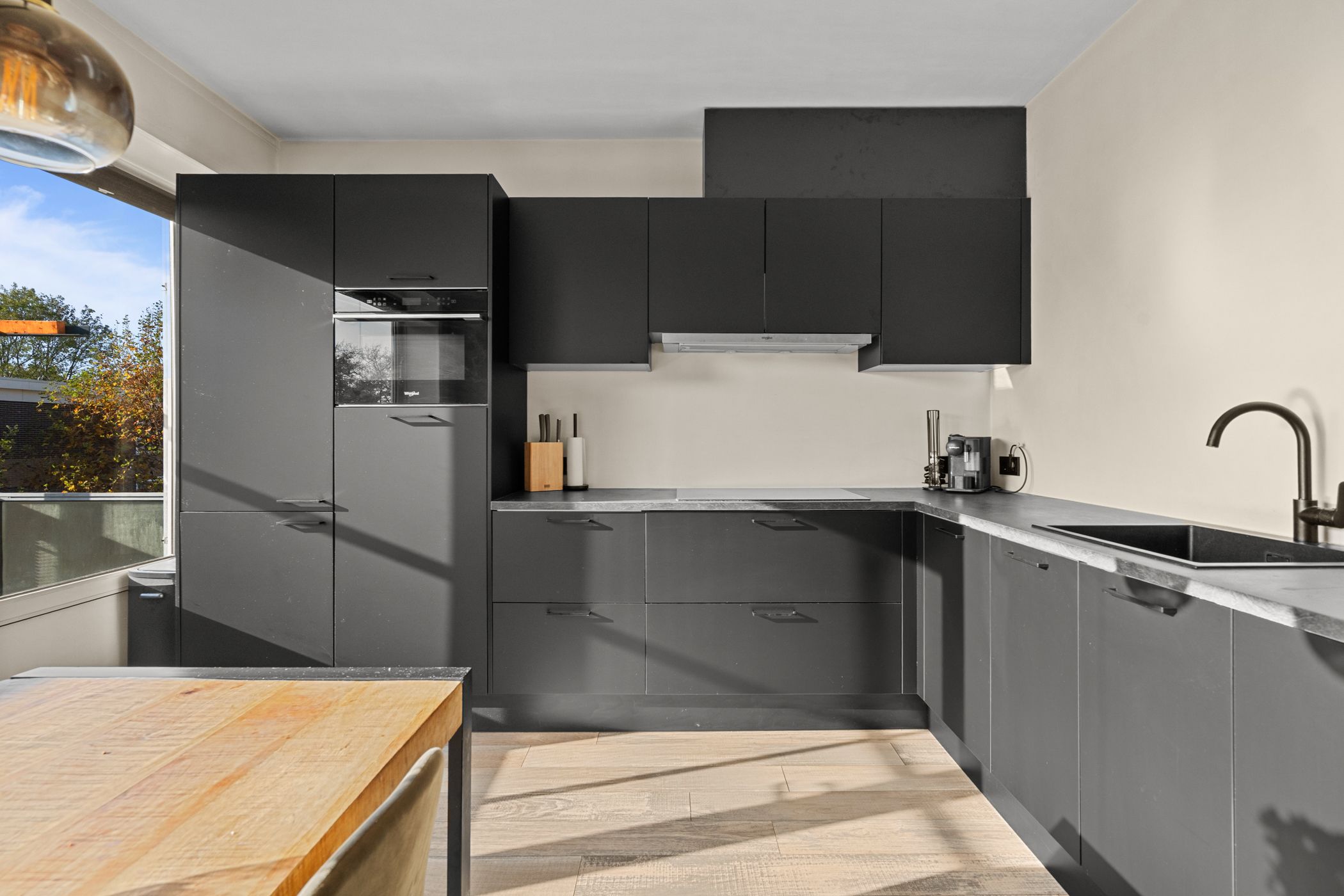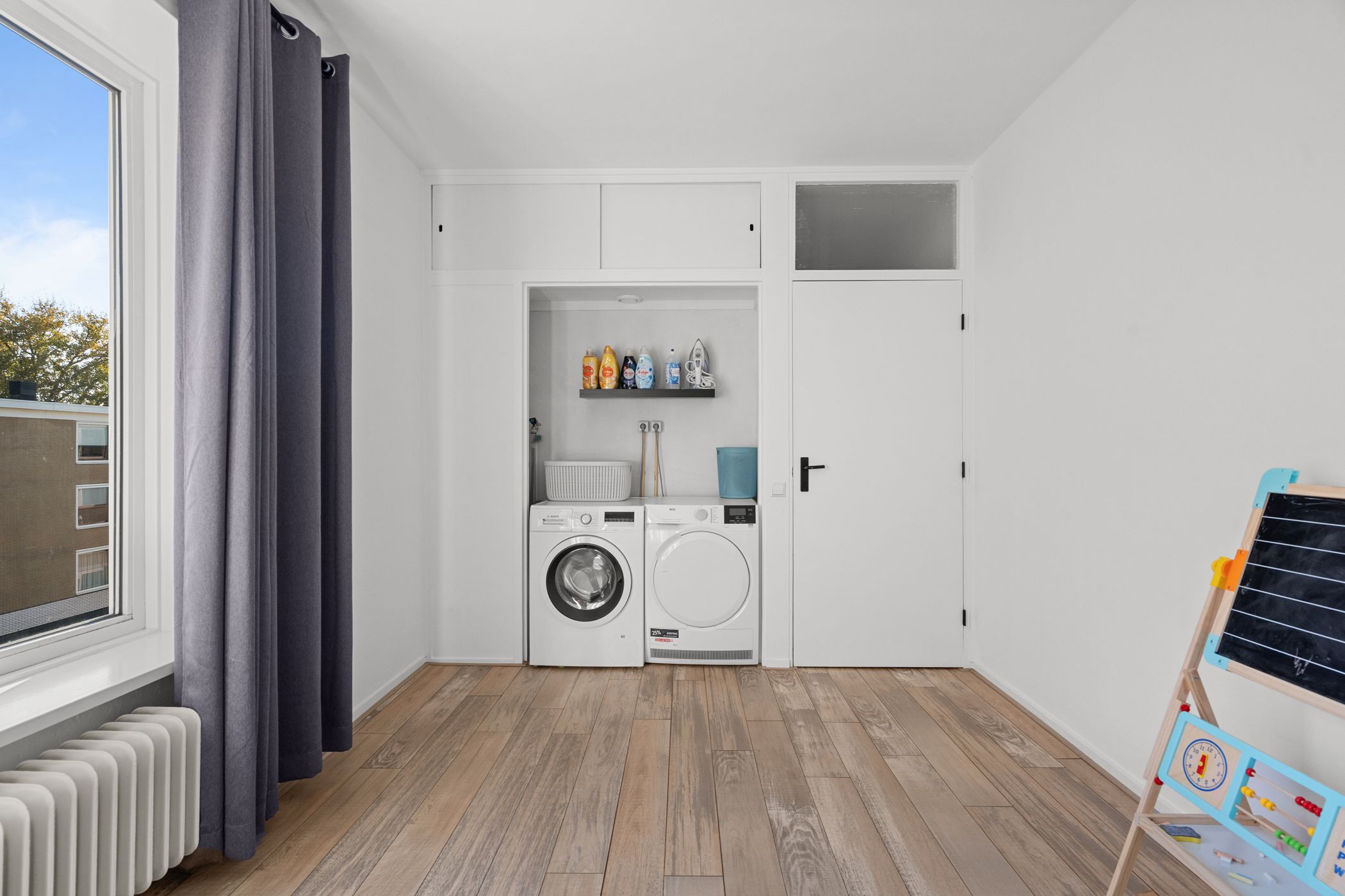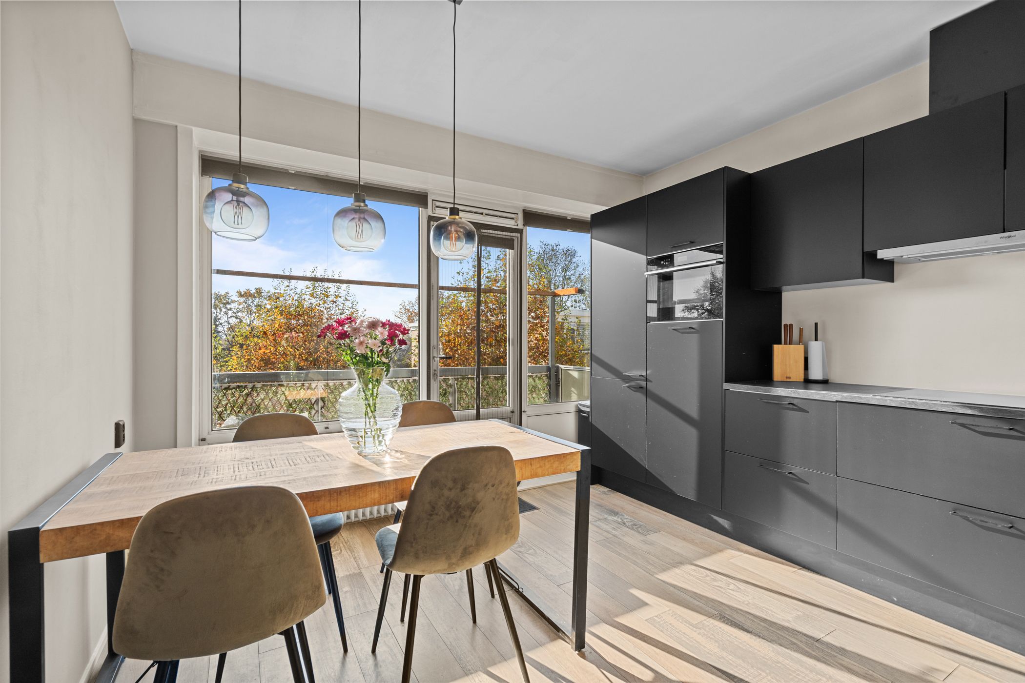 Televisiebaan 96 Licht, ruimte en modern woongemak in hartje IJsselstein In dit ruime en frisse hoekappartement aan de Televisiebaan 96 woon je precies zoals je het graag hebt: comfortabel, modern en met een heerlijk vrij uitzicht over het groen. Alles voelt verzorgd en eigentijds, van de afwerking tot de royale leefruimtes. Een fijne plek voor wie meteen goed wil wonen zonder te hoeven klussen. Samenvatting Televisiebaan 96 biedt je 94 m2 aan lichte en prettig ingedeelde woonruimte op een rustige, groene locatie. De moderne keuken, ruime kamers en verzorgde afwerking maken dit appartement helemaal klaar voor nieuw woongeluk. Met een zonnig balkon en alle voorzieningen om de hoek voelt dit direct als thuis. Kenmerken Circa 95 m2 woonoppervlak Drie slaapkamers Balkon op het zuidwesten (circa 6 m2) Externe berging van circa 8 m2 Energielabel D Moderne keuken en nette afwerking Gelegen in een groene woonwijk met vrij uitzicht Bijdrage VVE 291 Stookkosten 71 Wonen De woonkamer is op licht en uitnodigend, met grote ramen die de ruimte vullen met zon en uitzicht op de bomen langs de straat. De moderne keuken in zwart is een echte blikvanger: donker, strak vormgegeven en voorzien van inbouwapparatuur zoals een inductiekookplaat, oven, magnetron en vaatwasser. De warme vloer in eikenmotief loopt mooi door in de ruimte, waardoor alles n geheel vormt. Je merkt dat hier met aandacht is gekozen voor kwaliteit en rust in afwerking. Slapen De drie slaapkamers zijn stuk voor stuk prettig van formaat en goed bruikbaar als slaap-, werk- of hobbyruimte. De rustige ligging en de nette, lichte afwerking maken dit apartement tot een comfortabele plek om je terug te trekken. Buitenruimte Het balkon ligt op het zuidwesten, ideaal om na het werk nog van de zon te genieten. Je kijkt fijn weg over de bomen, plantsoenen en de omgeving, en ondanks de centrale ligging zit je hier verrassend beschut. De externe berging biedt ruimte voor fietsen en opslag. Ligging en omgeving Televisiebaan 96 ligt in een rustige en groene wijk, met brede lanen en veel volwassen bomen. Fietsend ben je binnen enkele minuten in het historische centrum van IJsselstein, met sfeervolle terrassen, boetieks en de gezellige winkelstraten. Supermarkten, scholen en sportvoorzieningen liggen op loop- of fietsafstand. De tram richting Utrecht is makkelijk bereikbaar, net als diverse uitvalswegen, waardoor je zowel met OV als met de auto goed uit de voeten kunt. Benieuwd naar deze woning? Kom snel langs voor een bezichtiging en ontdek zelf het comfort en de sfeer van Televisiebaan 96. Of bekijk de woningpresentatie op: Interesse? Neem contact op via of bel 030 688 45 35.