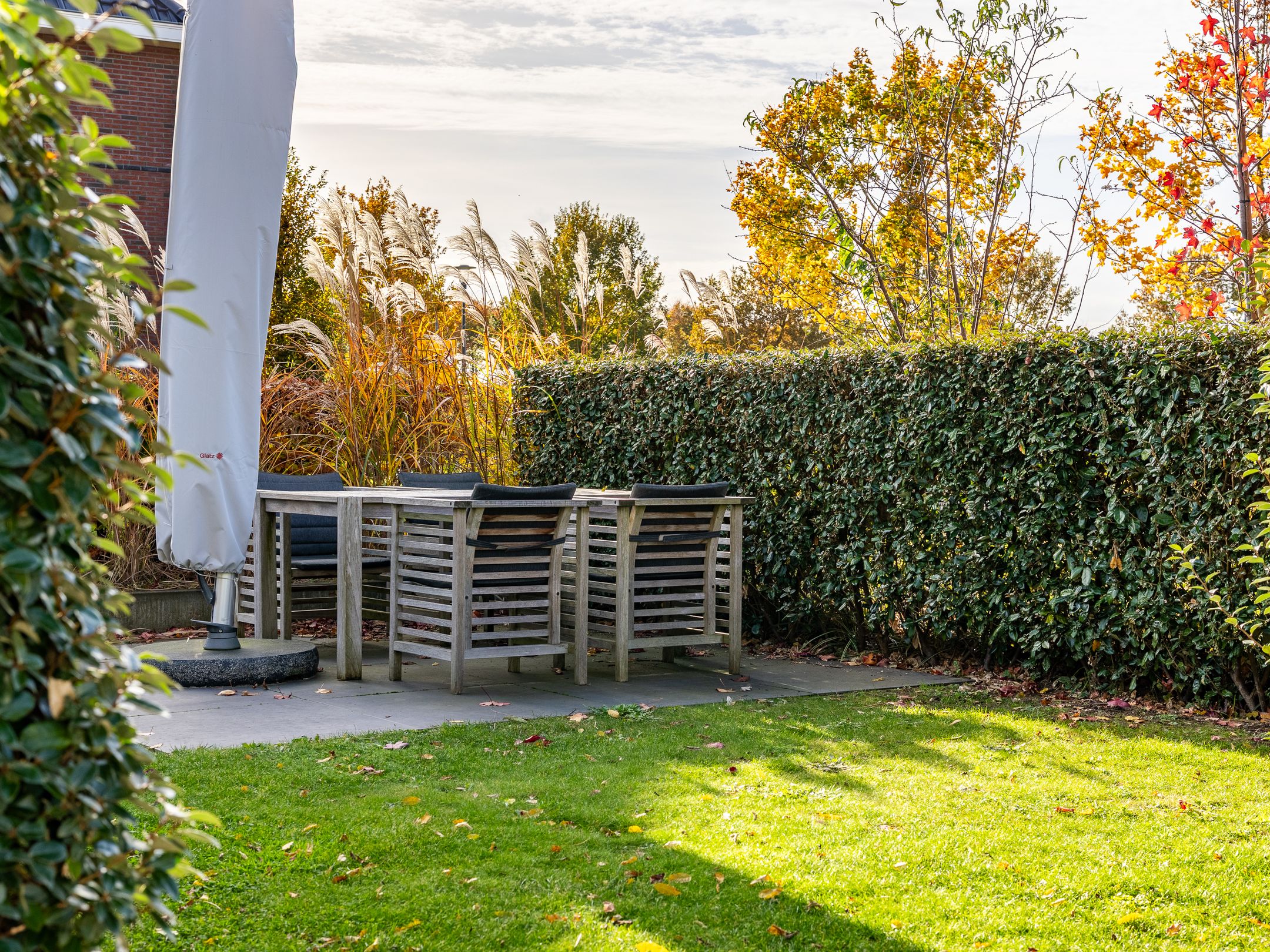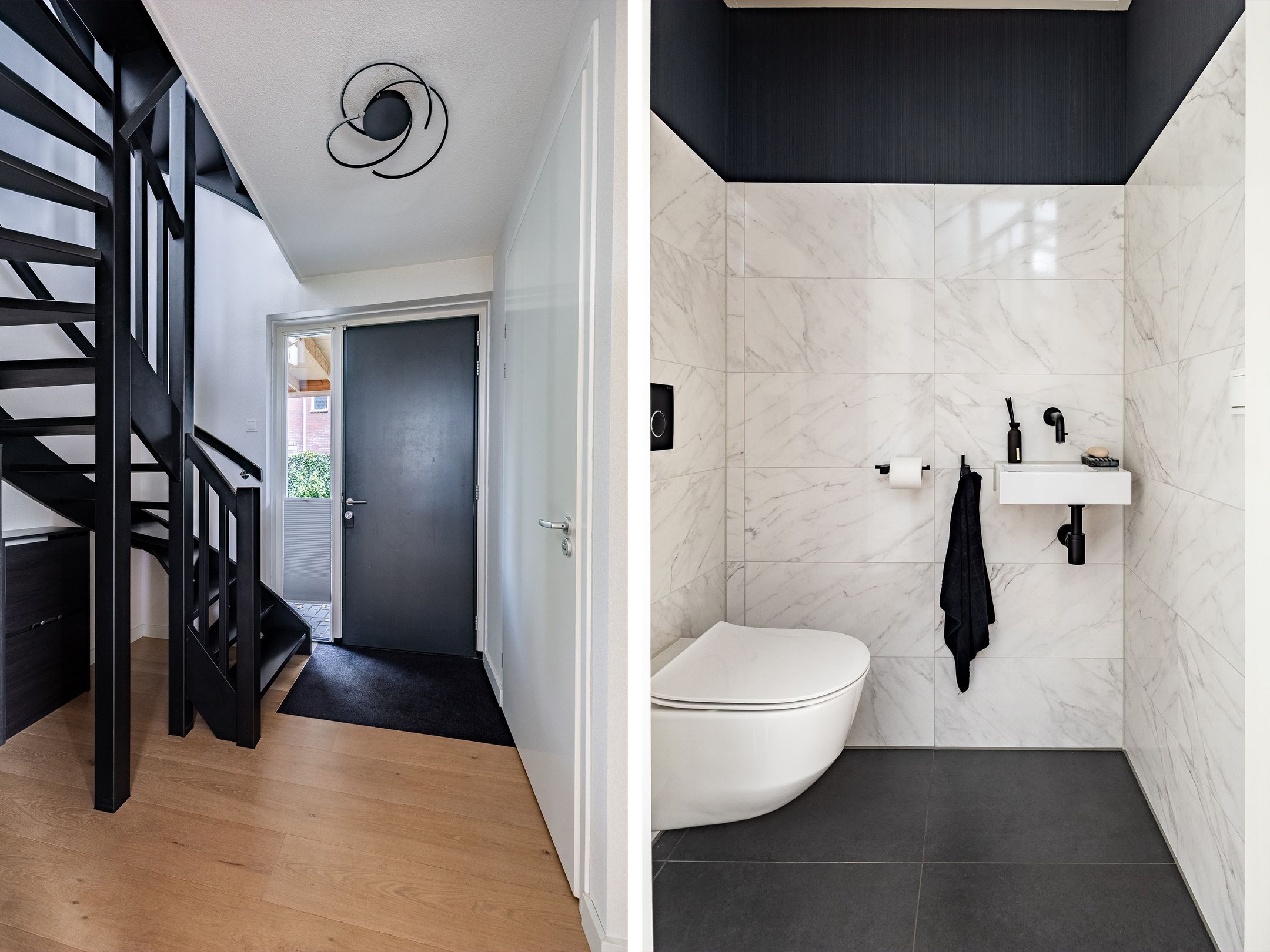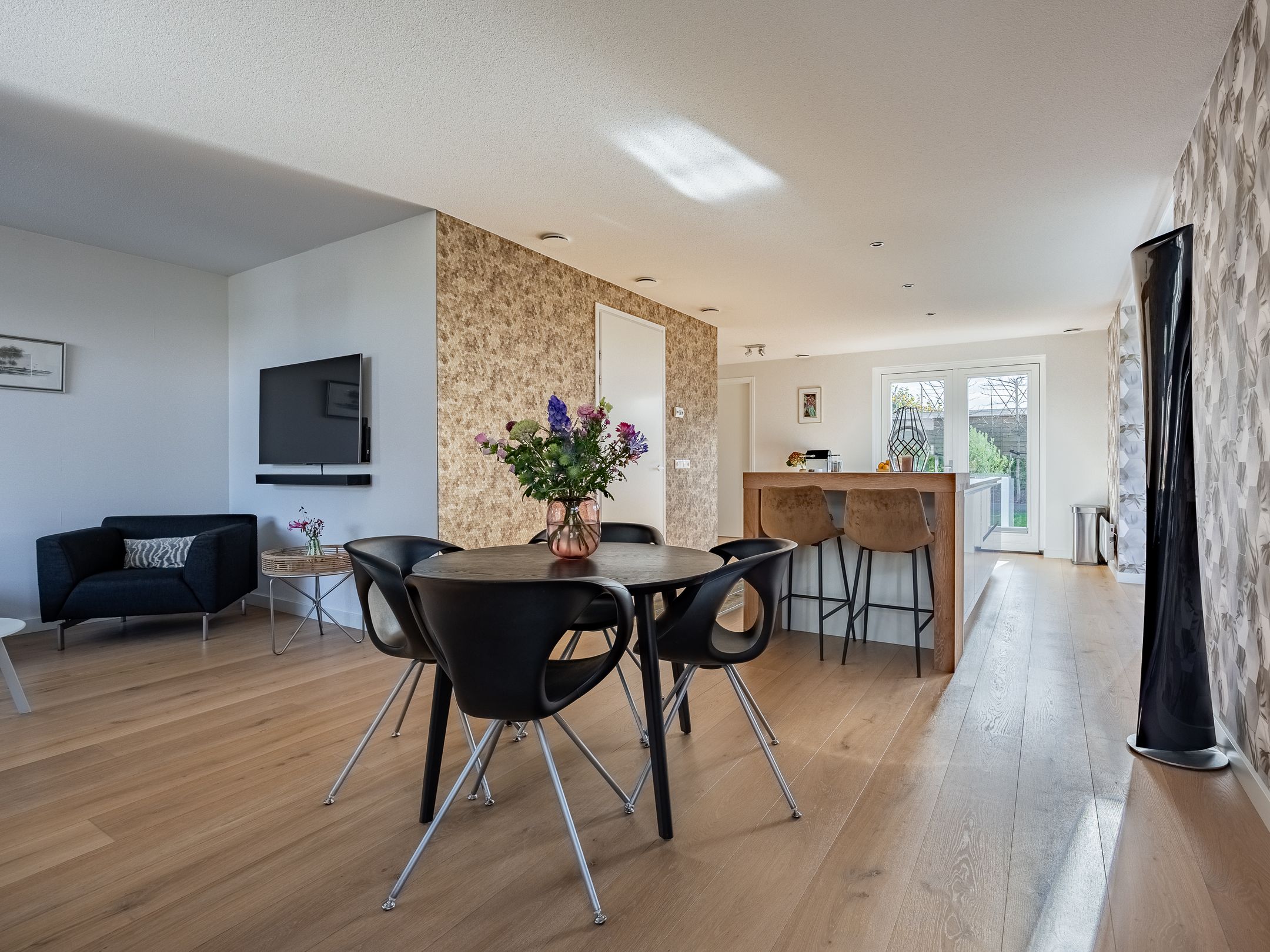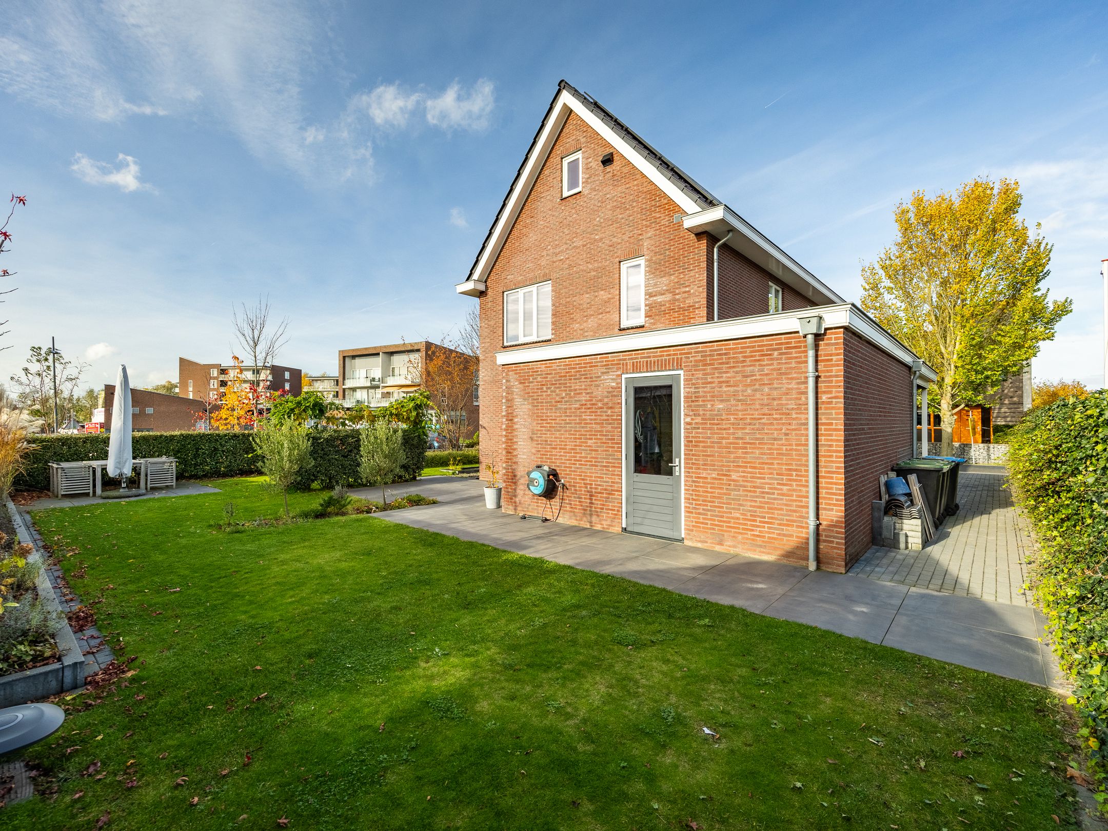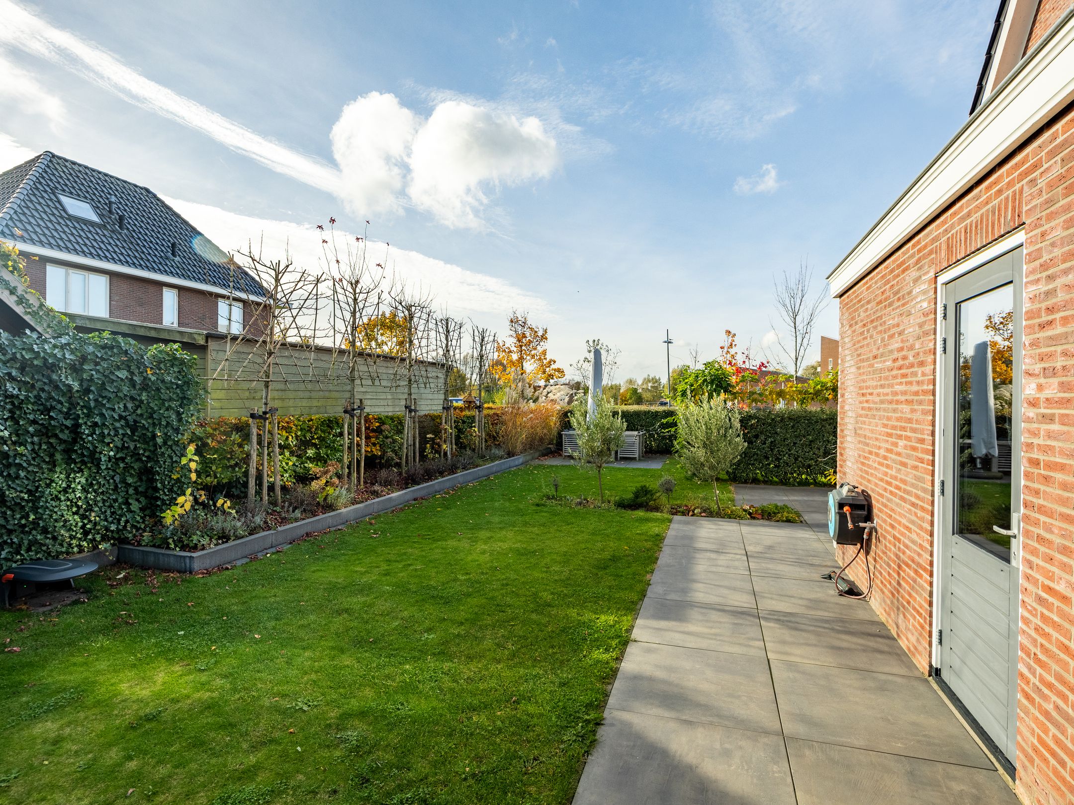 Duurzaam en vrijstaand wonen op de mooiste plek van de straat, met een zonnige tuin en uitzicht richting het water. Gasloos, maar liefst 60 zonnepanelen, elektrische paneelverwarming, een laadpaal en een Daikin warmtepompboiler voor warm water maken van dit huis een duurzaam droomhuis. Er zijn vier slaapkamers op de eerste verdieping en de tweede verdieping biedt ruimte om nog twee kamers te realiseren. Parkeren kan ruimschoots op eigen terrein, zowel buiten als in de garage. Het winkelcentrum met een supermarkt, winkels en sportschool vind je aan de andere kant van het water. Op fietsafstand zijn een basisschool en sportvoorzieningen, er is een skatebaan en er zijn meerdere speeltuintjes in de wijk. Binnen een paar minuten rij je op de N314 richting het centrum en omliggende dorpen. Loop een klein stukje en je bent in een uitgestrekt natuur- en wandelgebied richting Wichmond en Landgoed Hackfort. Indeling: Begane grond: De architectuur van deze villa, genspireerd op de geliefde jaren 30 stijl, trekt direct de aandacht. Om de binnenzijde te bewonderen loop je naar de carport, waar de fraaie entree is. Achter de voordeur bevindt zich de hal, met een zwarte trapopgang en een eikenhouten vloer. Deze vloer ligt niet alleen in de hal, maar ook in de woonkamer en keuken. Aan de linkerzijde, naast de meterkast, is de toiletruimte met fonteintje. Wat een sfeer heeft de speels ingedeelde woonkamer, die een geheel vormt met de keuken. Aan de voorzijde is het zitgedeelte, met uitzicht op de voortuin en de rustige straat. Het eetgedeelte is vlak naast de prachtige keuken, die ruimte biedt aan een groot kookeiland en een hoge kastenwand. In deze villa is de keuken het kloppend hart, waar een kookliefhebber op slag verliefd op wordt... Door de ramen bij de erker (west) en de openslaande tuindeuren naar de achtertuin (zuid) valt veel licht naar binnen. Het kookeiland heeft een hoge tweepersoonstafel, brede lades en een stijlvol aanrechtblad. Alle benodigde apparatuur, deels in de kastenwand, is ingebouwd: een Miele inductie kookplaat met afzuiging, een Quooker, vaatwasser, koel-vriescombinatie, oven en een stoomoven. Naast de keuken is een bijkeukenwasruimte, die toegang biedt tot de tuin en de garage. In de garage kun je de (kinder)fietsen, een scooter, motor enof andere spullen neerzetten. Liever de auto? De garage is er groot genoeg voor! Eerste verdieping: De overloop is een fraaie ruimte, met het zwarte trappenhuis en laminaat op de vloer. Deze ligt ook in de aansluitende slaapkamers, vier in totaal. Aan de achterzijde is de master bedroom, uitgevoerd in goud en nachtblauw. Er zijn twee ruime kamers aan de voorzijde en de vierde slaapkamer wordt als sportruimte gebruikt. Voor, tijdens en na het sporten heb je mooi uitzicht richting het water en groen. In de royale badkamer zijn marmerlook tegels en modern sanitair op een fraaie wijze gecombineerd. Het vrijstaande bad staat bij het raam en verder zijn er een inloopdouche, een toilet en een stijlvol wastafelmeubel met ronde spiegel. Tweede verdieping: Een vaste trap geeft toegang tot de zeer ruime tweede verdieping, met een bijna 3.50 meter hoge nok en een raam in de voor- en achtergevel. Er ligt, net als op de eerste verdieping, laminaat op de vloer en de wanden zijn afgewerkt met behang. Dankzij de gunstige positie van de trap kunnen hier eenvoudig twee ruime slaapkamers en een wasruimte worden gerealiseerd. Tuin: De villa wordt aan drie kanten omringd door een mooi aangelegde tuin waardoor je de hele dag zon hebt, merendeels op het zuiden (achterzijde) en westen (rechterzijde). Er zijn twee terrassen om volop in de zon te zitten en de gevarieerde beplanting zorgt voor een aangename sfeer. Aan de linkerzijde, naast de garage, is een brede achterom en aan de andere zijde is een stijlvolle vijver gemaakt. De oprit aan de voorzijde biedt plaats voor 2 auto's. Bijzonderheden: - Dak-, gevel- en vloerisolatie; - Houten kozijnen met HR+++ glas; - Elektrische paneelverwarming (met wifi-functie) in de woonkamer, keuken en slaapkamers; - Elektrische vloerverwarming (Danfoss) in de badkamer; - Warm water via een warmtepompboiler (Daikin) en een Quooker; - 60 AEG glas-glas zonnepanelen van 300 Wp, geplaatst in 2019; - Balansventilatie aanwezig en voorbereiding voor een centraal stofzuigsysteem; - Oprit met carport en laadpaal; - Mogelijkheid tot het creren van 6 slaapkamers, door 2 extra slaapkamers te realiseren op de tweede verdieping; - Energielabel A+++