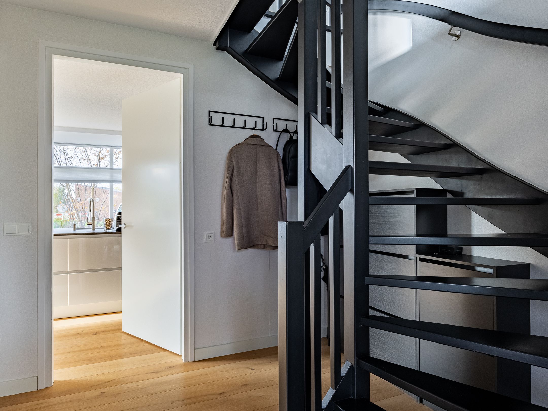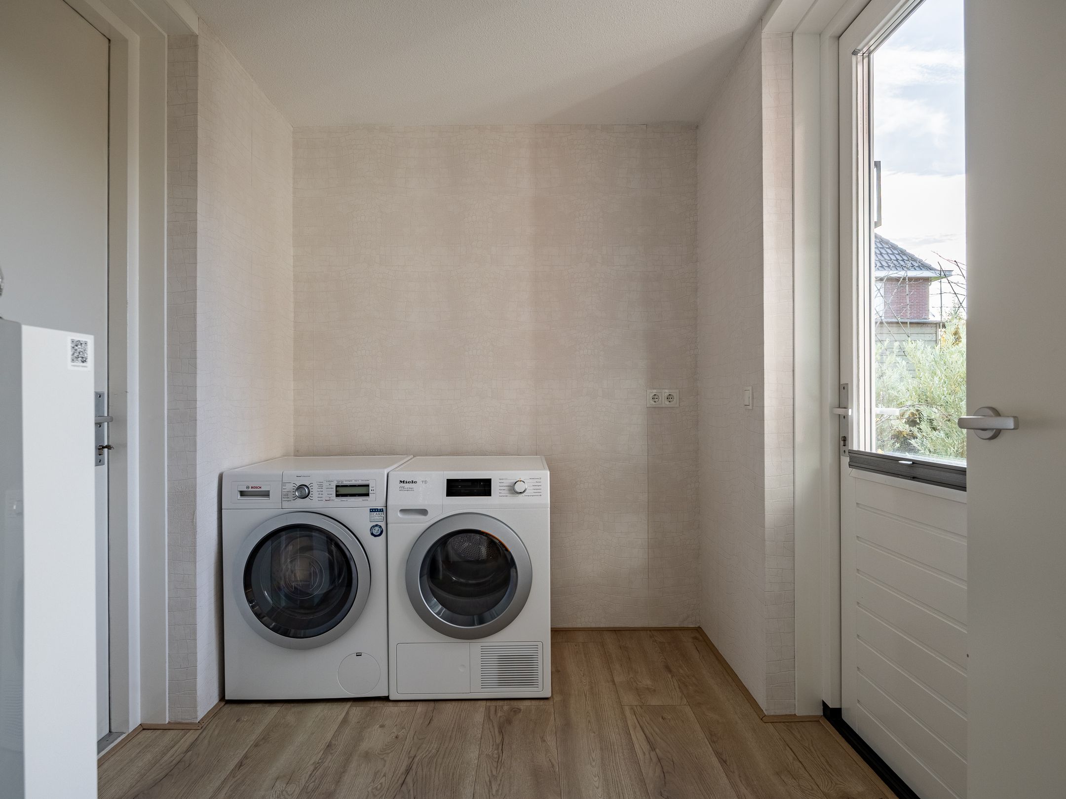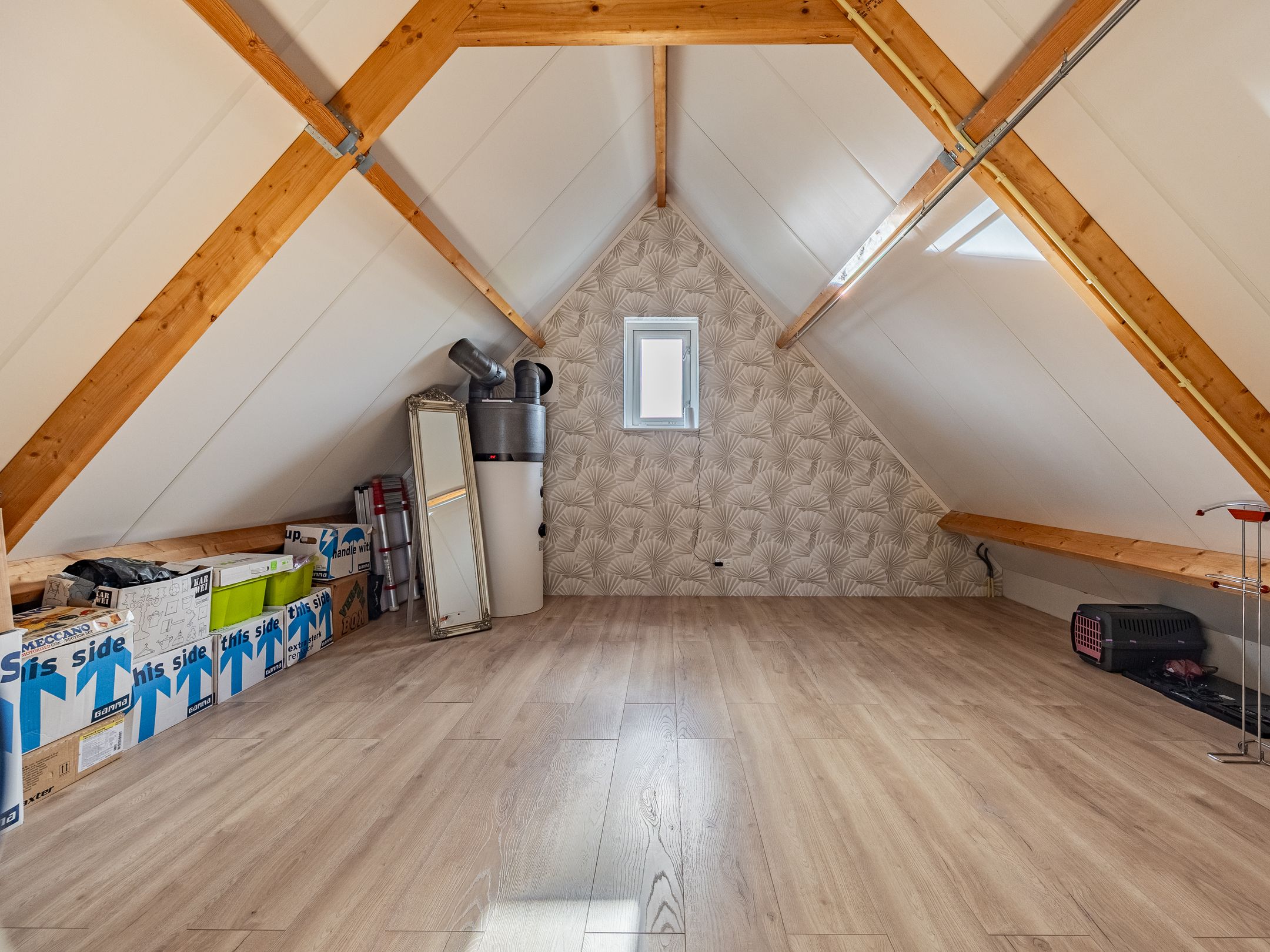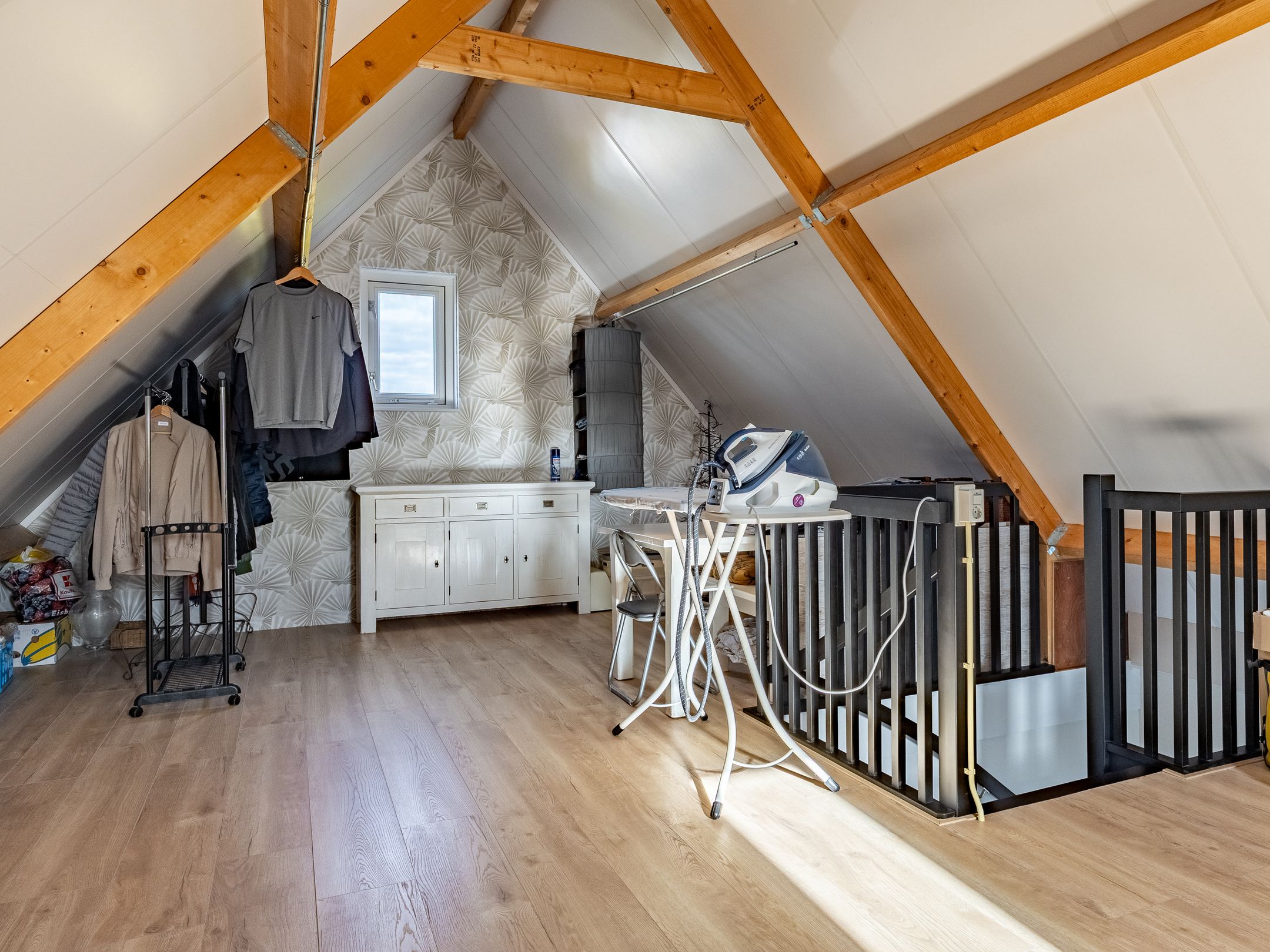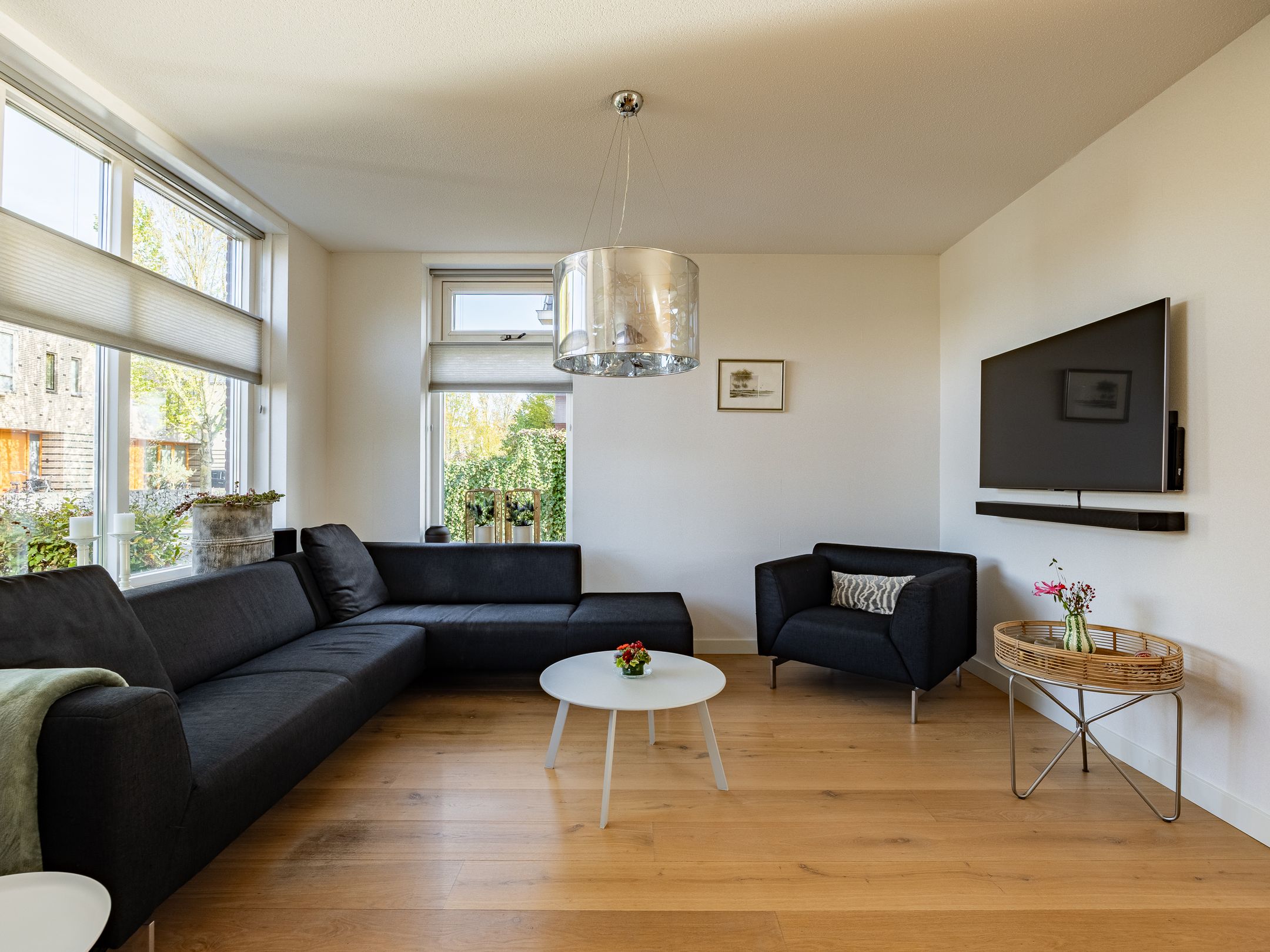 Duurzaam en vrijstaand wonen op de mooiste plek van de straat, met een zonnige tuin en uitzicht richting het water. Gasloos, maar liefst 60 zonnepanelen, elektrische paneelverwarming, een laadpaal en een Daikin warmtepompboiler voor warm water maken van dit huis een duurzaam droomhuis. Er zijn vier slaapkamers op de eerste verdieping en de tweede verdieping biedt ruimte om nog twee kamers te realiseren. Parkeren kan ruimschoots op eigen terrein, zowel buiten als in de garage. Het winkelcentrum met een supermarkt, winkels en sportschool vind je aan de andere kant van het water. Op fietsafstand zijn een basisschool en sportvoorzieningen, er is een skatebaan en er zijn meerdere speeltuintjes in de wijk. Binnen een paar minuten rij je op de N314 richting het centrum en omliggende dorpen. Loop een klein stukje en je bent in een uitgestrekt natuur- en wandelgebied richting Wichmond en Landgoed Hackfort. Indeling: Begane grond: De architectuur van deze villa, genspireerd op de geliefde jaren 30 stijl, trekt direct de aandacht. Om de binnenzijde te bewonderen loop je naar de carport, waar de fraaie entree is. Achter de voordeur bevindt zich de hal, met een zwarte trapopgang en een eikenhouten vloer. Deze vloer ligt niet alleen in de hal, maar ook in de woonkamer en keuken. Aan de linkerzijde, naast de meterkast, is de toiletruimte met fonteintje. Wat een sfeer heeft de speels ingedeelde woonkamer, die een geheel vormt met de keuken. Aan de voorzijde is het zitgedeelte, met uitzicht op de voortuin en de rustige straat. Het eetgedeelte is vlak naast de prachtige keuken, die ruimte biedt aan een groot kookeiland en een hoge kastenwand. In deze villa is de keuken het kloppend hart, waar een kookliefhebber op slag verliefd op wordt... Door de ramen bij de erker (west) en de openslaande tuindeuren naar de achtertuin (zuid) valt veel licht naar binnen. Het kookeiland heeft een hoge tweepersoonstafel, brede lades en een stijlvol aanrechtblad. Alle benodigde apparatuur, deels in de kastenwand, is ingebouwd: een Miele inductie kookplaat met afzuiging, een Quooker, vaatwasser, koel-vriescombinatie, oven en een stoomoven. Naast de keuken is een bijkeukenwasruimte, die toegang biedt tot de tuin en de garage. In de garage kun je de (kinder)fietsen, een scooter, motor enof andere spullen neerzetten. Liever de auto? De garage is er groot genoeg voor! Eerste verdieping: De overloop is een fraaie ruimte, met het zwarte trappenhuis en laminaat op de vloer. Deze ligt ook in de aansluitende slaapkamers, vier in totaal. Aan de achterzijde is de master bedroom, uitgevoerd in goud en nachtblauw. Er zijn twee ruime kamers aan de voorzijde en de vierde slaapkamer wordt als sportruimte gebruikt. Voor, tijdens en na het sporten heb je mooi uitzicht richting het water en groen. In de royale badkamer zijn marmerlook tegels en modern sanitair op een fraaie wijze gecombineerd. Het vrijstaande bad staat bij het raam en verder zijn er een inloopdouche, een toilet en een stijlvol wastafelmeubel met ronde spiegel. Tweede verdieping: Een vaste trap geeft toegang tot de zeer ruime tweede verdieping, met een bijna 3.50 meter hoge nok en een raam in de voor- en achtergevel. Er ligt, net als op de eerste verdieping, laminaat op de vloer en de wanden zijn afgewerkt met behang. Dankzij de gunstige positie van de trap kunnen hier eenvoudig twee ruime slaapkamers en een wasruimte worden gerealiseerd. Tuin: De villa wordt aan drie kanten omringd door een mooi aangelegde tuin waardoor je de hele dag zon hebt, merendeels op het zuiden (achterzijde) en westen (rechterzijde). Er zijn twee terrassen om volop in de zon te zitten en de gevarieerde beplanting zorgt voor een aangename sfeer. Aan de linkerzijde, naast de garage, is een brede achterom en aan de andere zijde is een stijlvolle vijver gemaakt. De oprit aan de voorzijde biedt plaats voor 2 auto's. Bijzonderheden: - Dak-, gevel- en vloerisolatie; - Houten kozijnen met HR+++ glas; - Elektrische paneelverwarming (met wifi-functie) in de woonkamer, keuken en slaapkamers; - Elektrische vloerverwarming (Danfoss) in de badkamer; - Warm water via een warmtepompboiler (Daikin) en een Quooker; - 60 AEG glas-glas zonnepanelen van 300 Wp, geplaatst in 2019; - Balansventilatie aanwezig en voorbereiding voor een centraal stofzuigsysteem; - Oprit met carport en laadpaal; - Mogelijkheid tot het creren van 6 slaapkamers, door 2 extra slaapkamers te realiseren op de tweede verdieping; - Energielabel A+++