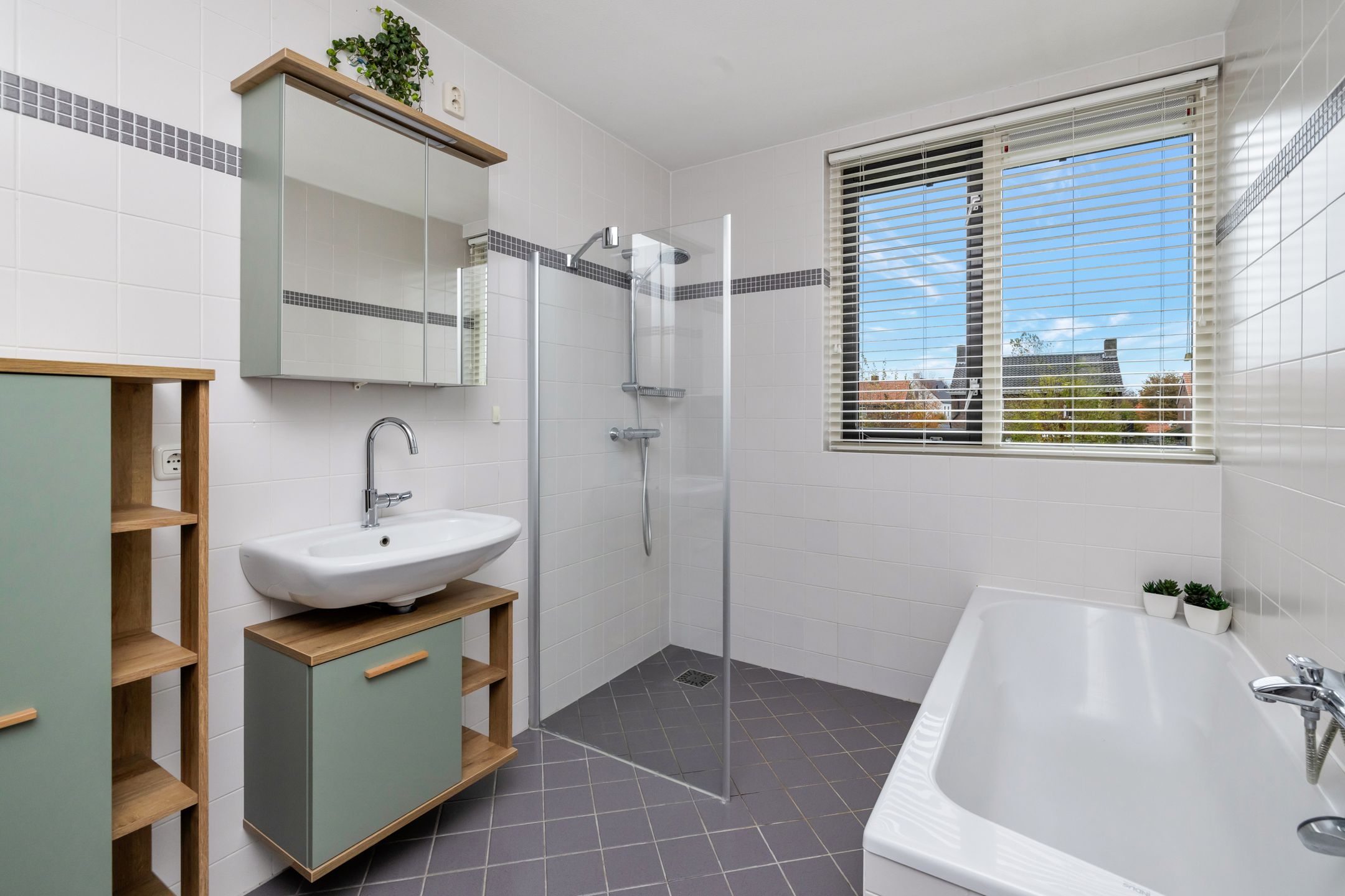 Welkom in deze ruime, stoere twee-onder-een-kapwoning: gebouwd in de geliefde jaren 30-stijl, maar helemaal van nu. De karaktervolle uitstraling gaat hand in hand met modern wooncomfort. Dankzij de 21 zonnepanelen (met micro-omvormers) woon je hier energiezuinig n toekomstgericht niet voor niets heeft het huis een A+ label. De L-vormige en tuingerichte woonkamer nodigt uit om lang te tafelen en sluit aan op de moderne open keuken met inbouwapparatuur. In de royale badkamer is er alle ruimte om de dag rustig op te starten of juist ontspannen af te sluiten. Voor de woning parkeer je je auto op de parkeerplaats op het eigen erf, zodat je altijd gemakkelijk je auto kwijt kunt. En met het winkelcentrum op loopafstand haal je elke dag verse boodschappen een vriezer heb je nauwelijks nodig. De achtertuin ligt op het zuidoosten en heeft genoeg ruimte voor ontspanning. In 2024 heeft het huis buitenom nog een frisse verflaag gekregen waardoor alles er strak en verzorgd uitziet. De woning is voorzien van een laadpaal. Bouwjaar: 1999, perceeloppervlakte 216 m2, gebruiksoppervlakte wonen ca. 124 m2, overige inpandige ruimte ca. 9 m2, inhoud 451 m. Indeling: Binnenkomst via de entree met meterkast (7 groepen, 2 x krachtstroomaansluiting en 4 x aardlekschakelaar). Via de vaste trap bereik je de verdieping. De volledig betegelde toiletruimte is ingericht met een wandcloset en een handig fonteintje. In de L-vormige woonkamer zorgen de tuindeuren en de airco-unit uit 2022 voor een prettig binnenklimaat, of het nu hartje zomer of winter is. De open keuken in hoekopstelling is een fijne plek voor wie van koken houdt. Alles wat je nodig hebt is aanwezig: een vaatwasser, carrouselkast, 4-pits inductiekookplaat, een brede RVS afzuigkap van 90 cm, een nieuwe combi-oven uit 2024 en een koelkast. Ook hier geven tuindeuren toegang tot de tuin, zodat binnen en buiten moeiteloos in elkaar overlopen. De hele parterre heeft een nette laminaatvloer. Eerste verdieping: Vanuit de entree leidt een vaste trap naar de overloop op de eerste verdieping. Hier vind je drie slaapkamers. Twee kamers hebben een nette laminaatvloer, en in n daarvan zorgt een ingebouwde kastenwand voor extra opbergruimte. In dezelfde kamer houdt een airco-unit het hele jaar door het binnenklimaat aangenaam koel in de zomer, comfortabel in de winter. De royale badkamer heeft een wastafel, een separate doucheruimte, een ligbad en een tweede toilet. De designradiator en elektrische paneelverwarming zorgen ervoor dat het er altijd behaaglijk is. Tweede verdieping: Een vaste trap brengt je naar de ruime bergzolder met volop mogelijkheden. Dankzij de twee Velux-dakramen valt hier prettig daglicht binnen, waardoor de ruimte ook goed te gebruiken is als werkplek of hobbykamer. De CV-installatie (Intergas combi HR uit 2013) en de unit voor mechanische ventilatie (2020) zijn hier netjes opgesteld, evenals de aansluiting voor de wasmachine. Een airco-unit zorgt ook hier voor een aangenaam klimaat, zomer en winter. Daarnaast is er volop bergruimte voor alles wat je niet dagelijks nodig hebt. Tuin: Met de ligging van de tuin op het zuidoosten kun je van s ochtends vroeg tot laat in de middag van de zon genieten. Het gazon vormt samen met de borders en het zonneterras een prettige plek om buiten te zitten en te genieten van de zon. Naast de woning staat de stenen berging met elektra en twee loopdeuren praktisch voor fietsen, tuingereedschap of gewoon wat extra opslagruimte. Interesse in dit huis? Schakel direct je eigen NVM-aankoopmakelaar in. Je NVM-aankoopmakelaar komt op voor jouw belang en bespaart je tijd, geld en zorgen. Adressen van collega NVM-aankoopmakelaars vind je op Domek.nl