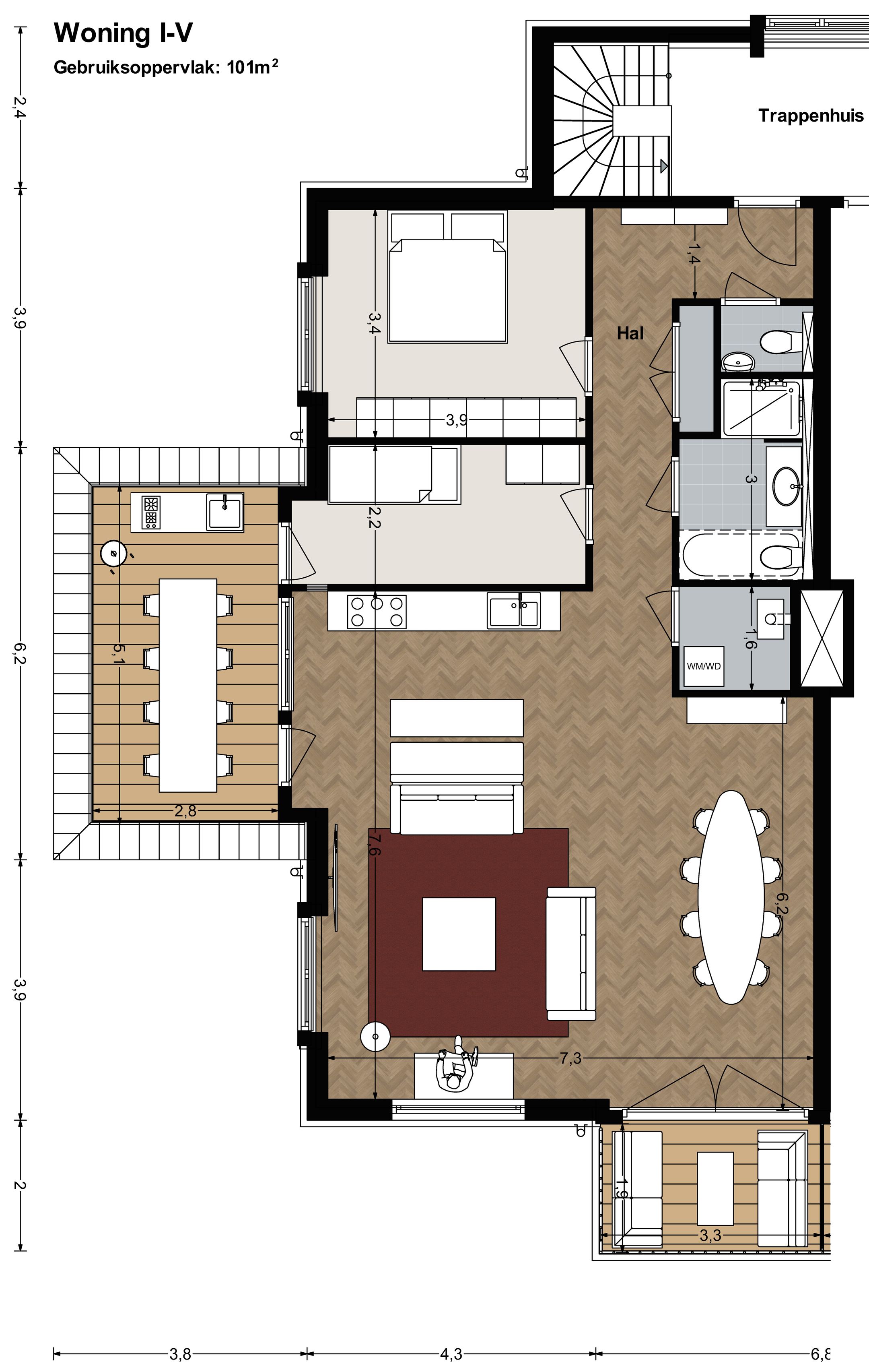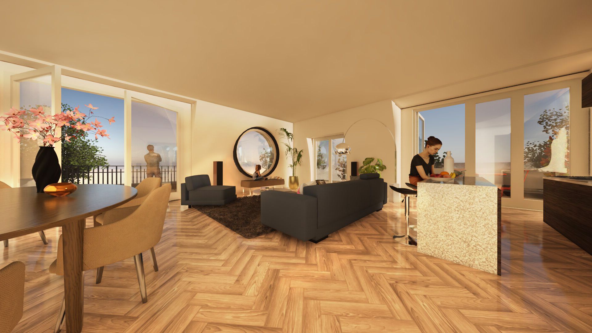 BUITENPLAATS RIJNLUST - Altijd op een buitenplaats willen wonen? Bent u op zoek naar een gelijkvloers appartement dat comfort, luxe en geschiedenis combineert met een heerlijke locatie aan de Oude Rijn? Deze nieuwbouw villa biedt deze mogelijkheid met in totaal 6 exclusieve appartementen in een nostalgisch stukje Alphen. Op deze plek ervaar je de rust van het groen om je heen en geniet je van de voorbij varende sloepen, met op korte afstand gelegen alle voorzieningen. Elke verdieping heeft 2 hoekappartementen die een ongevenaarde leefruimte bieden dankzij de royale frontbreedte van 7,5 meter en een plafondhoogte van ruim 2,80 meter. Dit zorgt niet alleen voor een lichte en luchtige woonomgeving, maar ook voor een panoramisch uitzicht op de oude Rijn. De combinatie van historisch uiterlijk met alle luxe en duurzaamheid van de huidige tijd, maken villa Rijnlust een genot om te wonen. Er is gekozen voor een royale woonkamer met open keuken, dat het hart vormt van de woning. Uw nieuwe thuis beschikt over twee terrassen, waarvan n op het zonnige zuiden gelegen is. Elke woning wordt turnkeyinstapklaar opgeleverd, dit houdt in dat elke woning een luxe keuken, badkamer, vloeren en schilderwerk naar keuze krijgen en waarbij de elektrische zonneschermen gemonteerd zijn. U krijgt de sleutel en kunt meteen verhuizen. De buitenplaats is alleen toegankelijk via een afsluitbaar hek en beschikt over een eigen parkeerterrein. Dit zorgt niet alleen voor een veilige woonomgeving, maar ook voor een gevoel van exclusiviteit en rust. De verwachte oplevering is zomer 2027. PENTHOUSE Op de bovenste verdieping van deze villa heeft u aan de westkant een penthouse van 101 m2. Deze residentie bevindt zich op de 2de verdieping en bereikt u via de lift of trap. Na de ingang loopt u langs het separate toilet, de twee slaapkamers en de luxe badkamer. Vervolgens betreedt u de royale living met een open keuken met kookeiland. Kenmerkend voor deze living is het grote ronde raam van 2 meter doorsnede. U kunt in of naast dit raam gaan zitten en genieten van het prachtige uitzicht over de Oude Rijn. Daarnaast is er gekozen voor een recht dak dat na 1,50 meter gebogen doorloopt tot een interne hoogte van 2,83 cm. Tezamen met de grote ramen en de grote glazen puien, krijgt u een ruimtelijk en uniek interieur. Naast de keuken bevindt zich een groot terras van 14 m2 op het zuidwesten waar u zelf een buitenkeuken kunt plaatsen. Dit terras waarbij de afscherming onderdeel uitmaakt van het natuurleiendak, is uniek in zowel zijn grootte als uiterlijk. Daarnaast zit u hier tot laat in de avond in de zon. Het tweede terras aan de Rijnzijde heeft ook uitzicht over het vaarwater en pakt u de ochtendstralen mee. Dit appartement is uniek door de grote leefruimte met kookeiland en het grote terras op het zuidwesten. Het grote ronde raam aan de zuidzijde, maakt dit penthouse een lust voor het oog. LOCATIE Ondanks dat 'Rijnlust' net buiten het directe centrum ligt op 2 km afstand, is het centrum binnen 10 minuten met de fiets bereikbaar. Winkelcentrum Herenhof, waar je nog steeds gratis kan parkeren, ligt tevens op 2 km afstand. Via de Gnephoek en Koningin Maximabrug bent u binnen een paar minuten op de N11. Op eigen afgesloten terrein zijn priv parkeerplaatsen, welke via een elektrisch afsluitbare poort toegankelijk zijn. Bewoners en bezoekers die gebruik maken van het openbaar vervoer, stappen op bij de bushalte op nog geen 100 meter afstand. Zie Rijnlust. nl voor meer informatie. Alle verstrekte informatie moet beschouwd worden als een uitnodiging tot het doen van een bod. Deze informatie is met de nodige zorgvuldigheid samengesteld. Onzerzijds wordt echter geen enkele aansprakelijkheid aanvaard voor enige onvolledigheid, onjuistheid of anderszins, dan wel de gevolgen daarvan. Alle opgegeven maten en oppervlakten zijn gemeten volgens NEN2580 meetinstructie.