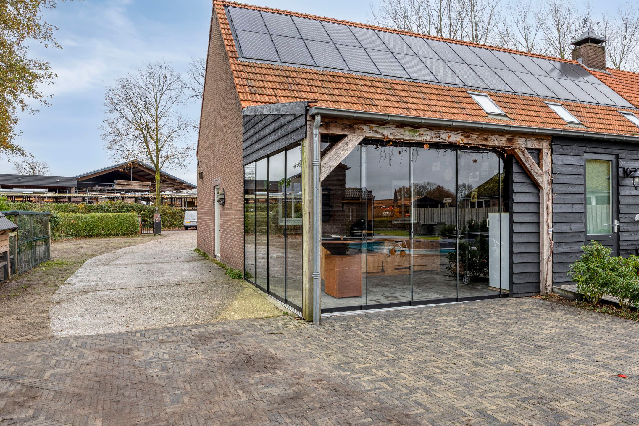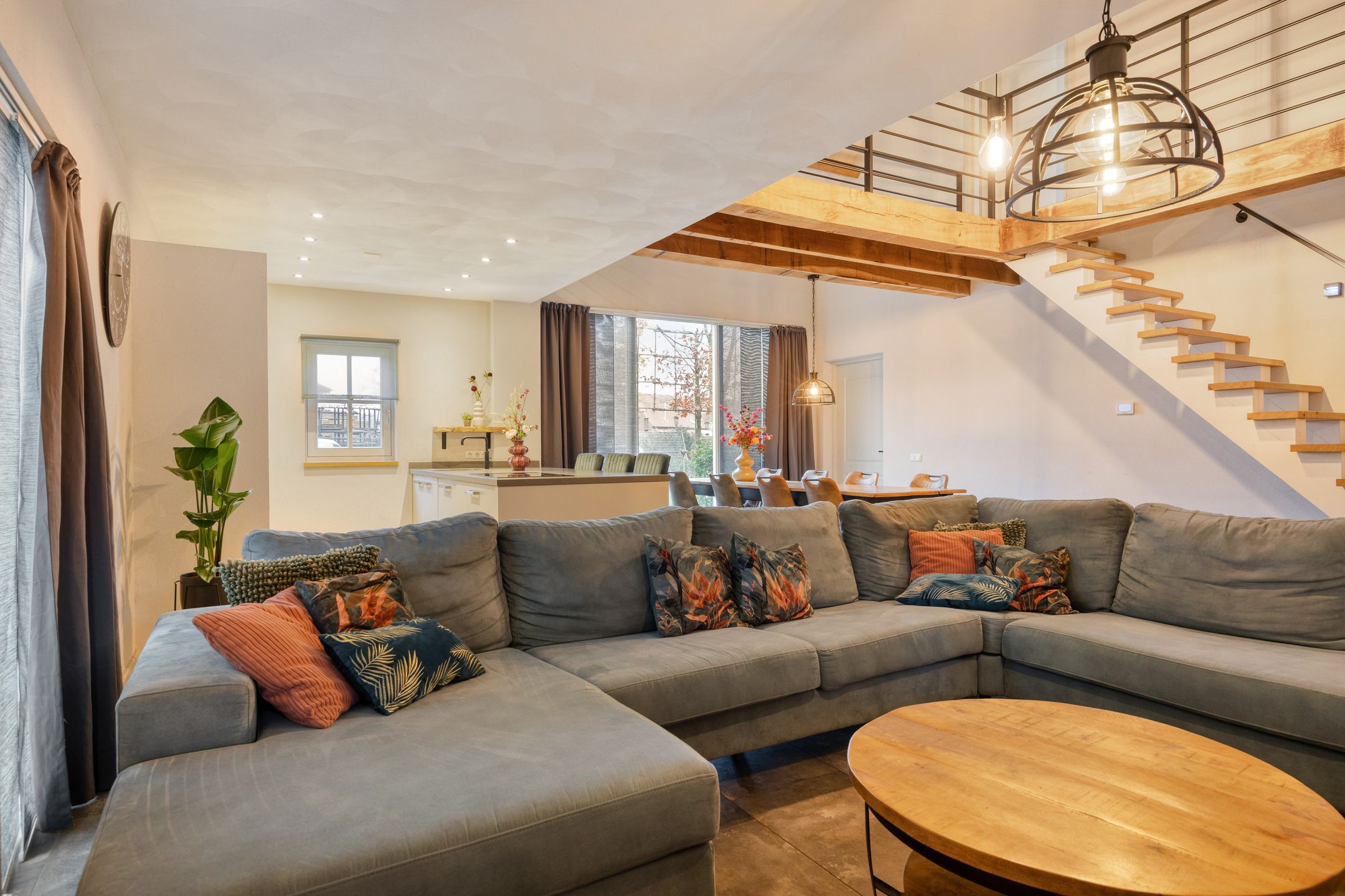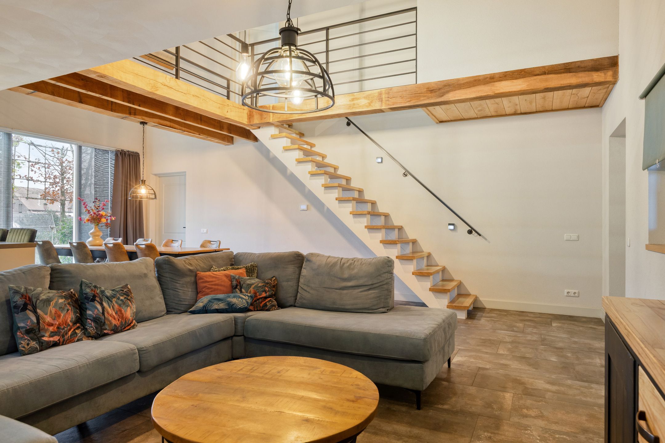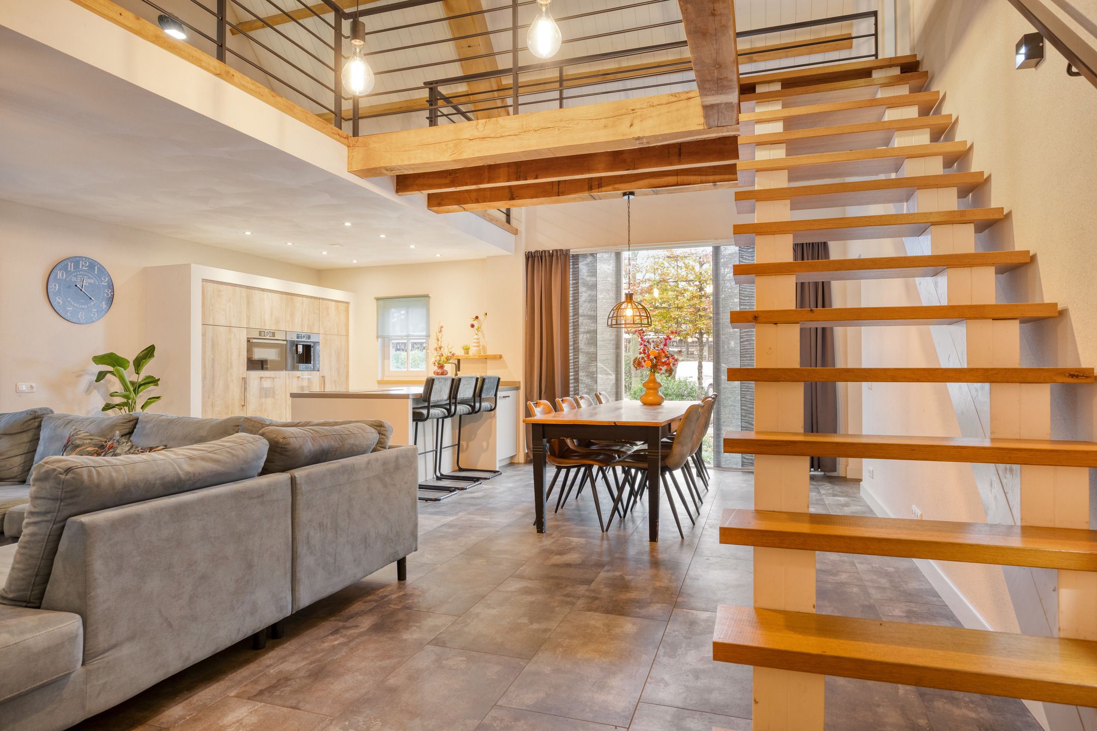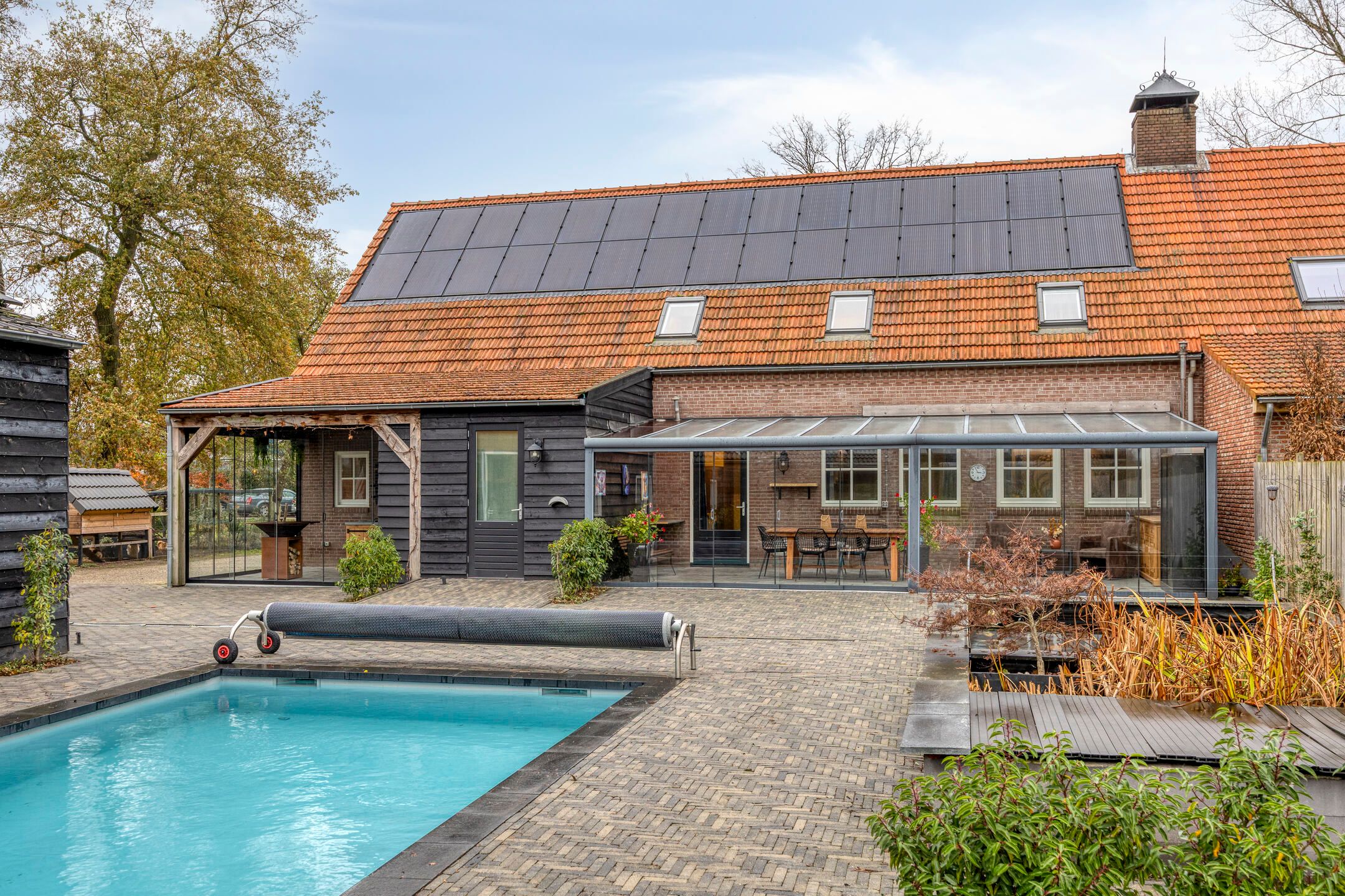 Unieke half vrijstaande woonboerderij met mantelwoning, zwembad, tuinkamer en grote garage op schitterende landelijke locatie! Aan een rustige landweg in het groene buitengebied van Sint-Oedenrode staat deze royale en karaktervolle half vrijstaande woonboerderij met volop leefruimte, een volledig zelfstandige mantelwoning, een prachtige tuinkamer, een afsluitbare barbecueruimte, zwembad en een enorme vrijstaande garage met vliering. Dankzij 66 zonnepanelen, een warmtepomp en goede isolatie is de woning bovendien toekomstbestendig n energiezuinig. De woning is verrassend ruim ingedeeld en beschikt onder andere over een imposante woonkamer met vide, luxe keuken met kookeiland, praktische bijkeuken, vier slaapkamers en een moderne badkamer op de verdieping. De mantelwoning bestaat uit een eigen woonkamer, keuken, eethoek, slaapkamer, badkamer, toilet, bijkeuken en een royale serre met glazen schuifwanden. De prachtige achtertuin met zwembad, tuinkamer, diverse zitplekken en vrij uitzicht over de weilanden biedt ultieme privacy en volop mogelijkheden voor ontspanning, hobbys en buitenleven. Een uniek geheel met woongenot op hoog niveau! De woning ligt aan een rustige weg met slechts bestemmingsverkeer, midden in een groene en landelijke omgeving. Hier ervaar je dagelijks rust, ruimte en privacy, terwijl alle voorzieningen verrassend dichtbij zijn. Het gezellige centrum van Sint-Oedenrode ligt op slechts enkele autominuten en biedt winkels, supermarkten, horecagelegenheden, scholen en sportverenigingen. De omgeving is rijk aan natuur: het Dommeldal, De Rooise Heide en diverse wandel- en fietsroutes liggen vrijwel om de hoek. Dankzij de nabijgelegen A50 zijn Eindhoven, Veghel en s-Hertogenbosch uitstekend bereikbaar. Ideaal voor wie landelijk wil wonen met snelle verbindingen naar de stad. Bijzonderheden op een rij Bouwjaar: 1960 (volledig gemoderniseerd in 20172018) Perceeloppervlakte: ca. 2.617 m2 Woonoppervlakte: ca. 219 m2 Overige inpandige ruimte: 17 m2 Gebouwgebonden buitenruimte: 51 m2 Externe bergruimte: ca. 175 m2 Inhoud woning: ca. 876 m Energielabel A Maar liefst 66 zonnepanelen en een moderne warmtepompinstallatie Lichte woonkamer met hoge vide, balkenplafond en sfeervolle uitstraling Luxe open keuken met kookeiland en hoogwaardige inbouwapparatuur Grote eethoek in open verbinding met woonkamer en keuken Praktische bijkeuken met achterom Vier slaapkamers en moderne badkamer op de eerste verdieping Ruime vliering bereikbaar via vlizotrap Volwaardige mantelwoning met eigen woonkamer, keuken, eethoek, slaapkamer, badkamer, toilet en bijkeuken Royale serre met glazen schuifwanden, het hele jaar door te gebruiken Zwembad met aparte installatieruimte Grote vrijstaande garage (ca. 15,7 8,86 m) met vaste trap naar ruime vliering Meerdere bergingen rondom de garage Sfeervolle tuinkamer (2022) met houtkachel en uitzicht op het zwembad Afsluitbare barbecueruimte met buitenkeuken en glazen wanden Enorme achtertuin met terrassen, pergola, vuurplaats en vrij uitzicht over weilanden Fraai aangelegde voortuin met sierhekwerk en royale oprit Landelijke ligging met volop privacy Centrale locatie tussen Eindhoven en s-Hertogenbosch Aanvaarding: in overleg Wil je een unieke combinatie van ruimte, privacy, luxe, energiebesparing n mogelijkheden voor mantelzorg of thuiswerken? Dan is t Achterom 5 in Sint-Oedenrode een kans die je niet mag missen! Begane grond Via de vernieuwde voordeur kom je binnen in een lichte, verzorgde entree waar het meteen prettig aanvoelt. De combinatie van strakke wanden en de moderne tegelvloer zorgt voor een rustige, eigentijdse uitstraling. Vanuit hier bereik je de toiletruimte, de technische ruimte en beide wooneenheden. Neem je de rechterdeur, dan stap je binnen in een verrassend ruime en sfeervolle woning. Het separate toilet is netjes afgewerkt met grote grijze wand- en vloertegels. De ruimte oogt luxe en tijdloos en is voorzien van een wandcloset en een modern fonteintje met meubel. Zodra je de woonkamer binnenloopt, valt de bijzondere hoogte direct op. De open vide, het zicht op de houten balken en de warme kleuren geven deze ruimte een unieke, bijna loftachtige sfeer. Deze royale ruimte biedt volop mogelijkheden voor een comfortabele zithoek. Dankzij de combinatie van natuurlijke materialen en moderne afwerking ontstaat een gezellige en ontspannen sfeer. Aansluitend aan de woonkamer bevindt zich de ruime eethoek. Hier plaats je met gemak een grote eettafel, ideaal voor etentjes, verjaardagen of een lange zondagse brunch. De sfeervolle verlichting en het vele daglicht maken dit een uitnodigende plek waar je graag langer blijft zitten. Door de open verbinding met de keuken en het woongedeelte voelt alles logisch en verbonden aan. De open keuken is een echte blikvanger. Het strakke kookeiland biedt extra werkruimte en is tegelijkertijd een gezellige plek om aan te schuiven met een kop koffie of tijdens het koken even mee te praten. De keuken is luxe uitgevoerd en voorzien van een inductiekookplaat, een combiovenmagnetron, een vaatwasser, een Quooker, een ingebouwd koffiezetapparaat, een koelkast, ruime kastenwand in lichte houtlook. De spotverlichting zorgt voor een mooie, rustige belichting. Dankzij de open indeling heb je altijd contact met de woonkamer en eethoek. De open trap en vide versterken het gevoel van ruimte en maken de woonkamer nog lichter. De houten treden combineren mooi met de balken en geven de ruimte een warme, sfeervolle uitstraling. Aan de achterzijde van de woning bevindt zich de ruime bijkeuken. De lichte afwerking en het lange werkblad maken dit een fijne, functionele ruimte. Hier vind je de aansluitingen voor wasmachine en droger, een spoelbak, ruimte voor een extra koelkastvriezer, praktische opbergmogelijkheden en kapstokken. Dankzij de achterdeur heb je direct toegang tot buiten, ideaal voor dagelijks gebruik. Mantelwoning Wanneer je vanuit de centrale hal rechtdoor loopt, bereik je de mantelwoning: een zelfstandige, volledig gelijkvloerse woo