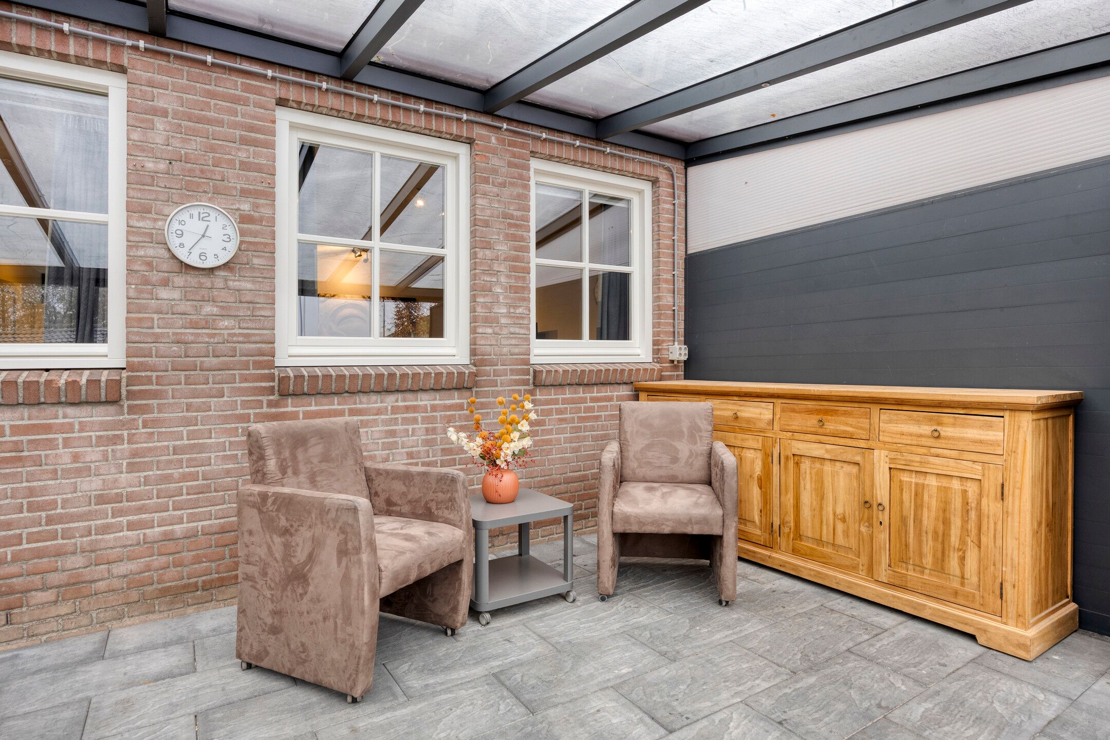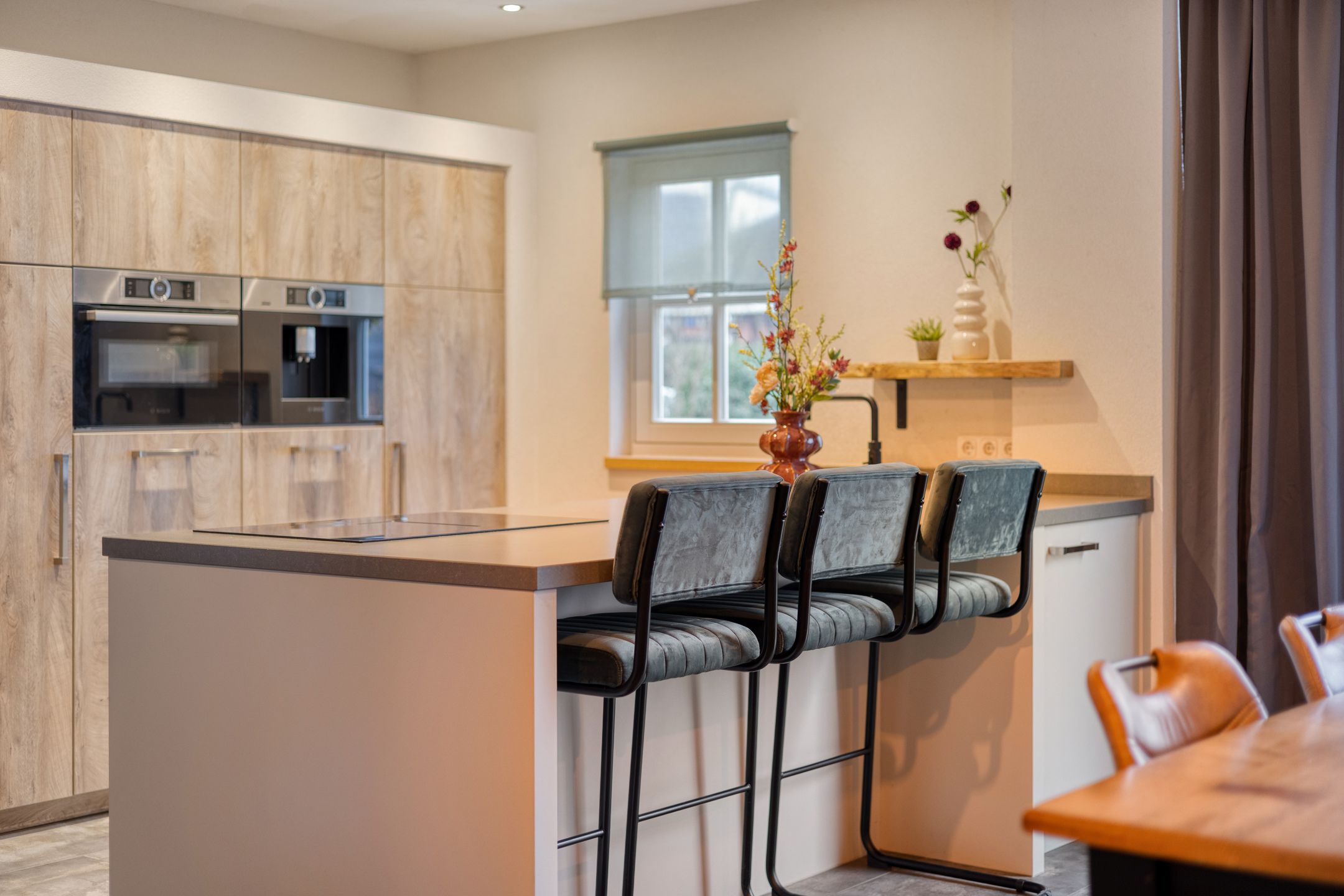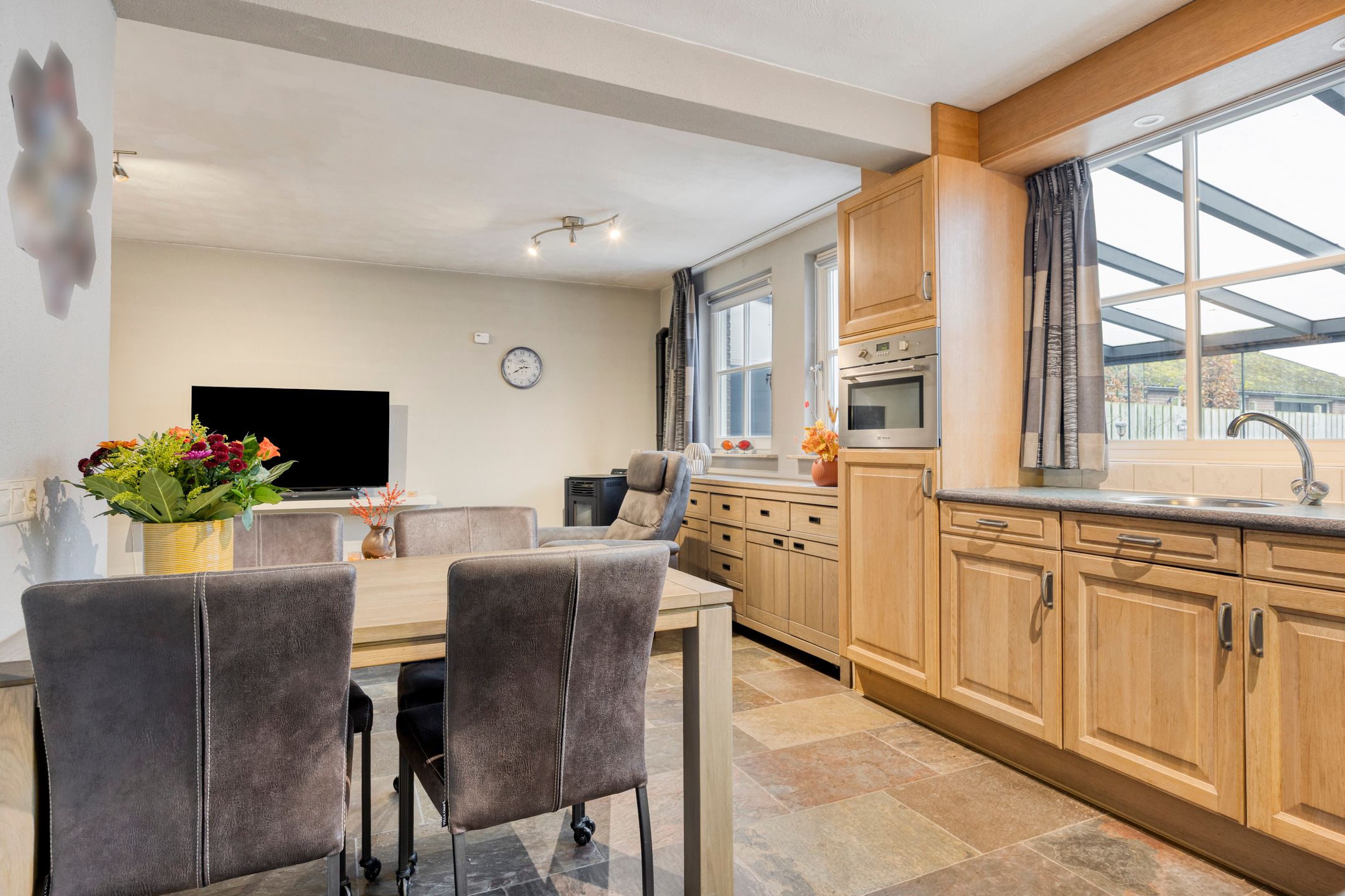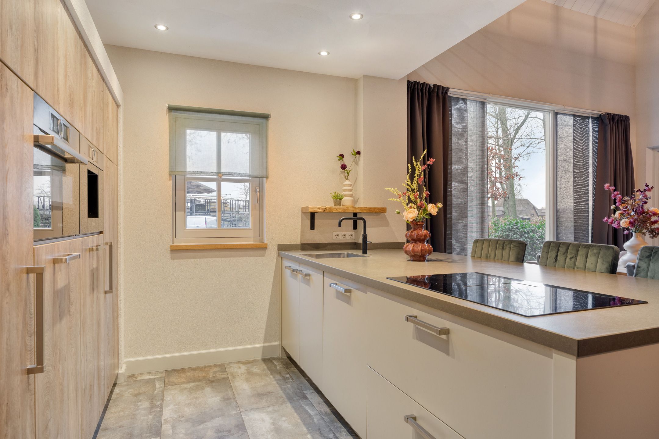 Unieke half vrijstaande woonboerderij met mantelwoning, zwembad, tuinkamer en grote garage op schitterende landelijke locatie! Aan een rustige landweg in het groene buitengebied van Sint-Oedenrode staat deze royale en karaktervolle half vrijstaande woonboerderij met volop leefruimte, een volledig zelfstandige mantelwoning, een prachtige tuinkamer, een afsluitbare barbecueruimte, zwembad en een enorme vrijstaande garage met vliering. Dankzij 66 zonnepanelen, een warmtepomp en goede isolatie is de woning bovendien toekomstbestendig n energiezuinig. De woning is verrassend ruim ingedeeld en beschikt onder andere over een imposante woonkamer met vide, luxe keuken met kookeiland, praktische bijkeuken, vier slaapkamers en een moderne badkamer op de verdieping. De mantelwoning bestaat uit een eigen woonkamer, keuken, eethoek, slaapkamer, badkamer, toilet, bijkeuken en een royale serre met glazen schuifwanden. De prachtige achtertuin met zwembad, tuinkamer, diverse zitplekken en vrij uitzicht over de weilanden biedt ultieme privacy en volop mogelijkheden voor ontspanning, hobbys en buitenleven. Een uniek geheel met woongenot op hoog niveau! De woning ligt aan een rustige weg met slechts bestemmingsverkeer, midden in een groene en landelijke omgeving. Hier ervaar je dagelijks rust, ruimte en privacy, terwijl alle voorzieningen verrassend dichtbij zijn. Het gezellige centrum van Sint-Oedenrode ligt op slechts enkele autominuten en biedt winkels, supermarkten, horecagelegenheden, scholen en sportverenigingen. De omgeving is rijk aan natuur: het Dommeldal, De Rooise Heide en diverse wandel- en fietsroutes liggen vrijwel om de hoek. Dankzij de nabijgelegen A50 zijn Eindhoven, Veghel en s-Hertogenbosch uitstekend bereikbaar. Ideaal voor wie landelijk wil wonen met snelle verbindingen naar de stad. Bijzonderheden op een rij Bouwjaar: 1960 (volledig gemoderniseerd in 20172018) Perceeloppervlakte: ca. 2.617 m2 Woonoppervlakte: ca. 219 m2 Overige inpandige ruimte: 17 m2 Gebouwgebonden buitenruimte: 51 m2 Externe bergruimte: ca. 175 m2 Inhoud woning: ca. 876 m Energielabel A Maar liefst 66 zonnepanelen en een moderne warmtepompinstallatie Lichte woonkamer met hoge vide, balkenplafond en sfeervolle uitstraling Luxe open keuken met kookeiland en hoogwaardige inbouwapparatuur Grote eethoek in open verbinding met woonkamer en keuken Praktische bijkeuken met achterom Vier slaapkamers en moderne badkamer op de eerste verdieping Ruime vliering bereikbaar via vlizotrap Volwaardige mantelwoning met eigen woonkamer, keuken, eethoek, slaapkamer, badkamer, toilet en bijkeuken Royale serre met glazen schuifwanden, het hele jaar door te gebruiken Zwembad met aparte installatieruimte Grote vrijstaande garage (ca. 15,7 8,86 m) met vaste trap naar ruime vliering Meerdere bergingen rondom de garage Sfeervolle tuinkamer (2022) met houtkachel en uitzicht op het zwembad Afsluitbare barbecueruimte met buitenkeuken en glazen wanden Enorme achtertuin met terrassen, pergola, vuurplaats en vrij uitzicht over weilanden Fraai aangelegde voortuin met sierhekwerk en royale oprit Landelijke ligging met volop privacy Centrale locatie tussen Eindhoven en s-Hertogenbosch Aanvaarding: in overleg Wil je een unieke combinatie van ruimte, privacy, luxe, energiebesparing n mogelijkheden voor mantelzorg of thuiswerken? Dan is t Achterom 5 in Sint-Oedenrode een kans die je niet mag missen! Begane grond Via de vernieuwde voordeur kom je binnen in een lichte, verzorgde entree waar het meteen prettig aanvoelt. De combinatie van strakke wanden en de moderne tegelvloer zorgt voor een rustige, eigentijdse uitstraling. Vanuit hier bereik je de toiletruimte, de technische ruimte en beide wooneenheden. Neem je de rechterdeur, dan stap je binnen in een verrassend ruime en sfeervolle woning. Het separate toilet is netjes afgewerkt met grote grijze wand- en vloertegels. De ruimte oogt luxe en tijdloos en is voorzien van een wandcloset en een modern fonteintje met meubel. Zodra je de woonkamer binnenloopt, valt de bijzondere hoogte direct op. De open vide, het zicht op de houten balken en de warme kleuren geven deze ruimte een unieke, bijna loftachtige sfeer. Deze royale ruimte biedt volop mogelijkheden voor een comfortabele zithoek. Dankzij de combinatie van natuurlijke materialen en moderne afwerking ontstaat een gezellige en ontspannen sfeer. Aansluitend aan de woonkamer bevindt zich de ruime eethoek. Hier plaats je met gemak een grote eettafel, ideaal voor etentjes, verjaardagen of een lange zondagse brunch. De sfeervolle verlichting en het vele daglicht maken dit een uitnodigende plek waar je graag langer blijft zitten. Door de open verbinding met de keuken en het woongedeelte voelt alles logisch en verbonden aan. De open keuken is een echte blikvanger. Het strakke kookeiland biedt extra werkruimte en is tegelijkertijd een gezellige plek om aan te schuiven met een kop koffie of tijdens het koken even mee te praten. De keuken is luxe uitgevoerd en voorzien van een inductiekookplaat, een combiovenmagnetron, een vaatwasser, een Quooker, een ingebouwd koffiezetapparaat, een koelkast, ruime kastenwand in lichte houtlook. De spotverlichting zorgt voor een mooie, rustige belichting. Dankzij de open indeling heb je altijd contact met de woonkamer en eethoek. De open trap en vide versterken het gevoel van ruimte en maken de woonkamer nog lichter. De houten treden combineren mooi met de balken en geven de ruimte een warme, sfeervolle uitstraling. Aan de achterzijde van de woning bevindt zich de ruime bijkeuken. De lichte afwerking en het lange werkblad maken dit een fijne, functionele ruimte. Hier vind je de aansluitingen voor wasmachine en droger, een spoelbak, ruimte voor een extra koelkastvriezer, praktische opbergmogelijkheden en kapstokken. Dankzij de achterdeur heb je direct toegang tot buiten, ideaal voor dagelijks gebruik. Mantelwoning Wanneer je vanuit de centrale hal rechtdoor loopt, bereik je de mantelwoning: een zelfstandige, volledig gelijkvloerse woo