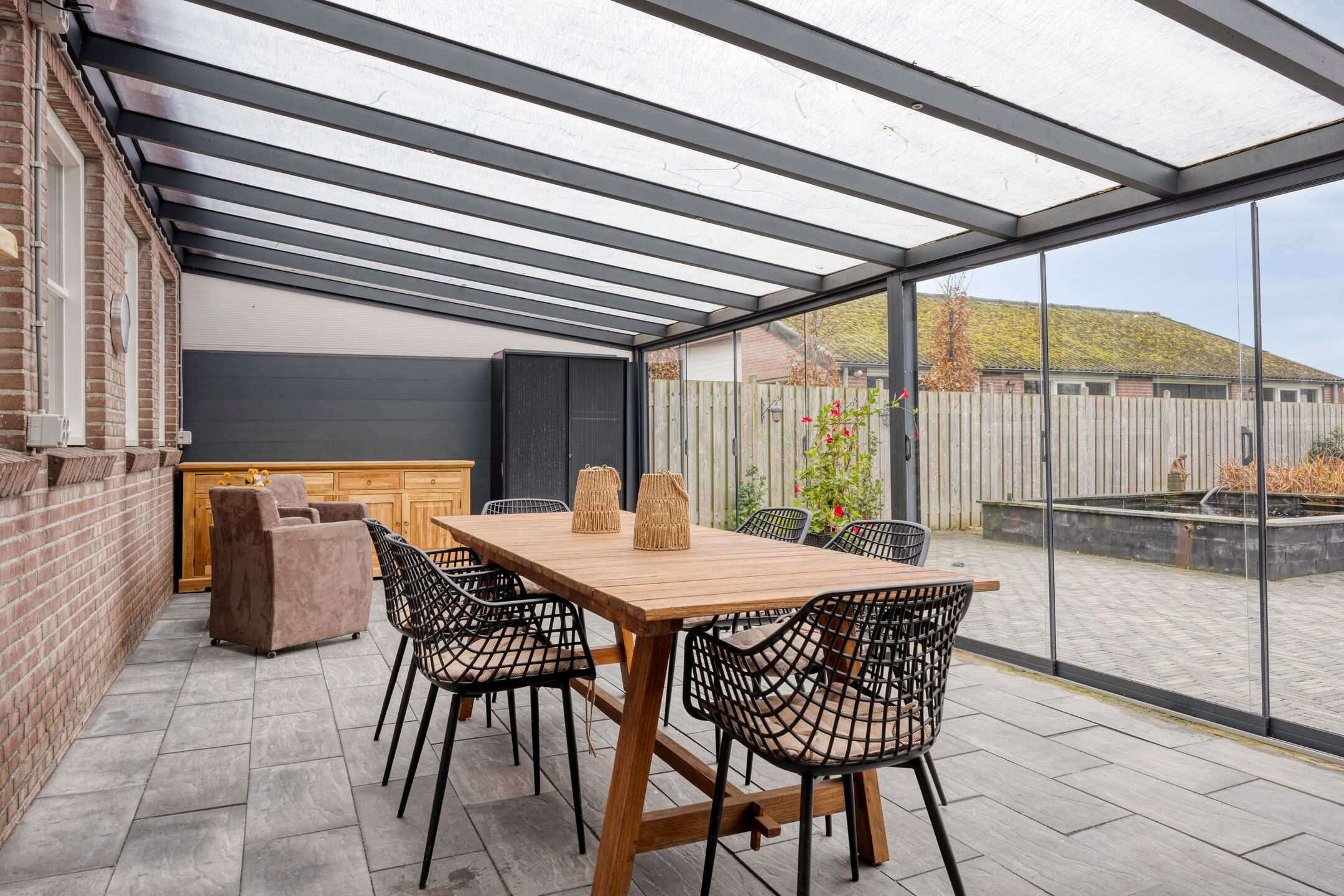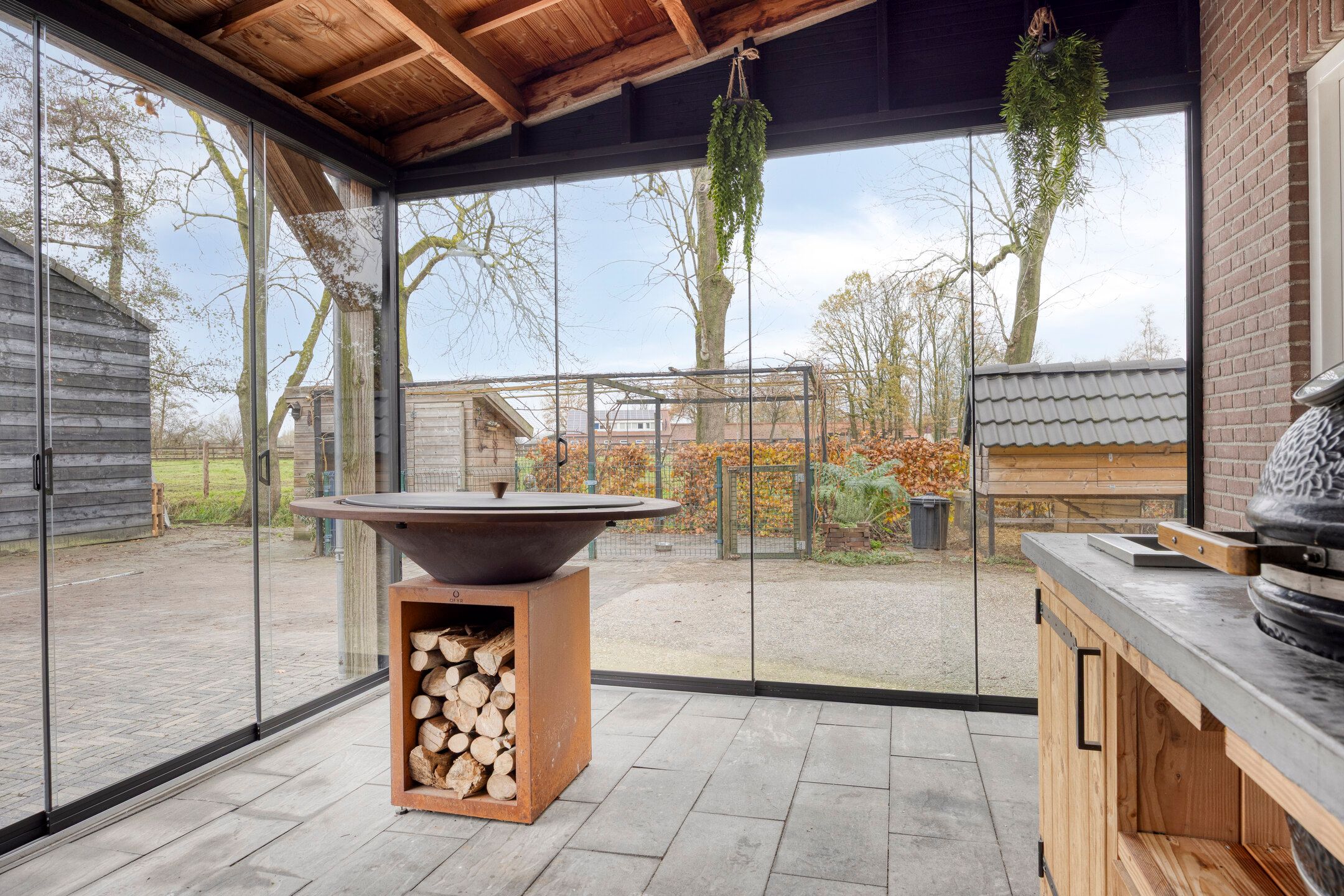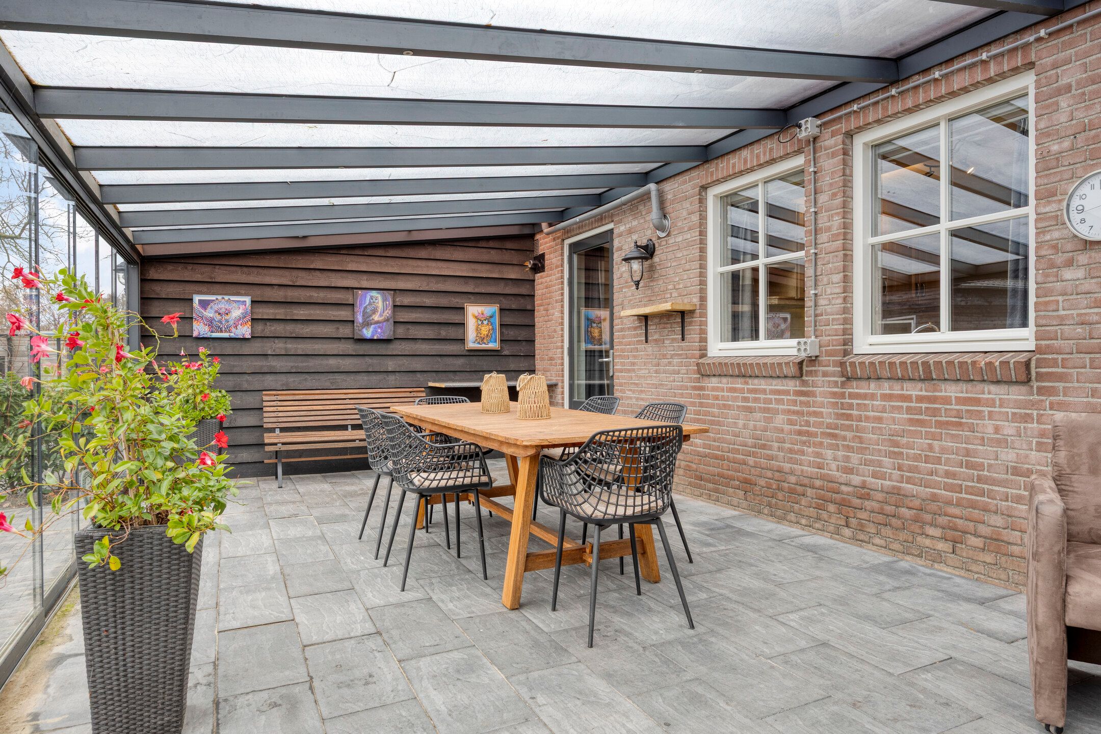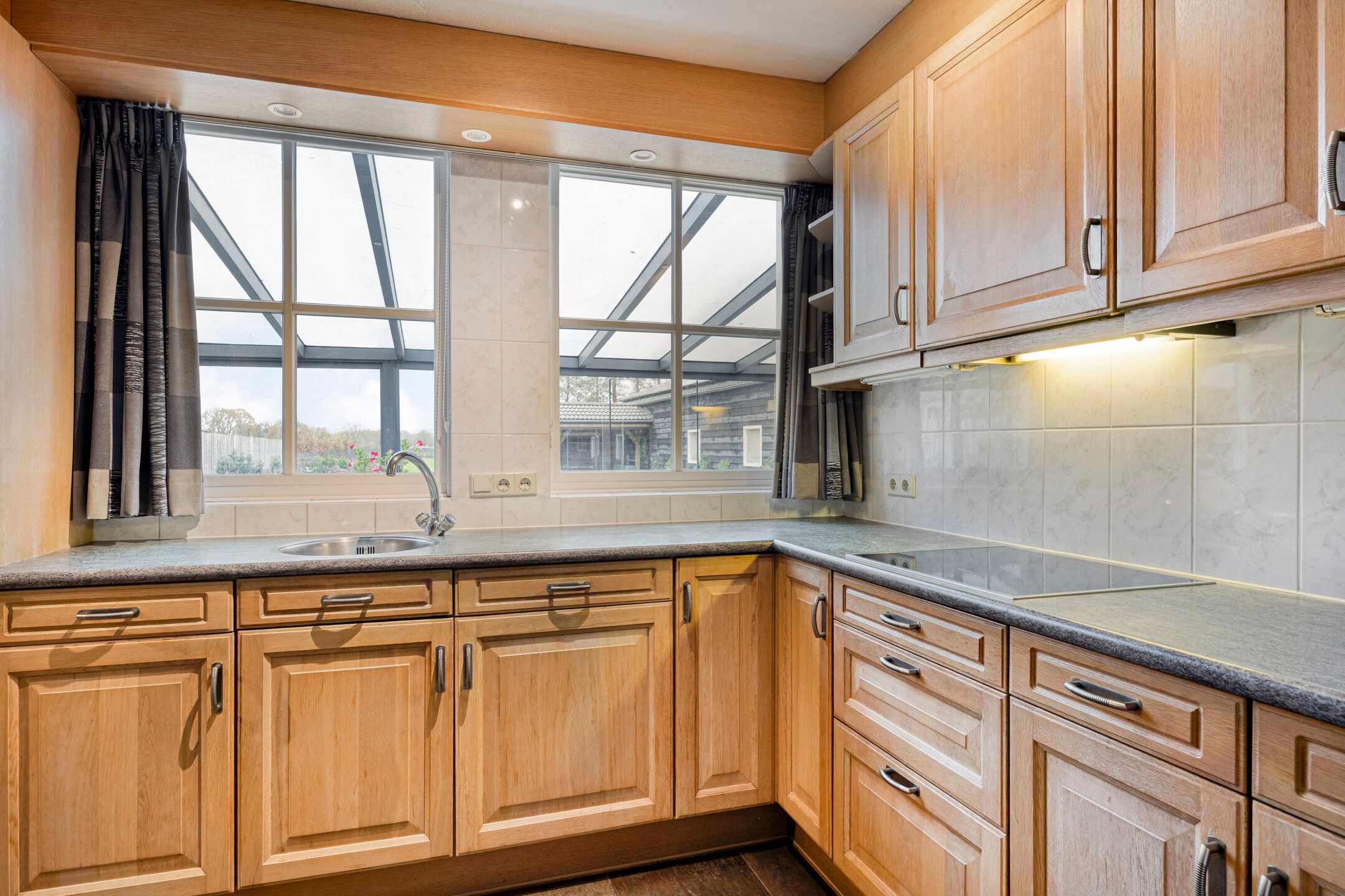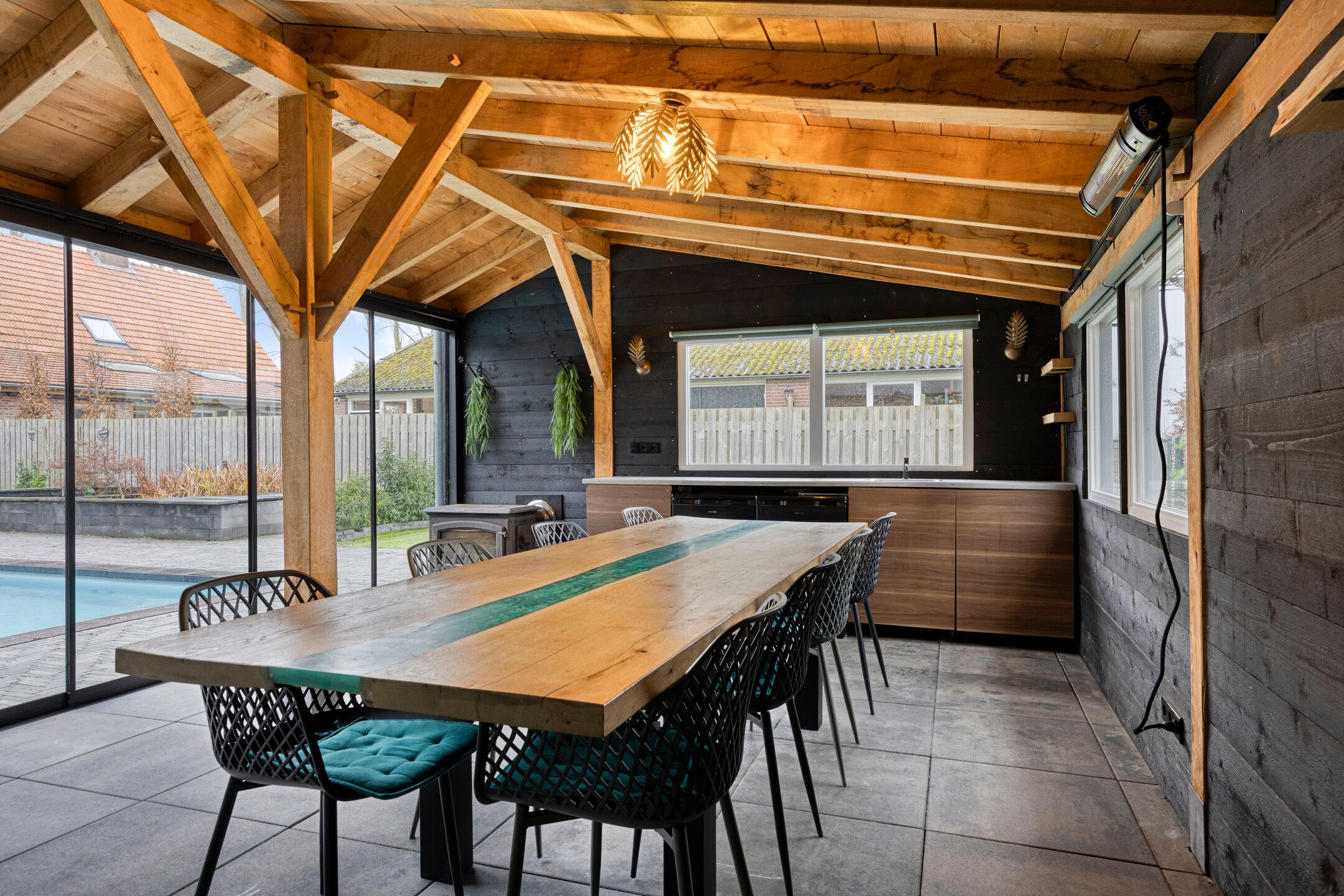 Unieke half vrijstaande woonboerderij met mantelwoning, zwembad, tuinkamer en grote garage op schitterende landelijke locatie! Aan een rustige landweg in het groene buitengebied van Sint-Oedenrode staat deze royale en karaktervolle half vrijstaande woonboerderij met volop leefruimte, een volledig zelfstandige mantelwoning, een prachtige tuinkamer, een afsluitbare barbecueruimte, zwembad en een enorme vrijstaande garage met vliering. Dankzij 66 zonnepanelen, een warmtepomp en goede isolatie is de woning bovendien toekomstbestendig n energiezuinig. De woning is verrassend ruim ingedeeld en beschikt onder andere over een imposante woonkamer met vide, luxe keuken met kookeiland, praktische bijkeuken, vier slaapkamers en een moderne badkamer op de verdieping. De mantelwoning bestaat uit een eigen woonkamer, keuken, eethoek, slaapkamer, badkamer, toilet, bijkeuken en een royale serre met glazen schuifwanden. De prachtige achtertuin met zwembad, tuinkamer, diverse zitplekken en vrij uitzicht over de weilanden biedt ultieme privacy en volop mogelijkheden voor ontspanning, hobbys en buitenleven. Een uniek geheel met woongenot op hoog niveau! De woning ligt aan een rustige weg met slechts bestemmingsverkeer, midden in een groene en landelijke omgeving. Hier ervaar je dagelijks rust, ruimte en privacy, terwijl alle voorzieningen verrassend dichtbij zijn. Het gezellige centrum van Sint-Oedenrode ligt op slechts enkele autominuten en biedt winkels, supermarkten, horecagelegenheden, scholen en sportverenigingen. De omgeving is rijk aan natuur: het Dommeldal, De Rooise Heide en diverse wandel- en fietsroutes liggen vrijwel om de hoek. Dankzij de nabijgelegen A50 zijn Eindhoven, Veghel en s-Hertogenbosch uitstekend bereikbaar. Ideaal voor wie landelijk wil wonen met snelle verbindingen naar de stad. Bijzonderheden op een rij Bouwjaar: 1960 (volledig gemoderniseerd in 20172018) Perceeloppervlakte: ca. 2.617 m2 Woonoppervlakte: ca. 219 m2 Overige inpandige ruimte: 17 m2 Gebouwgebonden buitenruimte: 51 m2 Externe bergruimte: ca. 175 m2 Inhoud woning: ca. 876 m Energielabel A Maar liefst 66 zonnepanelen en een moderne warmtepompinstallatie Lichte woonkamer met hoge vide, balkenplafond en sfeervolle uitstraling Luxe open keuken met kookeiland en hoogwaardige inbouwapparatuur Grote eethoek in open verbinding met woonkamer en keuken Praktische bijkeuken met achterom Vier slaapkamers en moderne badkamer op de eerste verdieping Ruime vliering bereikbaar via vlizotrap Volwaardige mantelwoning met eigen woonkamer, keuken, eethoek, slaapkamer, badkamer, toilet en bijkeuken Royale serre met glazen schuifwanden, het hele jaar door te gebruiken Zwembad met aparte installatieruimte Grote vrijstaande garage (ca. 15,7 8,86 m) met vaste trap naar ruime vliering Meerdere bergingen rondom de garage Sfeervolle tuinkamer (2022) met houtkachel en uitzicht op het zwembad Afsluitbare barbecueruimte met buitenkeuken en glazen wanden Enorme achtertuin met terrassen, pergola, vuurplaats en vrij uitzicht over weilanden Fraai aangelegde voortuin met sierhekwerk en royale oprit Landelijke ligging met volop privacy Centrale locatie tussen Eindhoven en s-Hertogenbosch Aanvaarding: in overleg Wil je een unieke combinatie van ruimte, privacy, luxe, energiebesparing n mogelijkheden voor mantelzorg of thuiswerken? Dan is t Achterom 5 in Sint-Oedenrode een kans die je niet mag missen! Begane grond Via de vernieuwde voordeur kom je binnen in een lichte, verzorgde entree waar het meteen prettig aanvoelt. De combinatie van strakke wanden en de moderne tegelvloer zorgt voor een rustige, eigentijdse uitstraling. Vanuit hier bereik je de toiletruimte, de technische ruimte en beide wooneenheden. Neem je de rechterdeur, dan stap je binnen in een verrassend ruime en sfeervolle woning. Het separate toilet is netjes afgewerkt met grote grijze wand- en vloertegels. De ruimte oogt luxe en tijdloos en is voorzien van een wandcloset en een modern fonteintje met meubel. Zodra je de woonkamer binnenloopt, valt de bijzondere hoogte direct op. De open vide, het zicht op de houten balken en de warme kleuren geven deze ruimte een unieke, bijna loftachtige sfeer. Deze royale ruimte biedt volop mogelijkheden voor een comfortabele zithoek. Dankzij de combinatie van natuurlijke materialen en moderne afwerking ontstaat een gezellige en ontspannen sfeer. Aansluitend aan de woonkamer bevindt zich de ruime eethoek. Hier plaats je met gemak een grote eettafel, ideaal voor etentjes, verjaardagen of een lange zondagse brunch. De sfeervolle verlichting en het vele daglicht maken dit een uitnodigende plek waar je graag langer blijft zitten. Door de open verbinding met de keuken en het woongedeelte voelt alles logisch en verbonden aan. De open keuken is een echte blikvanger. Het strakke kookeiland biedt extra werkruimte en is tegelijkertijd een gezellige plek om aan te schuiven met een kop koffie of tijdens het koken even mee te praten. De keuken is luxe uitgevoerd en voorzien van een inductiekookplaat, een combiovenmagnetron, een vaatwasser, een Quooker, een ingebouwd koffiezetapparaat, een koelkast, ruime kastenwand in lichte houtlook. De spotverlichting zorgt voor een mooie, rustige belichting. Dankzij de open indeling heb je altijd contact met de woonkamer en eethoek. De open trap en vide versterken het gevoel van ruimte en maken de woonkamer nog lichter. De houten treden combineren mooi met de balken en geven de ruimte een warme, sfeervolle uitstraling. Aan de achterzijde van de woning bevindt zich de ruime bijkeuken. De lichte afwerking en het lange werkblad maken dit een fijne, functionele ruimte. Hier vind je de aansluitingen voor wasmachine en droger, een spoelbak, ruimte voor een extra koelkastvriezer, praktische opbergmogelijkheden en kapstokken. Dankzij de achterdeur heb je direct toegang tot buiten, ideaal voor dagelijks gebruik. Mantelwoning Wanneer je vanuit de centrale hal rechtdoor loopt, bereik je de mantelwoning: een zelfstandige, volledig gelijkvloerse woo
