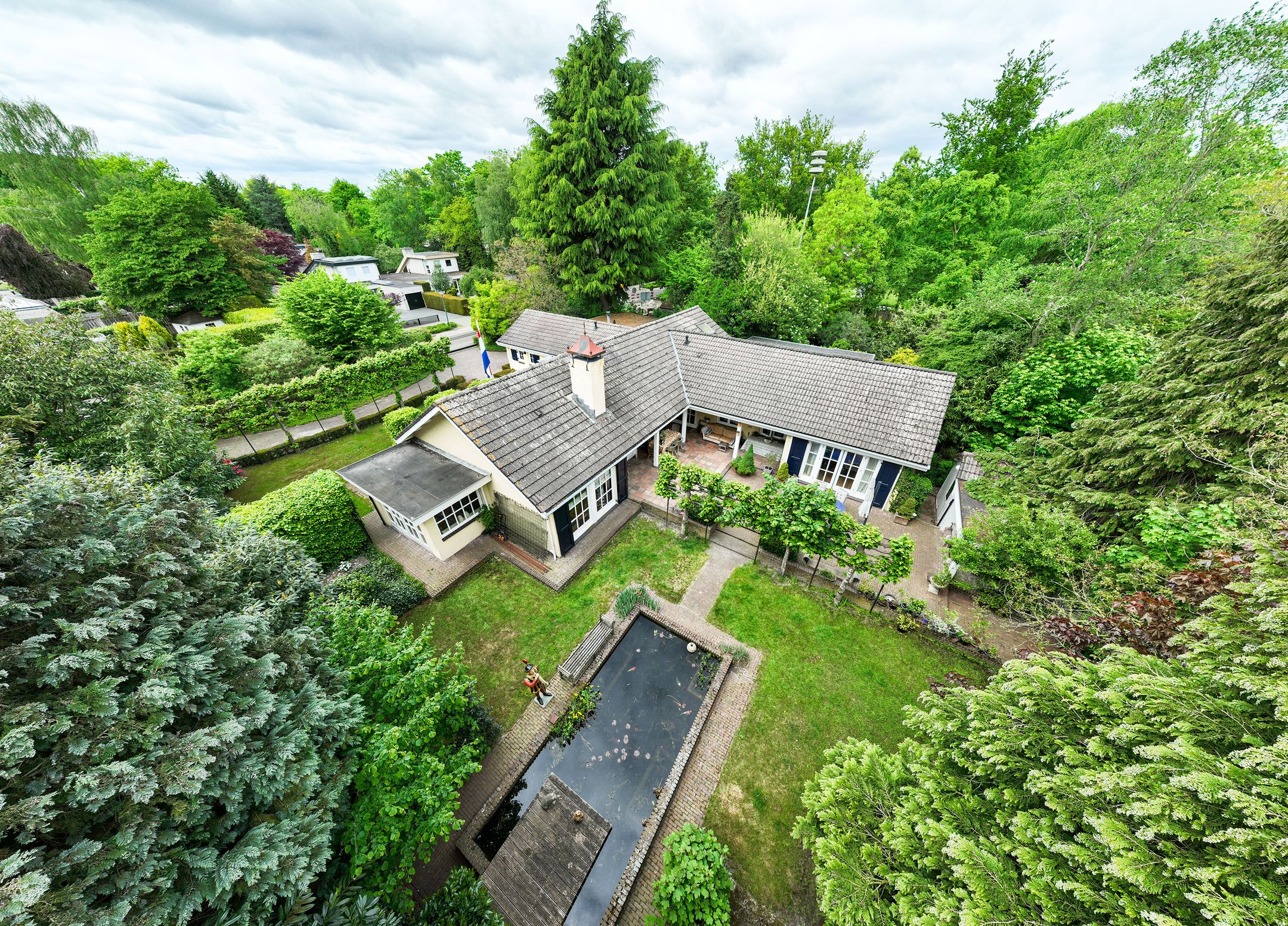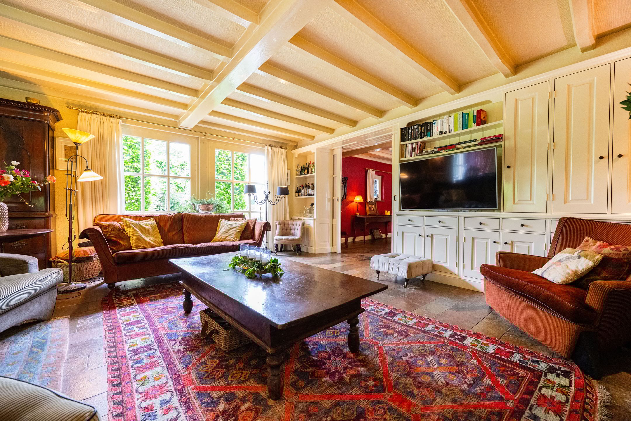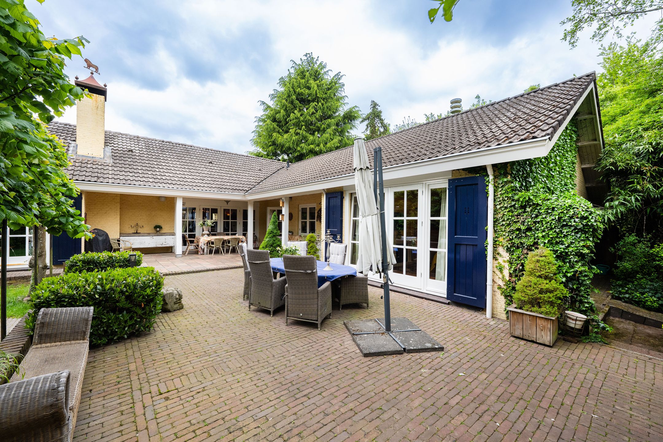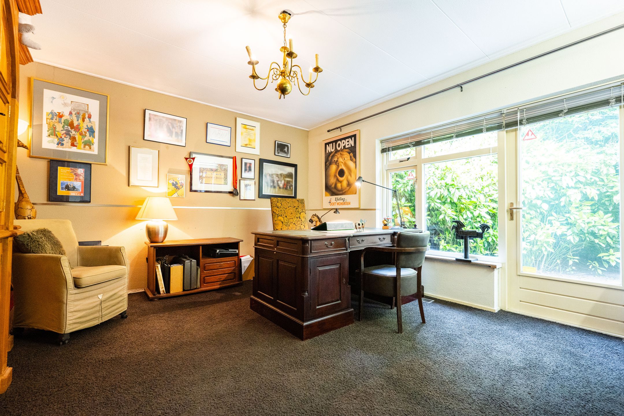 OASE IN HET GROEN Op een toplocatie in Kaatsheuvel, in de lommerrijke villawijk de Oude Omdraaier, met de Loonse en Drunense duinen op loopafstand bieden wij u deze, nagenoeg volledig aan het oog onttrokken, royale en markante vrijstaande semi-bungalow aan. Tal van gebruiksmogelijkheden zijn denkbaar bij dit pand, waaronder levensloopbestendig wonen enof wonen in combinatie met een praktijk aan huis. Een verborgen parel in het groen die uitstekend gesitueerd is ten opzichte van o.a. winkelvoorzieningen, scholen en bijvoorbeeld attractiepark de Efteling. Deze woning, met een gebruiksoppervlak van maar liefst 372 m2, heeft een gebruiksvriendelijke indeling waardoor wonen op de begane grond (met vier slaapkamers en drie badkamers) binnen handbereik ligt. Daarnaast zijn er op de eerste verdieping een speel- en slaapkamer, diverse zolders, is er beneden een kelder en bestaat de mogelijkheid voor kantoor aan huis, een mantelzorg-unit of, zoals nu het geval is: een B&B (vergunning aanwezig). Het huis wordt omgeven door veel groen en meerdere (deels overdekte) terrassen. Een royale carport biedt plaats aan 2 autos en fietsenberging, terwijl op het perceel voldoende parkeergelegenheid aanwezig is. TOEGANG Entree middels dubbele toegangsdeur tot een voorhal, waarin toegang is tot de meterkast, het stookhok en een multifunctionele ruimte die nu in gebruik is als B&B. Deze ruimte bevindt zich aan de voorzijde van de woning en, met een eigen entree en voorzien van een pantry en badkamer met douche en toilet is dit een aparte unit. Een ideale ruimte voor bijvoorbeeld een master-bedroom, maar ook uitermate geschikt voor inwonende ouders of studerende kinderen, au-pair, kantoor, etc. CENTRALE HAL Vanuit deze entree is de volgende ruimte te bereiken: een ruime hal met vide, garderobe, toiletruimte, fraaie opgang naar de verdieping en toegang tot de eetkamer en living. Vanuit de hal is er tevens een corridor naar de slaapkamervleugel, keuken, bijkeuken en kelder. LIVING Intieme sfeer met balkonplafond en gashaard. Via de tuingerichte erker zijn er openslaande deuren naar de tuin. Teven een verlaagd gedeelte waar nu een werkplek is gesitueerd met direct visueel contact naar de tuin. EETKAMER Royale eetkamer die in verbinding staat met de living, hal en een doorgang naar de keuken. Dubbele openslaande deuren geven toegang tot het (overdekte) terras en de tuin. De eetkamer is gescheiden van de living middels een op maat gemaakte, dubbelzijdige en-suite wand. WOONKEUKEN De centrale plek in huis, met genoeg ruimte om gezellig te tafelen, is de royale woonkeuken. De keuken is voorzien van een schiereiland met koffiehoek en is voorzien van diverse luxe inbouwapparatuur. Middels anderhalve openslaande deuren geeft de keuken toegang tot het (overdekte) terras en tuin. BIJKEUKEN Vanuit achterom n vanuit de corridorkeuken is de bijkeuken bereikbaar. Deze is voorzien van diverse lage keukenkasten en een hoge kastenwand, aanrechtkast met gootsteen en aansluitpunten t.b.v. was-, droog- en vriesapparatuur. SLAAPKAMERHAL Vanuit de centrale hal bereikt u middels de corridor de slaapkamervleugel op de begane grond die toegang geeft tot een drietal royale slaapkamers, waarvan n momenteel in gebruik is als kantoor. Deze heeft, net als de logeerkamer, een eigen wastafelplateau. DOUCHE De twee kamers hebben tevens de beschikking over een badkamer met toilet en douche in de slaapkamerhal. MASTER-BEDROOM De riante master-bedroom, met uitzicht op de tuin, is gesitueerd aan de achterzijde van het pand en voorzien van openslaande deuren die toegang bieden tot het privacy-biedende terras. Vanuit de master-bedroom is er een doorgang naar de badkamer en een ruime walk-in closet (voorheen vierde slaapkamer). BADKAMER Ruime badkamer welke is voorzien van een ligbad, dubbele wastafel en toilet. EERSTE VERDIEPING Hier bevinden zich vier royale ruimtes, waarvan twee ruimtes dienst doen als bergingzolder en twee ruimtes in gebruik waren als speelkamer en logeerruimte. KELDER Vanuit de centrale hal is de kelder bereikbaar die volledig vochtvrij is. Vanaf hier is het mogelijk de kruipruimte te bereiken die onder 90% van het huis aanwezig is. De buizen van de heteluchtverwarming zorgen voor een gelijkmatige warmteverdeling ondervloers, waardoor mede gezorgd wordt voor een vochtvrije omgeving. TUIN Het huis is aan alle zijden omgeven door een grote, onderhoudsvrije (deels bos-) tuin, die de privacy volledig waarborgt. Het terras aan de achterzijde ligt op het zuiden, maar door de perceelgrootte draait de zon volledig om het huis heen. Een sproei-installatie is aanwezig. De schuur en overkapping in de tuin wachten op een make-over door de nieuwe eigenaar. OPRIT Voor het huis ligt een halvemaans-oprit die toegang geeft tot het terrein, dat is voorzien van een dubbele elektrische poort. Op het eigen terrein is parkeergelegenheid voor meerdere autos. Op straat kan men vergunningsvrij parkeren. CARPORT De carport biedt ruimte aan twee autos en een kleiner compartiment aan diverse (brom-)fietsen. KORTOM EEN MARKANTE SEMI-BUNGALOW MET DIVERSE MOGELIJKHEDEN OP EEN UNIEKE LOCATIE TEMIDDEN IN HET GROEN! Algemeen: * Woonoppervlakte begane grond 319 m2 1e verdieping 53 m2 * De woning wordt verwarmd middels heteluchtverwarming (Brink 2007, gerenoveerd in 2013). * Gelijkvloers wonen, levensloopwoning * Het gehele perceel is omheind * Familiehuis met basisschool, kinderopvang en BSO op loopafstand * Energielabel C * Voorzien van spouwmuurisolatie, dakisolatie (deels 1977, deels 2024) en isolerende beglazing, vloerisolatie eerste verdieping * De vierde slaapkamer is tevens een bijzonder gastenverblijf, nu in gebruik als B&B, maar ook ideaal voor beroep of kantoor aan huis door eigen entree en eigen voorzieningen. Afsluitbaar van woonhuis met tussendeur. * Oppervlakte tuin biedt mogelijkheden voor zwembadpoolhouse, mantelzorgvoorziening, tiny house, o.i.d. * Eerste verdieping beschikt over warmkoud water, geen directe verwarming. * Electrische poort met code en