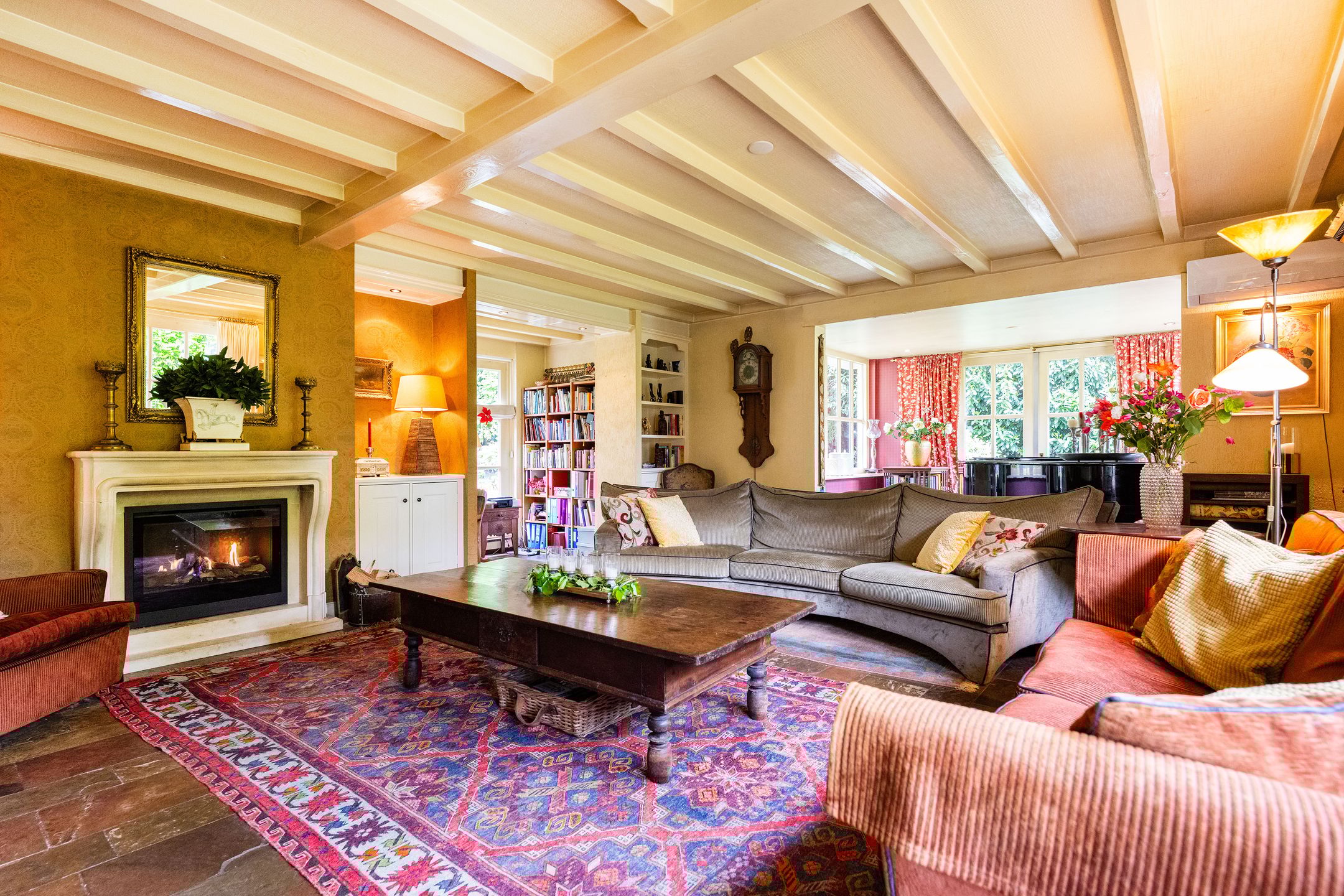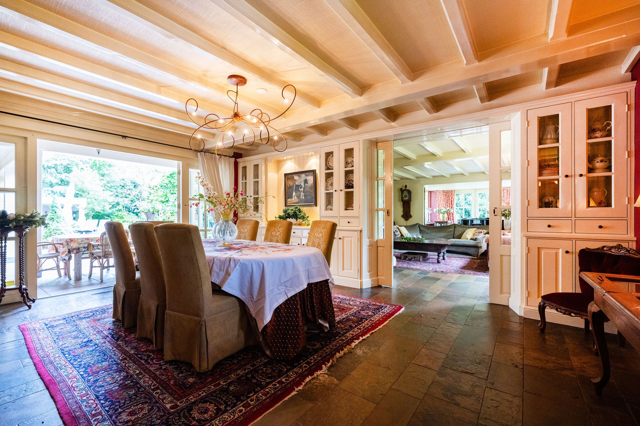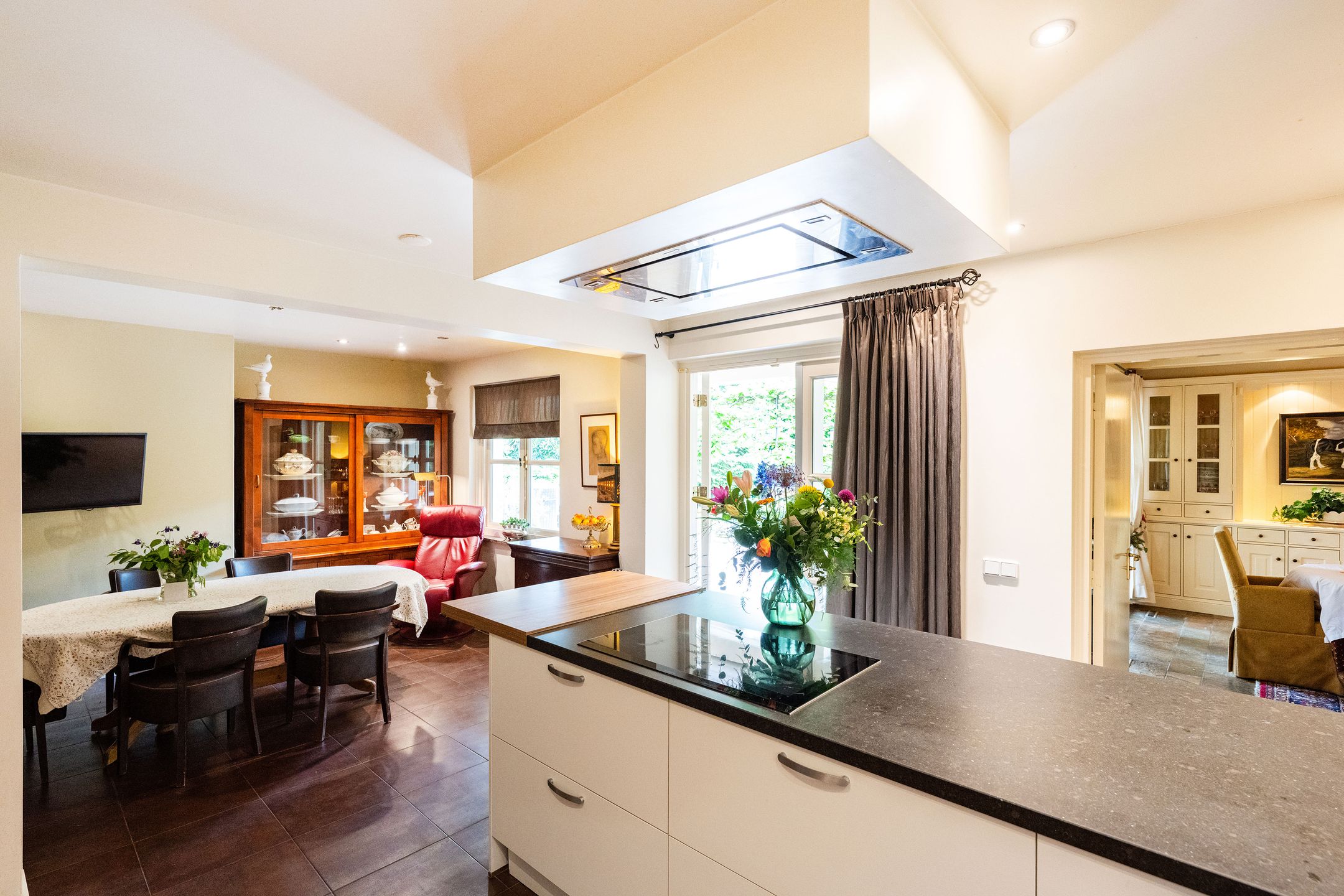 OASE IN HET GROEN Op een toplocatie in Kaatsheuvel, in de lommerrijke villawijk de Oude Omdraaier, met de Loonse en Drunense duinen op loopafstand bieden wij u deze, nagenoeg volledig aan het oog onttrokken, royale en markante vrijstaande semi-bungalow aan. Tal van gebruiksmogelijkheden zijn denkbaar bij dit pand, waaronder levensloopbestendig wonen enof wonen in combinatie met een praktijk aan huis. Een verborgen parel in het groen die uitstekend gesitueerd is ten opzichte van o.a. winkelvoorzieningen, scholen en bijvoorbeeld attractiepark de Efteling. Deze woning, met een gebruiksoppervlak van maar liefst 372 m2, heeft een gebruiksvriendelijke indeling waardoor wonen op de begane grond (met vier slaapkamers en drie badkamers) binnen handbereik ligt. Daarnaast zijn er op de eerste verdieping een speel- en slaapkamer, diverse zolders, is er beneden een kelder en bestaat de mogelijkheid voor kantoor aan huis, een mantelzorg-unit of, zoals nu het geval is: een B&B (vergunning aanwezig). Het huis wordt omgeven door veel groen en meerdere (deels overdekte) terrassen. Een royale carport biedt plaats aan 2 autos en fietsenberging, terwijl op het perceel voldoende parkeergelegenheid aanwezig is. TOEGANG Entree middels dubbele toegangsdeur tot een voorhal, waarin toegang is tot de meterkast, het stookhok en een multifunctionele ruimte die nu in gebruik is als B&B. Deze ruimte bevindt zich aan de voorzijde van de woning en, met een eigen entree en voorzien van een pantry en badkamer met douche en toilet is dit een aparte unit. Een ideale ruimte voor bijvoorbeeld een master-bedroom, maar ook uitermate geschikt voor inwonende ouders of studerende kinderen, au-pair, kantoor, etc. CENTRALE HAL Vanuit deze entree is de volgende ruimte te bereiken: een ruime hal met vide, garderobe, toiletruimte, fraaie opgang naar de verdieping en toegang tot de eetkamer en living. Vanuit de hal is er tevens een corridor naar de slaapkamervleugel, keuken, bijkeuken en kelder. LIVING Intieme sfeer met balkonplafond en gashaard. Via de tuingerichte erker zijn er openslaande deuren naar de tuin. Teven een verlaagd gedeelte waar nu een werkplek is gesitueerd met direct visueel contact naar de tuin. EETKAMER Royale eetkamer die in verbinding staat met de living, hal en een doorgang naar de keuken. Dubbele openslaande deuren geven toegang tot het (overdekte) terras en de tuin. De eetkamer is gescheiden van de living middels een op maat gemaakte, dubbelzijdige en-suite wand. WOONKEUKEN De centrale plek in huis, met genoeg ruimte om gezellig te tafelen, is de royale woonkeuken. De keuken is voorzien van een schiereiland met koffiehoek en is voorzien van diverse luxe inbouwapparatuur. Middels anderhalve openslaande deuren geeft de keuken toegang tot het (overdekte) terras en tuin. BIJKEUKEN Vanuit achterom n vanuit de corridorkeuken is de bijkeuken bereikbaar. Deze is voorzien van diverse lage keukenkasten en een hoge kastenwand, aanrechtkast met gootsteen en aansluitpunten t.b.v. was-, droog- en vriesapparatuur. SLAAPKAMERHAL Vanuit de centrale hal bereikt u middels de corridor de slaapkamervleugel op de begane grond die toegang geeft tot een drietal royale slaapkamers, waarvan n momenteel in gebruik is als kantoor. Deze heeft, net als de logeerkamer, een eigen wastafelplateau. DOUCHE De twee kamers hebben tevens de beschikking over een badkamer met toilet en douche in de slaapkamerhal. MASTER-BEDROOM De riante master-bedroom, met uitzicht op de tuin, is gesitueerd aan de achterzijde van het pand en voorzien van openslaande deuren die toegang bieden tot het privacy-biedende terras. Vanuit de master-bedroom is er een doorgang naar de badkamer en een ruime walk-in closet (voorheen vierde slaapkamer). BADKAMER Ruime badkamer welke is voorzien van een ligbad, dubbele wastafel en toilet. EERSTE VERDIEPING Hier bevinden zich vier royale ruimtes, waarvan twee ruimtes dienst doen als bergingzolder en twee ruimtes in gebruik waren als speelkamer en logeerruimte. KELDER Vanuit de centrale hal is de kelder bereikbaar die volledig vochtvrij is. Vanaf hier is het mogelijk de kruipruimte te bereiken die onder 90% van het huis aanwezig is. De buizen van de heteluchtverwarming zorgen voor een gelijkmatige warmteverdeling ondervloers, waardoor mede gezorgd wordt voor een vochtvrije omgeving. TUIN Het huis is aan alle zijden omgeven door een grote, onderhoudsvrije (deels bos-) tuin, die de privacy volledig waarborgt. Het terras aan de achterzijde ligt op het zuiden, maar door de perceelgrootte draait de zon volledig om het huis heen. Een sproei-installatie is aanwezig. De schuur en overkapping in de tuin wachten op een make-over door de nieuwe eigenaar. OPRIT Voor het huis ligt een halvemaans-oprit die toegang geeft tot het terrein, dat is voorzien van een dubbele elektrische poort. Op het eigen terrein is parkeergelegenheid voor meerdere autos. Op straat kan men vergunningsvrij parkeren. CARPORT De carport biedt ruimte aan twee autos en een kleiner compartiment aan diverse (brom-)fietsen. KORTOM EEN MARKANTE SEMI-BUNGALOW MET DIVERSE MOGELIJKHEDEN OP EEN UNIEKE LOCATIE TEMIDDEN IN HET GROEN! Algemeen: * Woonoppervlakte begane grond 319 m2 1e verdieping 53 m2 * De woning wordt verwarmd middels heteluchtverwarming (Brink 2007, gerenoveerd in 2013). * Gelijkvloers wonen, levensloopwoning * Het gehele perceel is omheind * Familiehuis met basisschool, kinderopvang en BSO op loopafstand * Energielabel C * Voorzien van spouwmuurisolatie, dakisolatie (deels 1977, deels 2024) en isolerende beglazing, vloerisolatie eerste verdieping * De vierde slaapkamer is tevens een bijzonder gastenverblijf, nu in gebruik als B&B, maar ook ideaal voor beroep of kantoor aan huis door eigen entree en eigen voorzieningen. Afsluitbaar van woonhuis met tussendeur. * Oppervlakte tuin biedt mogelijkheden voor zwembadpoolhouse, mantelzorgvoorziening, tiny house, o.i.d. * Eerste verdieping beschikt over warmkoud water, geen directe verwarming. * Electrische poort met code en