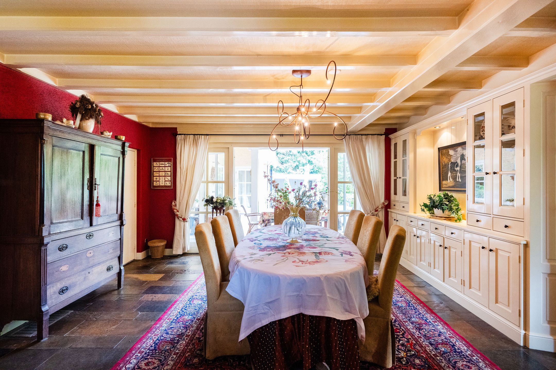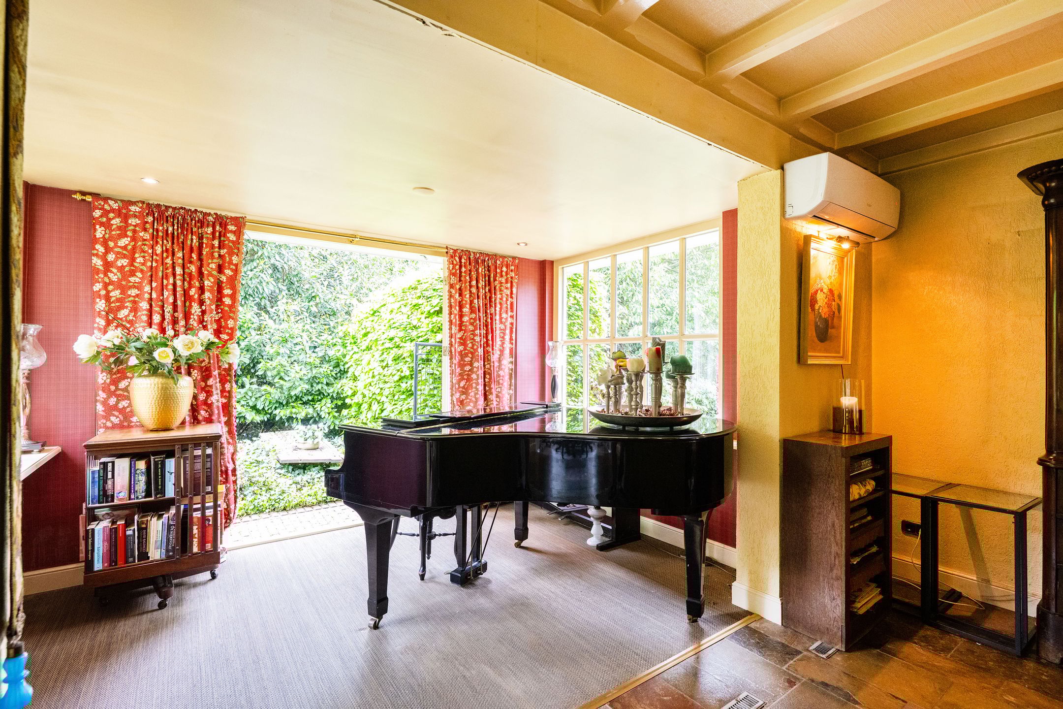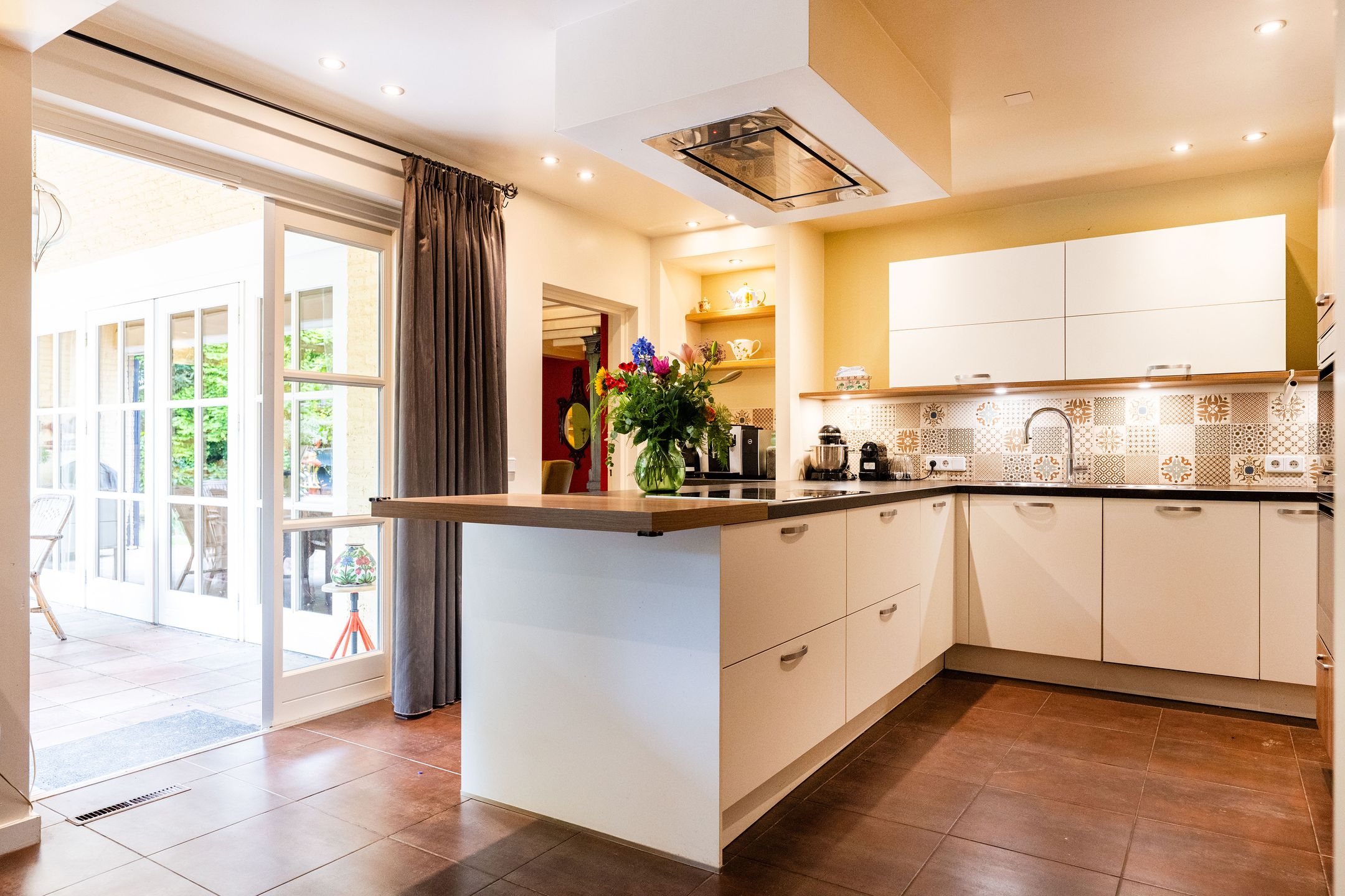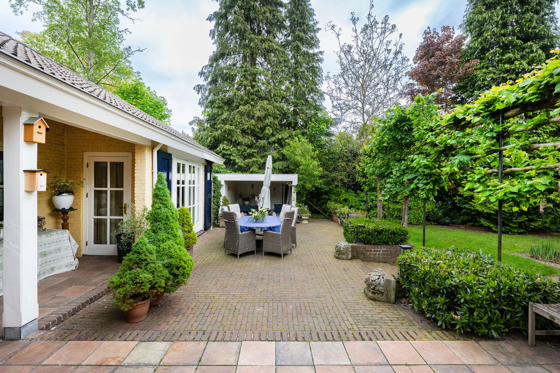 OASE IN HET GROEN Op een toplocatie in Kaatsheuvel, in de lommerrijke villawijk de Oude Omdraaier, met de Loonse en Drunense duinen op loopafstand bieden wij u deze, nagenoeg volledig aan het oog onttrokken, royale en markante vrijstaande semi-bungalow aan. Tal van gebruiksmogelijkheden zijn denkbaar bij dit pand, waaronder levensloopbestendig wonen enof wonen in combinatie met een praktijk aan huis. Een verborgen parel in het groen die uitstekend gesitueerd is ten opzichte van o.a. winkelvoorzieningen, scholen en bijvoorbeeld attractiepark de Efteling. Deze woning, met een gebruiksoppervlak van maar liefst 372 m2, heeft een gebruiksvriendelijke indeling waardoor wonen op de begane grond (met vier slaapkamers en drie badkamers) binnen handbereik ligt. Daarnaast zijn er op de eerste verdieping een speel- en slaapkamer, diverse zolders, is er beneden een kelder en bestaat de mogelijkheid voor kantoor aan huis, een mantelzorg-unit of, zoals nu het geval is: een B&B (vergunning aanwezig). Het huis wordt omgeven door veel groen en meerdere (deels overdekte) terrassen. Een royale carport biedt plaats aan 2 autos en fietsenberging, terwijl op het perceel voldoende parkeergelegenheid aanwezig is. TOEGANG Entree middels dubbele toegangsdeur tot een voorhal, waarin toegang is tot de meterkast, het stookhok en een multifunctionele ruimte die nu in gebruik is als B&B. Deze ruimte bevindt zich aan de voorzijde van de woning en, met een eigen entree en voorzien van een pantry en badkamer met douche en toilet is dit een aparte unit. Een ideale ruimte voor bijvoorbeeld een master-bedroom, maar ook uitermate geschikt voor inwonende ouders of studerende kinderen, au-pair, kantoor, etc. CENTRALE HAL Vanuit deze entree is de volgende ruimte te bereiken: een ruime hal met vide, garderobe, toiletruimte, fraaie opgang naar de verdieping en toegang tot de eetkamer en living. Vanuit de hal is er tevens een corridor naar de slaapkamervleugel, keuken, bijkeuken en kelder. LIVING Intieme sfeer met balkonplafond en gashaard. Via de tuingerichte erker zijn er openslaande deuren naar de tuin. Teven een verlaagd gedeelte waar nu een werkplek is gesitueerd met direct visueel contact naar de tuin. EETKAMER Royale eetkamer die in verbinding staat met de living, hal en een doorgang naar de keuken. Dubbele openslaande deuren geven toegang tot het (overdekte) terras en de tuin. De eetkamer is gescheiden van de living middels een op maat gemaakte, dubbelzijdige en-suite wand. WOONKEUKEN De centrale plek in huis, met genoeg ruimte om gezellig te tafelen, is de royale woonkeuken. De keuken is voorzien van een schiereiland met koffiehoek en is voorzien van diverse luxe inbouwapparatuur. Middels anderhalve openslaande deuren geeft de keuken toegang tot het (overdekte) terras en tuin. BIJKEUKEN Vanuit achterom n vanuit de corridorkeuken is de bijkeuken bereikbaar. Deze is voorzien van diverse lage keukenkasten en een hoge kastenwand, aanrechtkast met gootsteen en aansluitpunten t.b.v. was-, droog- en vriesapparatuur. SLAAPKAMERHAL Vanuit de centrale hal bereikt u middels de corridor de slaapkamervleugel op de begane grond die toegang geeft tot een drietal royale slaapkamers, waarvan n momenteel in gebruik is als kantoor. Deze heeft, net als de logeerkamer, een eigen wastafelplateau. DOUCHE De twee kamers hebben tevens de beschikking over een badkamer met toilet en douche in de slaapkamerhal. MASTER-BEDROOM De riante master-bedroom, met uitzicht op de tuin, is gesitueerd aan de achterzijde van het pand en voorzien van openslaande deuren die toegang bieden tot het privacy-biedende terras. Vanuit de master-bedroom is er een doorgang naar de badkamer en een ruime walk-in closet (voorheen vierde slaapkamer). BADKAMER Ruime badkamer welke is voorzien van een ligbad, dubbele wastafel en toilet. EERSTE VERDIEPING Hier bevinden zich vier royale ruimtes, waarvan twee ruimtes dienst doen als bergingzolder en twee ruimtes in gebruik waren als speelkamer en logeerruimte. KELDER Vanuit de centrale hal is de kelder bereikbaar die volledig vochtvrij is. Vanaf hier is het mogelijk de kruipruimte te bereiken die onder 90% van het huis aanwezig is. De buizen van de heteluchtverwarming zorgen voor een gelijkmatige warmteverdeling ondervloers, waardoor mede gezorgd wordt voor een vochtvrije omgeving. TUIN Het huis is aan alle zijden omgeven door een grote, onderhoudsvrije (deels bos-) tuin, die de privacy volledig waarborgt. Het terras aan de achterzijde ligt op het zuiden, maar door de perceelgrootte draait de zon volledig om het huis heen. Een sproei-installatie is aanwezig. De schuur en overkapping in de tuin wachten op een make-over door de nieuwe eigenaar. OPRIT Voor het huis ligt een halvemaans-oprit die toegang geeft tot het terrein, dat is voorzien van een dubbele elektrische poort. Op het eigen terrein is parkeergelegenheid voor meerdere autos. Op straat kan men vergunningsvrij parkeren. CARPORT De carport biedt ruimte aan twee autos en een kleiner compartiment aan diverse (brom-)fietsen. KORTOM EEN MARKANTE SEMI-BUNGALOW MET DIVERSE MOGELIJKHEDEN OP EEN UNIEKE LOCATIE TEMIDDEN IN HET GROEN! Algemeen: * Woonoppervlakte begane grond 319 m2 1e verdieping 53 m2 * De woning wordt verwarmd middels heteluchtverwarming (Brink 2007, gerenoveerd in 2013). * Gelijkvloers wonen, levensloopwoning * Het gehele perceel is omheind * Familiehuis met basisschool, kinderopvang en BSO op loopafstand * Energielabel C * Voorzien van spouwmuurisolatie, dakisolatie (deels 1977, deels 2024) en isolerende beglazing, vloerisolatie eerste verdieping * De vierde slaapkamer is tevens een bijzonder gastenverblijf, nu in gebruik als B&B, maar ook ideaal voor beroep of kantoor aan huis door eigen entree en eigen voorzieningen. Afsluitbaar van woonhuis met tussendeur. * Oppervlakte tuin biedt mogelijkheden voor zwembadpoolhouse, mantelzorgvoorziening, tiny house, o.i.d. * Eerste verdieping beschikt over warmkoud water, geen directe verwarming. * Electrische poort met code en