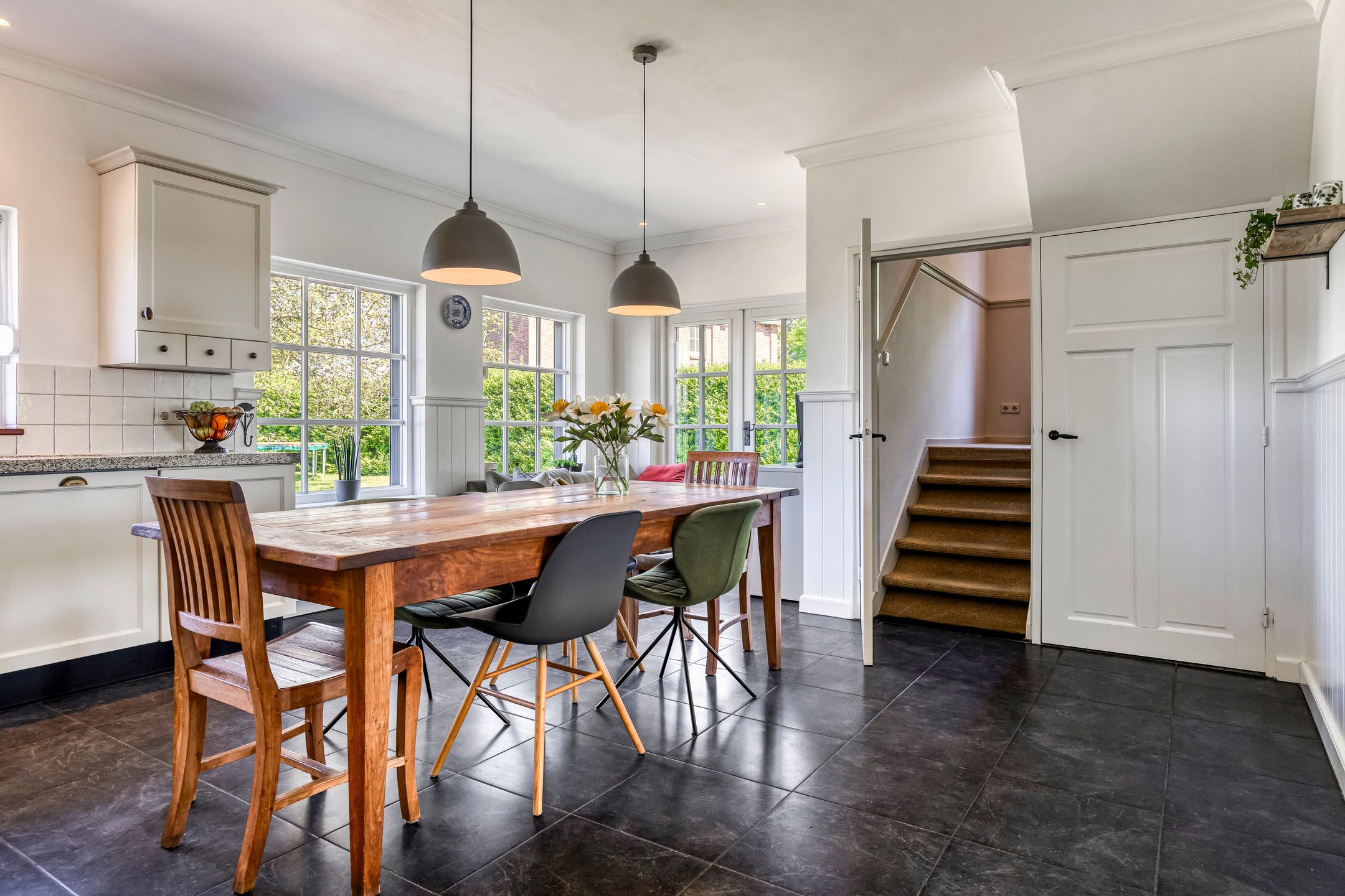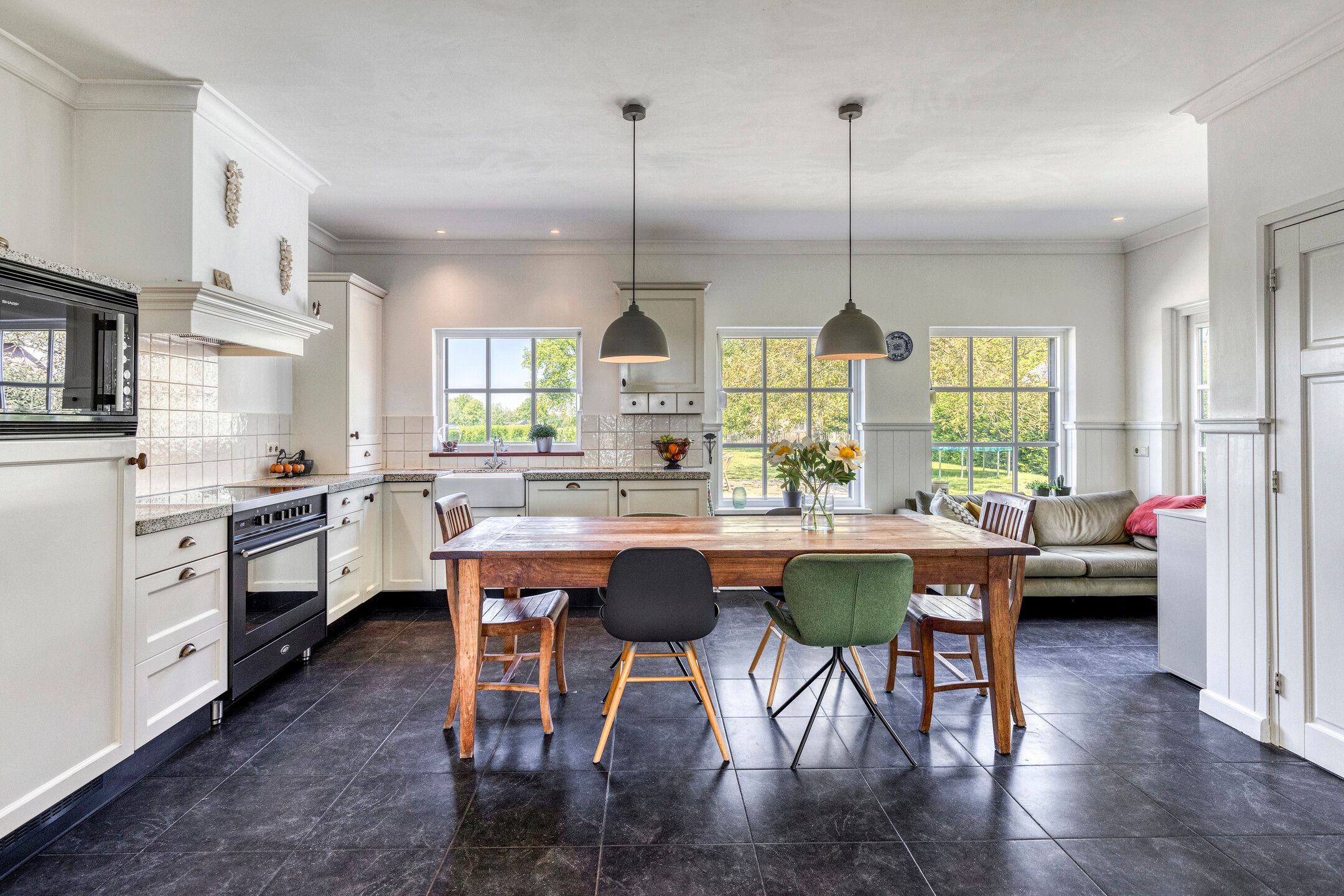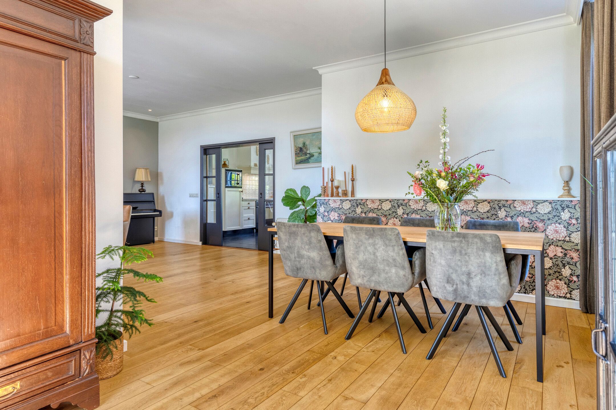 Aan de rustige, groene Zandstraat, in het buitengebied van Berlicum, ligt deze charmante en royale woonboerderij die het beste van landelijk wonen combineert met hedendaags wooncomfort. De woning heeft een sfeervolle gevel deels begroeid met klimop en karakteristieke details zoals houten luiken en originele stalramen. Prachtig onderhouden met omliggende tuin en gronden en een eigen oprit. Deze woning uit 1910 biedt een werkelijk idyllische leefomgeving. Deze woonboerderij beslaat 251 vierkante meter aan woonoppervlakte verdeeld over 14 kamers, waaronder 6 slaapkamers. Met een inhoud van 1881 kubieke meter biedt de woning genoeg ruimte voor een groot gezin, seniore bewoners of investeerders op zoek naar een bijzonder pand met veelzijdige mogelijkheden. Onderhoud aan zowel de binnen- als de buitenkant is goed, het pand heeft een energielabel D en het meest bijzondere is dat op het achterhuis (voormalige koeienstal) al een woonbestemming zit. De woonboerderij is gelegen op een perceel van circa 2.550 m2. Woongedeelte Via de entree stapt u binnen in de lichte woonkamer met eetgedeelte. Deze ruimte ademt sfeer en biedt uitzicht op het groen rondom. In deze ruimte ligt een warme houten vloer en de wanden en het plafond zijn strak afgewerkt met sierlijsten. Centraal in de ruimte staat een sfeervolle gashaard. Aangrenzend aan het eetgedeelte bevindt zich een werkruimte ideaal voor werken aan huis. Deze werkkamer is ook vanuit de achterkant van de woning bereikbaar. Leefkeuken opkamer - kelder Vanuit de woonkamer is de royale, landelijke leefkeuken bereikbaar via en-suitedeuren. Een prettige ruimte waar koken en samenzijn centraal staan. De keuken heeft een donkere tegelvloer en de wanden zijn voorzien van houten lambrisering en strakke afwerking met sierlijsten. De keukenindeling is hoekopgesteld en beschikt over een koelkast, keramische spoelbak, vaatwasser, combi-magnetron, afzuigkap en een Boretti fornuis (inductie) met oven. Er is voldoende ruimte voor een ruime eettafel met stoelen. Vanuit de keuken is zowel de hoger gelegen opkamer als de kelder onder de opkamer bereikbaar. De kelderruimte grenzend aan de keuken is ideaal voor voorraadopslag en extra bergruimte. Via openslaande deuren heeft u toegang tot de achtertuin. Stalgedeelte De linkerzijde van de woonboerderij bereikt u op meerdere manieren, vanuit dubbele deuren aan de voorzijde, binnen vanuit de keuken of achterom via een van de achterdeuren. Vanuit de lange gang zijn onder andere het toilet, een praktische was- en technische ruimte, een douche met wastafel en het stalgedeelte bereikbaar. Het voormalige stalgedeelte biedt volop mogelijkheden voor wie op zoek is naar ruimte en flexibiliteit. De ruimte is voorzien van originele gebinten, stalramen en authentieke voederbakken en is momenteel in gebruik als opslag en werkruimte, maar biedt volop perspectief voor uiteenlopende invullingen denk aan een atelier, werkplaats of hobbyruimte. De stal is ruim van opzet en beschikt over een robuust betonnen vloeroppervlak, goede daglichttoetreding en een eigen toegang. En zoals al gezegd: de ruimte is al voorbestemd om te worden omgebouwd tot een prachtige separate woning. Eerste verdieping U bereikt de bovenverdieping via de opkamer. Op de verdieping bevinden zich maar liefst zes slaapkamers, een badkamer, een (speel)kamer, een separaat toilet en een open zolderruimte boven het stalgedeelte. Dit alles wordt verbonden door een overloop met hoogteverschil. Op de overloop bevindt zich een handige inloopkast. In de slaapkamers en op de overloop ligt een zeilvloer met houtlook. Alle slaapkamers hebben een vaste kast of bergruimte in het knieschot en zijn voorzien van houten dakraam met dubbel glas en verduistering (behalve slaapkamer rechtsachter, deze heeft een houten kozijn met enkel glas). Vanuit de slaapkamer aan de linkervoorzijde is er toegang tot het zoldergedeelte. Dit gedeelte ligt boven de stal en is zeer ruim. Er is een oud hooiluik naar de ondergelegen stal. Badkamer De badkamer ligt aan de voorzijde van de boerderij en is volledig betegeld, goed onderhouden en ziet er keurig uit. Het houten dakraam met dubbel glas (Velux) met verduistering zorgt voor licht in de badkamer. De badkamer is voorzien van een design radiator, mechanische ventilatie, een inloopdouche, ligbad en twee wastafels met planchetten. Er is in de badkamer een handige waskoker, de was komt meteen in de onder de badkamer gelegen wasruimte terecht, ideaal! Buitenleven Aan de voorzijde beschikt de woning over een royale oprit met ruimte voor circa vijf auto's, omzoomd door een keurig aangelegde voortuin met volwassen beplanting. Voor op het perceel staat een vrijstaande, dubbele garage. Het pand biedt voldoende parkeermogelijkheden op eigen terrein, zodat u zich geen zorgen hoeft te maken over het vinden van een parkeerplaats. Via de oprit is ook de achterzijde bereikbaar. Wat gelijk opvalt aan de achterzijde is het weidse uitzicht over de landerijen. De achtertuin heeft twee terrassen, een groot gazon en er staan volwassen bomen een ideale plek om te ontspannen, tuinieren of genieten van lange zomeravonden. Bijgebouw Voor autofanaten is er een vrijstaande stenen garage, compleet met elektriciteit en een royale oppervlakte van 44 vierkante meter. Samengevat Dit huis biedt het beste van twee werelden - rust en ontspanning in het landelijke buitengebied, terwijl u zich toch dicht bij stedelijke voorzieningen bevindt. Berlicum is een charmant Brabants dorp met een levendige gemeenschap en een rijk verenigingsleven. Profiteer van lokale winkels, scholen en openbaar vervoer, allemaal op korte afstand van de woning. De perceellocatie is zeker een traktatie voor liefhebbers van rust en natuur. - Mechanisch ventilatiesysteem, rolluiken en een dakraam - Achterhuis (overige niet-woonruimte) van 257 vierkante meter - Achterhuis is al bestemd als woning - Landelijke omgeving - Ruim aantal (slaap)kamers - Goed onderhouden Wilt u zelf de sfeer en het buitenleven van deze karaktervolle