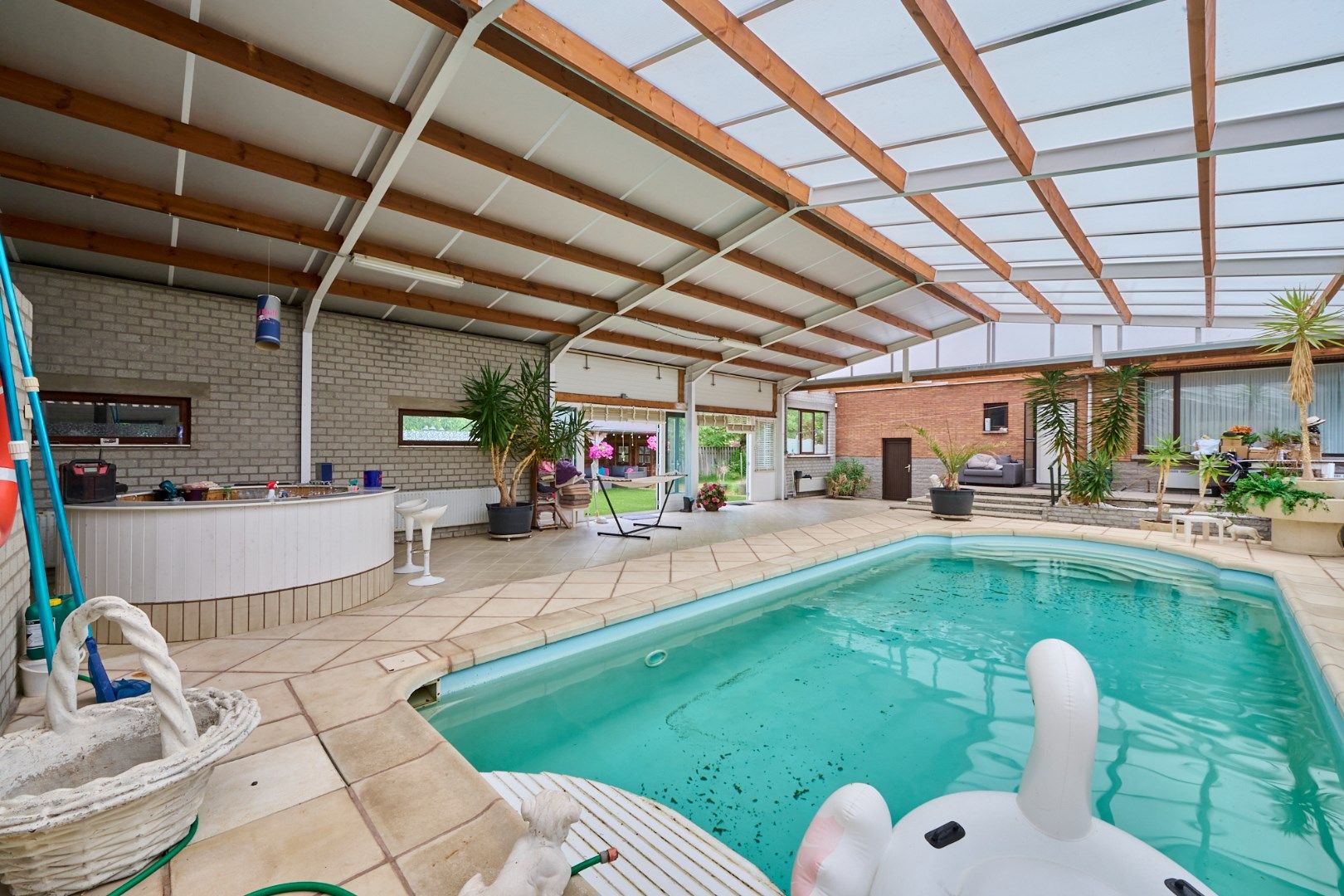 Instapklare, landelijke woning (216 m2) met een gezellige leefruimte, 3 slaapkamers en een badkamer met bad en douche. Gelijkvloers beschikt de woning over een ruimte van 85 m2 dat bestaat uit een inpandige garage, berging en wasplaats. Het uitzonderlijk ruime perceel heeft een oppervlakte van 1800 m2 en bestaat vooraan uit een tuin met ruime inrit en zijdelings is er een mooi terras voorzien waarvan een gedeelte overdekt is. Dit kijkt uit op een overdekt zwembad dat gelegen is achter de woning waarvan dus het gehele jaar gebruik kan gemaakt worden. Helemaal achteraan is er een groot werkhuis aanwezig met aparte inrit via de zijkant van het perceel. Kortom een woning met veel ruimte en mogelijkheden gelegen nabij de Nederlandse grens! Bij serieuze interesse in de woning, is er een mogelijkheid om een weekendje te gaan wonen op proef, om de rust te ervaren! INDELING WONING: Gelijkvloers: wasplaats, kelderberging, garage Verdieping 0,5: inkomhal, woonkamer, eetkamer, keuken Verdieping 1: nachthal, toilet, 3 slaapkamers, badkamer met toilet BIJZONDERHEDEN: - Geen renovatieverplichting; - airco voorzien; - zeer ruim perceel; - overdekt zwembad; - hal met inrit achteraan ; - nabij Nederlandse grens;
