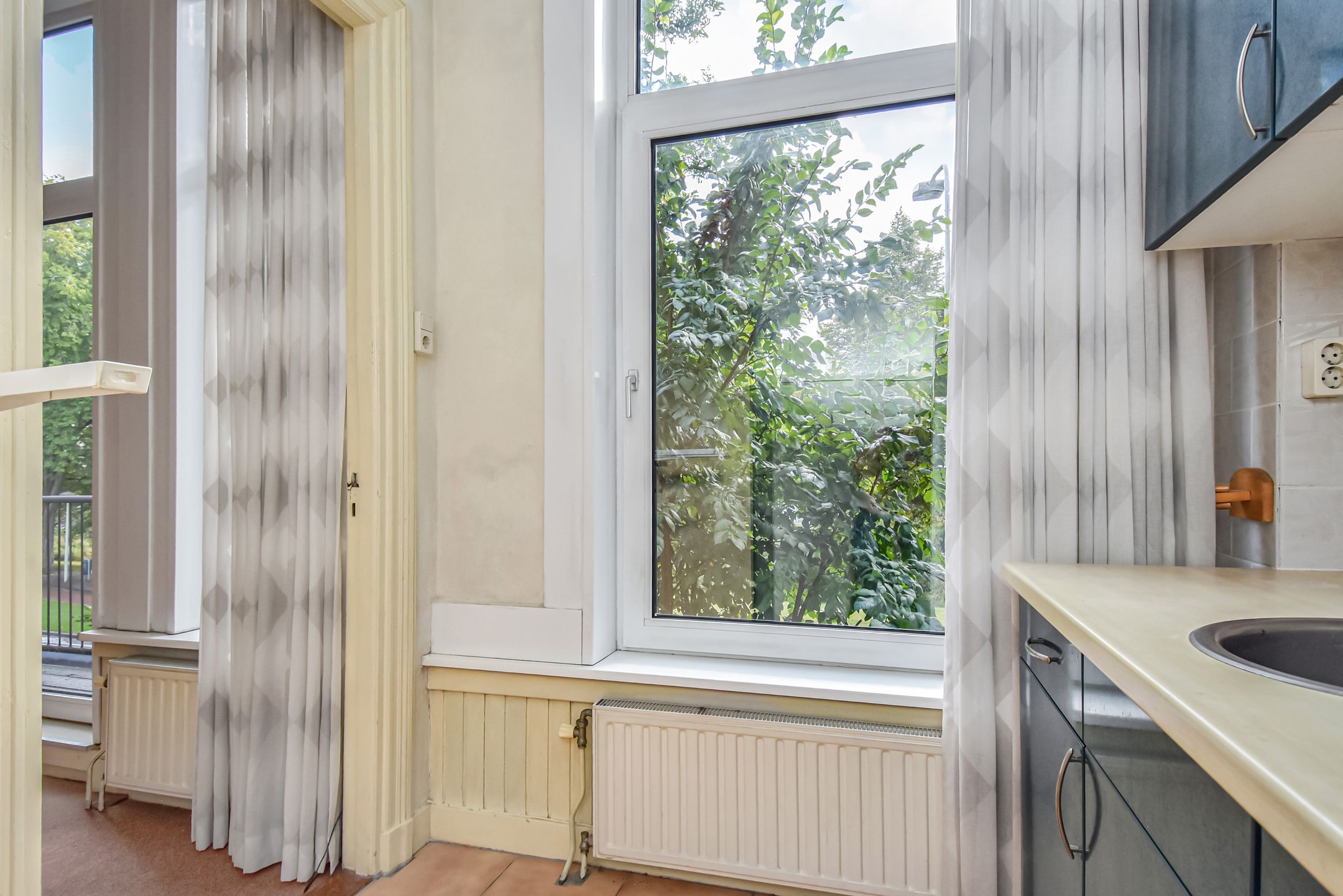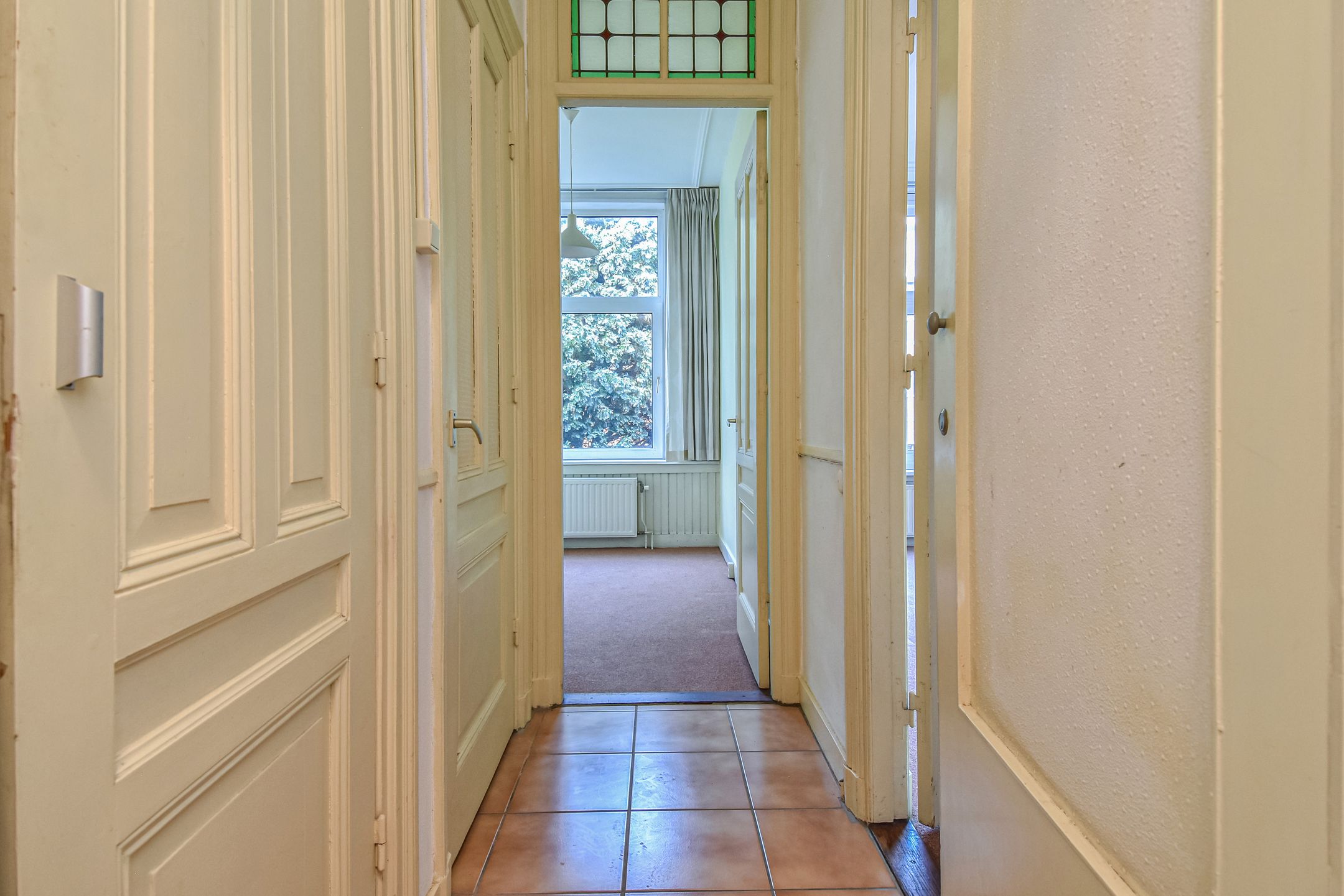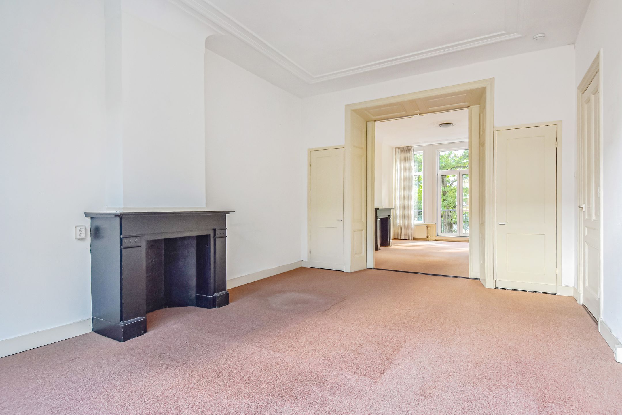 (see for English below) In het geliefde Bezuidenhout gelegen riant herenhuis met een woonoppervlakte van 216 m2 en welke voorzien is van een ruime woon-eetkamer, een ruime voortuin en riante achtertuin op het noordwesten, de mogelijkheid om ca. 6 slaapkamer en 2 badkamers te realiseren. De woning is thans verdeeld in 3 appartementsrechten. Indien gewenst is er een mogelijkheid tot aanbrengen van een dakterras, na het verkrijgen van de benodigde toestemmingen en vergunningen. De woning is bijzonder centraal gelegen, midden in het geliefde Bezuidenhout, op steenworp afstand van de gezellige Theresiastraat. Deze levendige winkelstraat biedt een ruime keuze aan eetgelegenheden en horecazaken. Op loopafstand bevinden zich het Haagse Bos, het Spaarwaterveld en Park Vlaskamp, waardoor er volop mogelijkheden zijn voor ontspanning en recreatie in de natuur. Voor de dagelijkse boodschappen zijn diverse supermarkten, een bakker, groenteboer en viswinkel eenvoudig te voet bereikbaar. Ook sportfaciliteiten zoals zwembad Overbosch en verschillende sportverenigingen liggen in de directe omgeving. Openbaar vervoer is uitstekend geregeld: station Laan van NOI bevindt zich op slechts vijf minuten lopen en Den Haag Centraal is binnen tien minuten bereikbaar. Achter het Centraal Station ligt het bruisende stadscentrum van Den Haag met een breed aanbod aan winkels, warenhuizen, uitgaansgelegenheden, theaters en bioscopen. Reis je met de auto? De ligging ten opzichte van de snelwegen is ideaal: via de A4 en A12 ben je snel onderweg richting Amsterdam, Rotterdam of andere steden. Bovendien is het strand van Scheveningen met de fiets in ongeveer 20 minuten te bereiken. Indeling: Ruime voortuin met toegang tot de woning. Entree woning met vestibule en meterkast. Gang waarvandaan alle ruimtes op de begane grond te bereiken zijn. De zitkamer is aan de voorzijde gesitueerd en vanuit hier heeft men uitzicht op een plantsoen. De kamers zijn voorzien van hoge plafonds van maar liefst 3,17 m en zijn voorzien van een sierlijke omlijsting. Door de hoge ramen is er veel lichtinval. Een schouw is aanwezig maar thans niet bruikbaar. Tussen de voormalige zitkamer en eetkamer zit nog een suiteseparatie met vaste kasten maar is thans gescheiden door een muur die, indien gewenst, eenvoudig te verwijderen is om de separatie weer in oude staat te herstellen. Aan de achterzijde is de eetkamer welk laatstelijk als slaapkamer gebruikt is. Deze kamer grenst aan de ruime achtertuin van ca. 77 m2 en is gelegen op het noordwesten. De achtertuin is te betreden via een schuifpui. Ook hier zijn hoge ramen welke tot de grond komen waardoor het een geheel lijkt met de achtertuin en er veel lichtinval is. In beide kamers is nog een schouw aanwezig maar zijn thans niet bruikbaar. De keuken is ook aan de achterzijde gesitueerd en geeft ook toegang tot de achtertuin. In de gang is thans een doucheruimte met wastafel en toilet en toegang tot de kelderruimte van ca. 9 m2. Vanuit de hal toegang tot de 1e verdieping. 1e verdieping: Overloop, de woon-eetkamer met suiteseparatie met vaste kasten. Beide kamers zijn voorzien van een schouw welke momenteel niet bruikbaar zijn. Aan de voorzijde is een balkon welke uitzicht geeft op het plantsoen. Een keuken aan de voorzijde welke te bereiken is via de voorkamer. Aan de achterzijde is een slaapkamer met wastafel. Op de overloop zijn een douche en een separaat toilet met fonteintje. Deze verdieping is naar wens in te delen in bijvoorbeeld 3 slaapkamers en een badkamer. Trap naar de 2e verdieping. 2e verdieping: Overloop met daklicht en vaste kast. Deze verdieping is thans ingedeeld met een woon-eetkamer, een keuken, een slaapkamer en badkamer. De woon-eetkamer is thans voorzien van een tussenwand met raam, een vaste kast en een schouw welke thans niet bruikbaar is. Aan de voorzijde nog een slaapkamer met wastafel. Een keuken aan de achterzijde. Een badkamer vanaf de overloop te bereiken en voorzien van hangend toilet, fonteintje en douche. Deze verdieping is naar wens in te delen in bijvoorbeeld 3 slaapkamers en een tweede badkamer. Bijzonderheden: - Gelegen op eigen grond - Woonoppervlakte 216 m2 - Kelderruimte van 8,8 m2 - Voortuin en achtertuin - Energielabel: de begane grond en 1e verdieping hebben energielabel C, de 2e verdieping heeft energielabel E - Voorzien van kunststof kozijnen voorzien van dubbele beglazing en draai-kiepramen - 3 CVs: begane grond: Remeha Avanta, bouwjaar 2014, 1e verdieping: (VHR) Vaillant, bouwjaar 2007, 2e verdieping: (VHR) Vaillant, bouwjaar 2009 - Originele kenmerken nog aanwezig, zoals paneeldeuren en suiteseparatie - Indien gewenst is er een mogelijkheid tot aanbrengen van een dakterras, na het verkrijgen van de benodigde toestemmingen en vergunningen. - Zie de plattegronden voor de maatvoering - Oplevering kan snel - De woning is thans verdeeld in 3 appartementsrechten - Er is geen lijst van zaken, de woning zal worden opgeleverd as is - In de NVM koopovereenkomst zullen een niet-bewoners-, een materialen- en een ouderdomsclausule worden opgenomen ************************************************************************************* Located in the desirable Bezuidenhout neighborhood, this spacious mansion offers 216 m2 of living space and features a generous livingdining room, a large front garden, and a spacious northwest-facing back garden. It also offers the possibility of creating approximately six bedrooms and two bathrooms. The house is currently divided into three apartments. This apartment is exceptionally centrally located in the heart of the popular Bezuidenhout neighborhood, just a stone's throw from the lively Theresiastraat. This lively shopping street offers a wide selection of restaurants and cafes. The Haagse Bos, Spaarwaterveld, and Park Vlaskamp are within walking distance, offering ample opportunities for relaxation and recreation in nature. For daily shopping, various supermarkets, a bakery, greengrocer, and fishmonger are on walking distance. Sports f