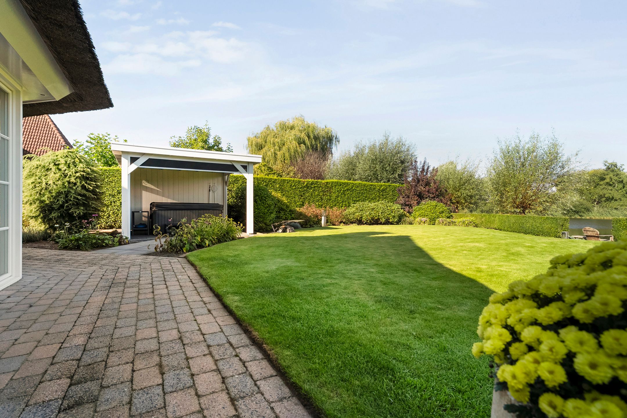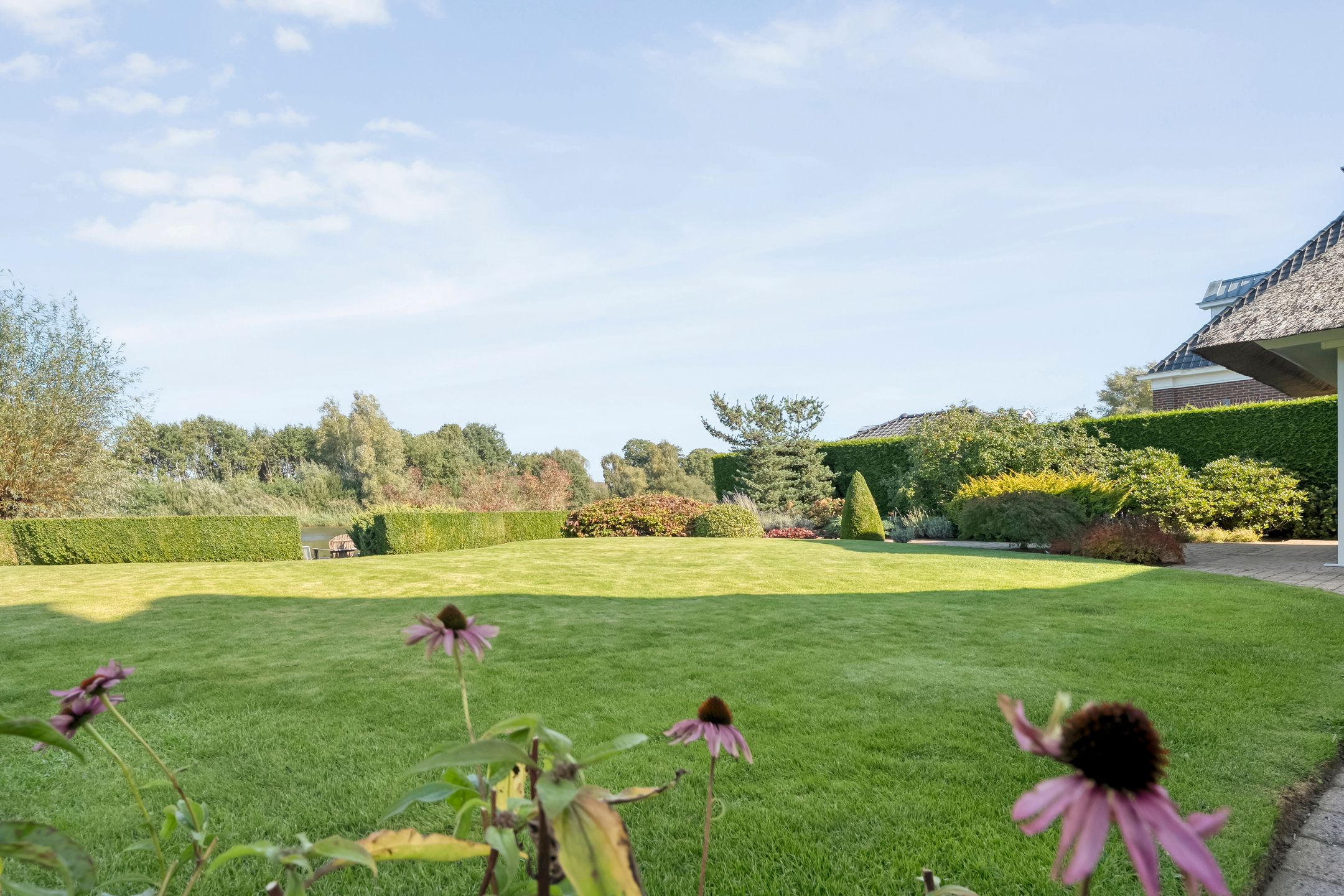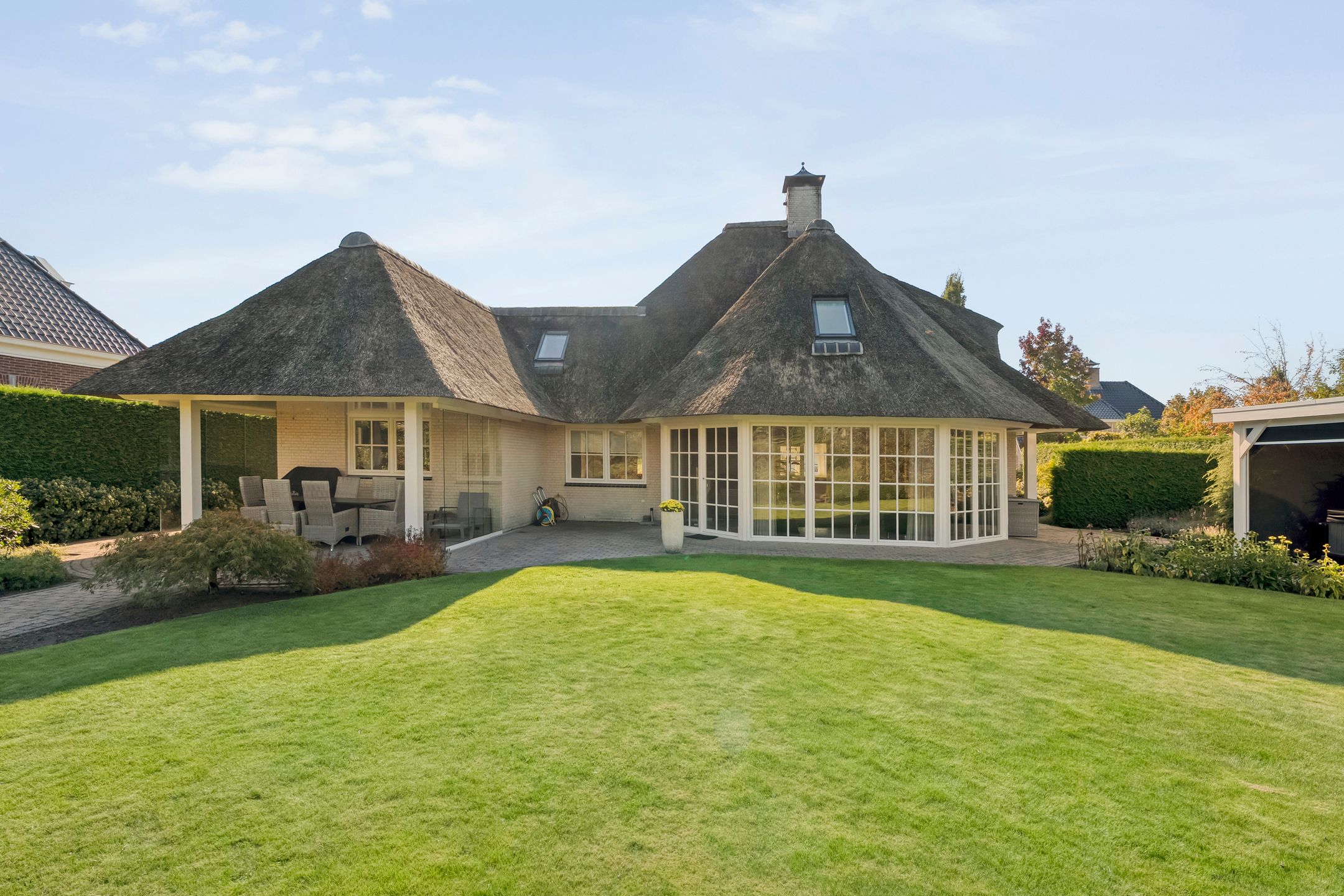 Aan de rand van de prachtige wijk Klinkenvlier in Coevorden ligt deze vrijstaande rietgedekte woonvilla, een woning die direct indruk maakt door haar stijlvolle uitstraling, unieke ligging en royale ruimte. Hier woon je op een werkelijk schitterende plek, direct aan het water van de Klinkenvlierse plassen, waar elke dag begint en eindigt met een uitzicht dat nooit verveelt. De villa, gebouwd in 2002, verkeert in uitstekende staat van onderhoud en is volledig gesoleerd. Samen met het energielabel B biedt dit een perfecte combinatie van comfort, duurzaamheid en luxe. Met een woonoppervlakte van maar liefst 245 vierkante meter is deze woning ontworpen voor royaal wonen. De ruime woonkamer met grote raampartijen biedt een panoramisch uitzicht over het water en de fraai aangelegde tuin, terwijl de woonkeuken het hart van het huis vormt; een uitnodigende plek om samen te koken, te eten en te genieten. Op de benedenverdieping zijn de keuken en woonkamer volledig voorzien van dimbare inbouwspots, wat zorgt voor een warme en sfeervolle ambiance op elk moment van de dag. Dankzij de aanwezigheid van een slaapkamer en badkamer op de begane grond is de villa ook levensloopbestendig, ideaal voor wie gelijkvloers wil wonen zonder in te leveren op stijl en comfort. Daarnaast is er een extra kamer die zich uitstekend leent als kantoor, hobbyruimte of tweede slaapkamer. Op de verdieping bevinden zich drie royale slaapkamers en een tweede, luxe badkamer, compleet met ligbad en een sauna. De master bedroom beschikt bovendien over een inloopkast en heeft directe toegang tot de badkamer, wat zorgt voor een gevoel van hotelwaardige luxe en privacy. De buitenruimte is een waar paradijs. De ruime tuin rondom de woning biedt meerdere zonneterrassen, omgeven door groen en met directe toegang tot het water. Aan de waterzijde bevindt zich een steiger, ideaal voor het aanleggen van een (fluister)bootje of simpelweg om te genieten van het kabbelende water. In de tuin is bovendien een jacuzzi geplaatst, perfect gepositioneerd om in alle privacy, al bubbelend, te genieten van de rust, het uitzicht en de ondergaande zon boven de Klinkenvlierse plassen. Aan de achterzijde van de garage is een stijlvolle overkapping gerealiseerd, een heerlijke plek om te ontspannen, compleet met ingebouwde speakers, waar zomeravonden eindeloos mogen duren. Het perceel van 1.159 vierkante meter biedt optimale privacy en een weldadig gevoel van vrijheid. De garage zelf is ruim van opzet, volledig gesoleerd en voorzien van een elektrische deur, met voldoende plaats voor auto, fietsen en hobbys. De wijk Klinkenvlier staat bekend om haar groene, rustige karakter, brede lanen en ligging aan het water. Toch woon je hier op slechts enkele minuten van het centrum van Coevorden, met alle voorzieningen binnen handbereik; van winkels en scholen tot restaurants, sportfaciliteiten en het station. Deze villa is niet zomaar een huis, maar een exclusieve woonbeleving. Een samensmelting van luxe, comfort en natuur, waar binnen en buiten naadloos in elkaar overgaan en elke dag aanvoelt als een klein beetje vakantie aan eigen water. INDELING: Kelder: Bergruimte (waterdicht). Begane grond: Entree met toilet en trap naar de eerste verdieping. Hal naar de keuken uit 2023 voorzien van inbouwapparatuur; elektrische kookplaat, afzuiging, koelkast, koffiezetapparaat, Quooker Cube, wijnkoelkast, vaatwasser en veel werkblad. Openslaande deuren naar overkapping in de tuin. Woonkamer met grote raampartijen en openslaande deuren richting de tuin en het water. Ruimte welke geschikt is als kantoor, hobbyruimte of slaapkamer. Slaapkamer met badkamer voorzien van inloopdouche, toilet en wastafel. Garage met overkapping. Eerste verdieping: Overloop. Drie ruime slaapkamers. Wasruimte. Meerdere bergruimtes. Badkamer voorzien van ligbad, inloopdouche, sauna, toilet en dubbel wastafelmeubel. Zolder: Bergruimte. Extra informatie: - energielabel B; - tuin grenst aan de Klinkenvlierse plassen; - plassen toegestaan voor 1 pk bootjes; - begane grond beschikt over vloerverwarming i.c.m. heteluchtverwarming - voorzien van alarminstallatie; - tuin voorzien van bronwaterpunt; - het huidige meubilair is ter overname.