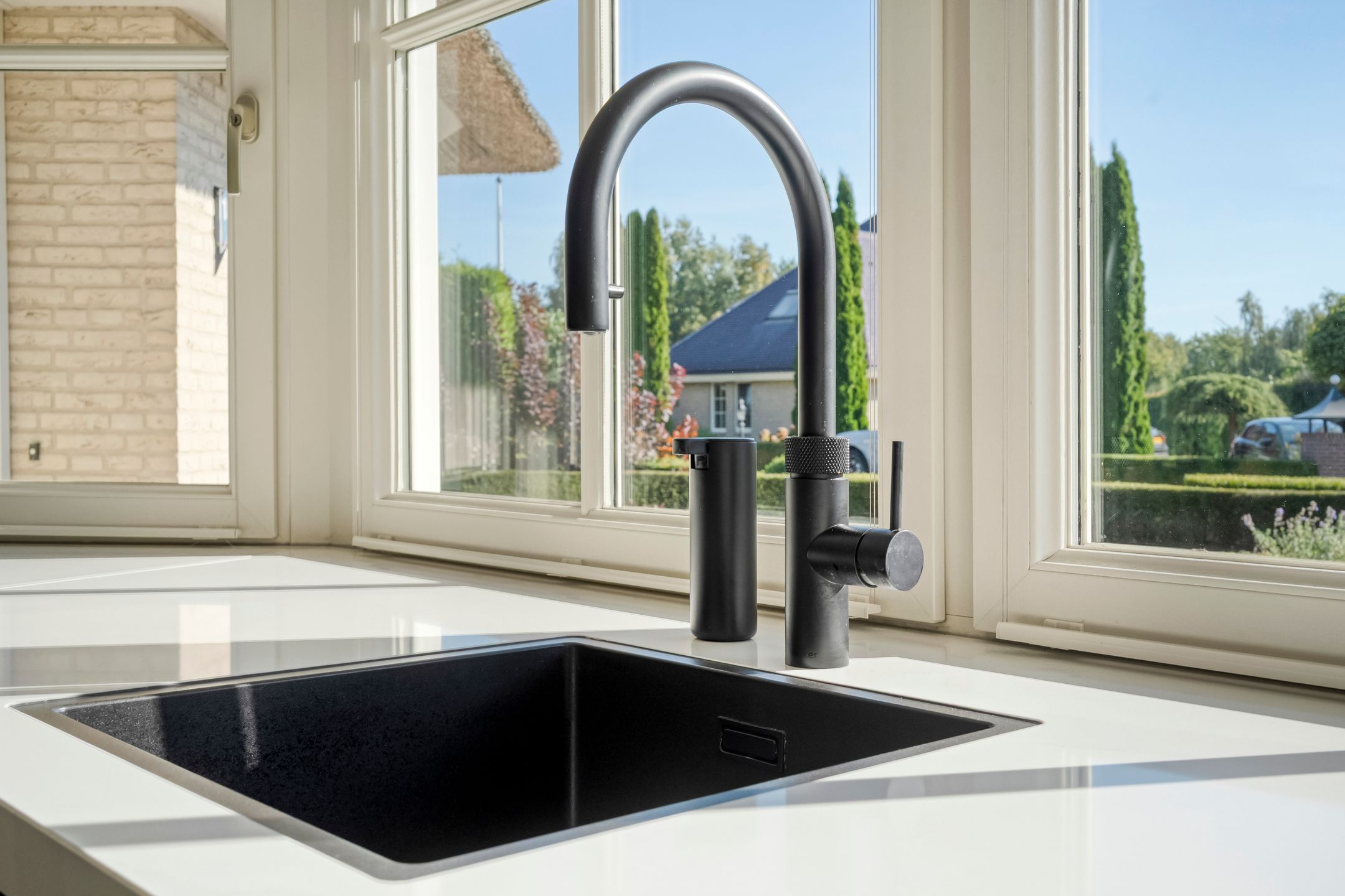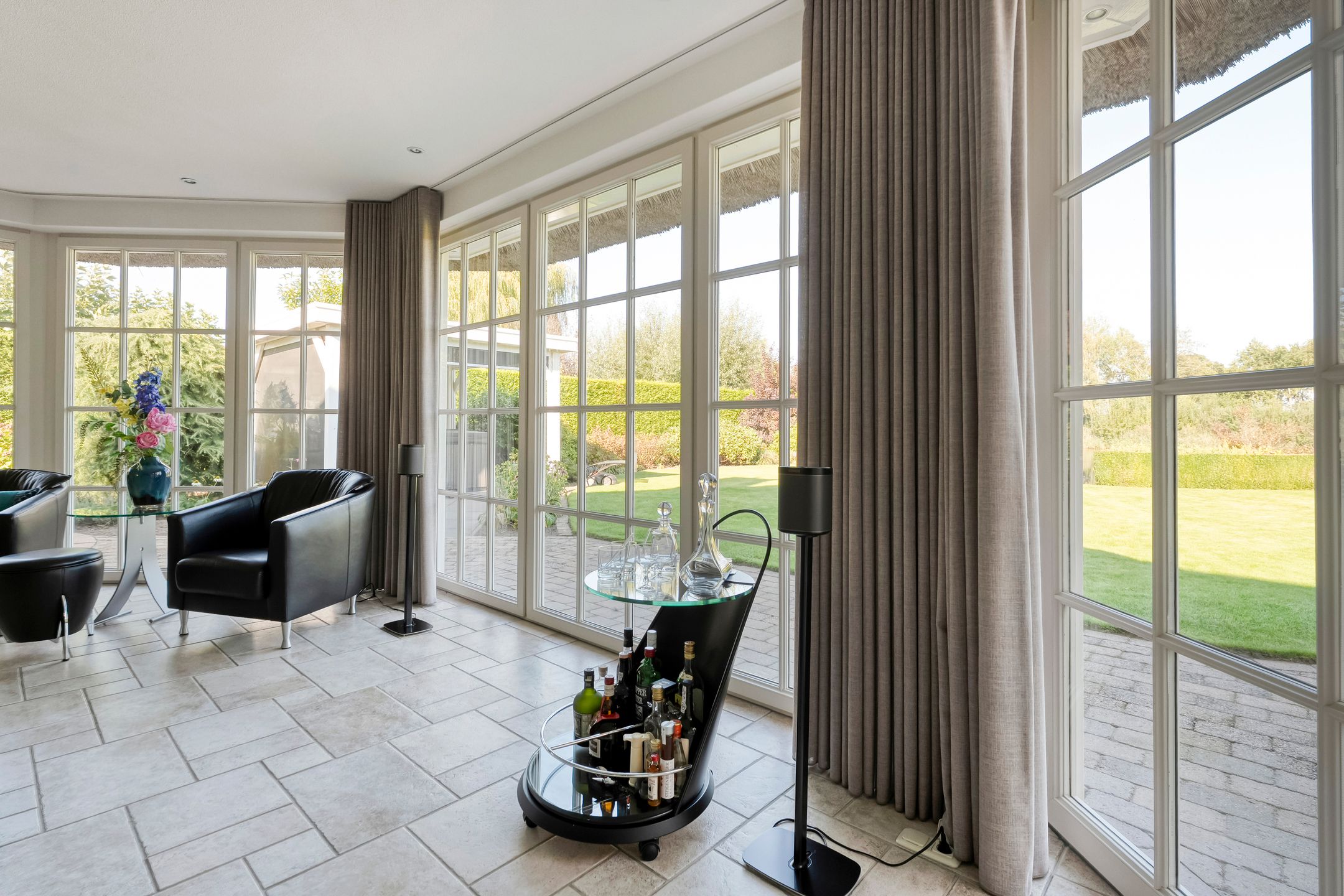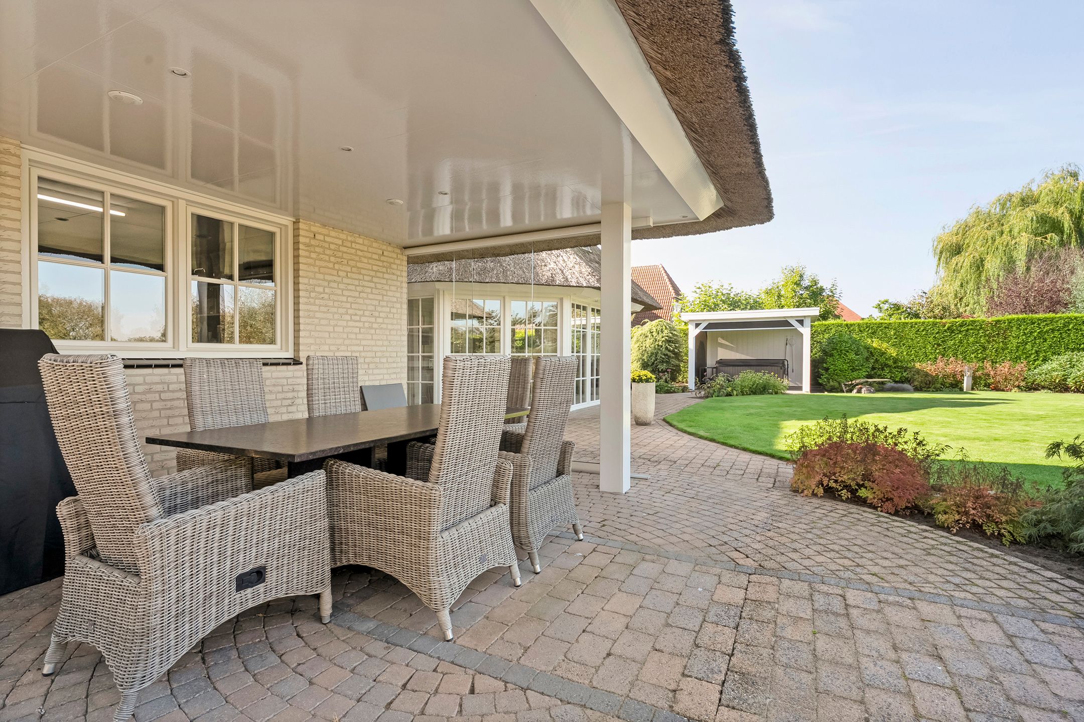 Aan de rand van de prachtige wijk Klinkenvlier in Coevorden ligt deze vrijstaande rietgedekte woonvilla, een woning die direct indruk maakt door haar stijlvolle uitstraling, unieke ligging en royale ruimte. Hier woon je op een werkelijk schitterende plek, direct aan het water van de Klinkenvlierse plassen, waar elke dag begint en eindigt met een uitzicht dat nooit verveelt. De villa, gebouwd in 2002, verkeert in uitstekende staat van onderhoud en is volledig gesoleerd. Samen met het energielabel B biedt dit een perfecte combinatie van comfort, duurzaamheid en luxe. Met een woonoppervlakte van maar liefst 245 vierkante meter is deze woning ontworpen voor royaal wonen. De ruime woonkamer met grote raampartijen biedt een panoramisch uitzicht over het water en de fraai aangelegde tuin, terwijl de woonkeuken het hart van het huis vormt; een uitnodigende plek om samen te koken, te eten en te genieten. Op de benedenverdieping zijn de keuken en woonkamer volledig voorzien van dimbare inbouwspots, wat zorgt voor een warme en sfeervolle ambiance op elk moment van de dag. Dankzij de aanwezigheid van een slaapkamer en badkamer op de begane grond is de villa ook levensloopbestendig, ideaal voor wie gelijkvloers wil wonen zonder in te leveren op stijl en comfort. Daarnaast is er een extra kamer die zich uitstekend leent als kantoor, hobbyruimte of tweede slaapkamer. Op de verdieping bevinden zich drie royale slaapkamers en een tweede, luxe badkamer, compleet met ligbad en een sauna. De master bedroom beschikt bovendien over een inloopkast en heeft directe toegang tot de badkamer, wat zorgt voor een gevoel van hotelwaardige luxe en privacy. De buitenruimte is een waar paradijs. De ruime tuin rondom de woning biedt meerdere zonneterrassen, omgeven door groen en met directe toegang tot het water. Aan de waterzijde bevindt zich een steiger, ideaal voor het aanleggen van een (fluister)bootje of simpelweg om te genieten van het kabbelende water. In de tuin is bovendien een jacuzzi geplaatst, perfect gepositioneerd om in alle privacy, al bubbelend, te genieten van de rust, het uitzicht en de ondergaande zon boven de Klinkenvlierse plassen. Aan de achterzijde van de garage is een stijlvolle overkapping gerealiseerd, een heerlijke plek om te ontspannen, compleet met ingebouwde speakers, waar zomeravonden eindeloos mogen duren. Het perceel van 1.159 vierkante meter biedt optimale privacy en een weldadig gevoel van vrijheid. De garage zelf is ruim van opzet, volledig gesoleerd en voorzien van een elektrische deur, met voldoende plaats voor auto, fietsen en hobbys. De wijk Klinkenvlier staat bekend om haar groene, rustige karakter, brede lanen en ligging aan het water. Toch woon je hier op slechts enkele minuten van het centrum van Coevorden, met alle voorzieningen binnen handbereik; van winkels en scholen tot restaurants, sportfaciliteiten en het station. Deze villa is niet zomaar een huis, maar een exclusieve woonbeleving. Een samensmelting van luxe, comfort en natuur, waar binnen en buiten naadloos in elkaar overgaan en elke dag aanvoelt als een klein beetje vakantie aan eigen water. INDELING: Kelder: Bergruimte (waterdicht). Begane grond: Entree met toilet en trap naar de eerste verdieping. Hal naar de keuken uit 2023 voorzien van inbouwapparatuur; elektrische kookplaat, afzuiging, koelkast, koffiezetapparaat, Quooker Cube, wijnkoelkast, vaatwasser en veel werkblad. Openslaande deuren naar overkapping in de tuin. Woonkamer met grote raampartijen en openslaande deuren richting de tuin en het water. Ruimte welke geschikt is als kantoor, hobbyruimte of slaapkamer. Slaapkamer met badkamer voorzien van inloopdouche, toilet en wastafel. Garage met overkapping. Eerste verdieping: Overloop. Drie ruime slaapkamers. Wasruimte. Meerdere bergruimtes. Badkamer voorzien van ligbad, inloopdouche, sauna, toilet en dubbel wastafelmeubel. Zolder: Bergruimte. Extra informatie: - energielabel B; - tuin grenst aan de Klinkenvlierse plassen; - plassen toegestaan voor 1 pk bootjes; - begane grond beschikt over vloerverwarming i.c.m. heteluchtverwarming - voorzien van alarminstallatie; - tuin voorzien van bronwaterpunt; - het huidige meubilair is ter overname.