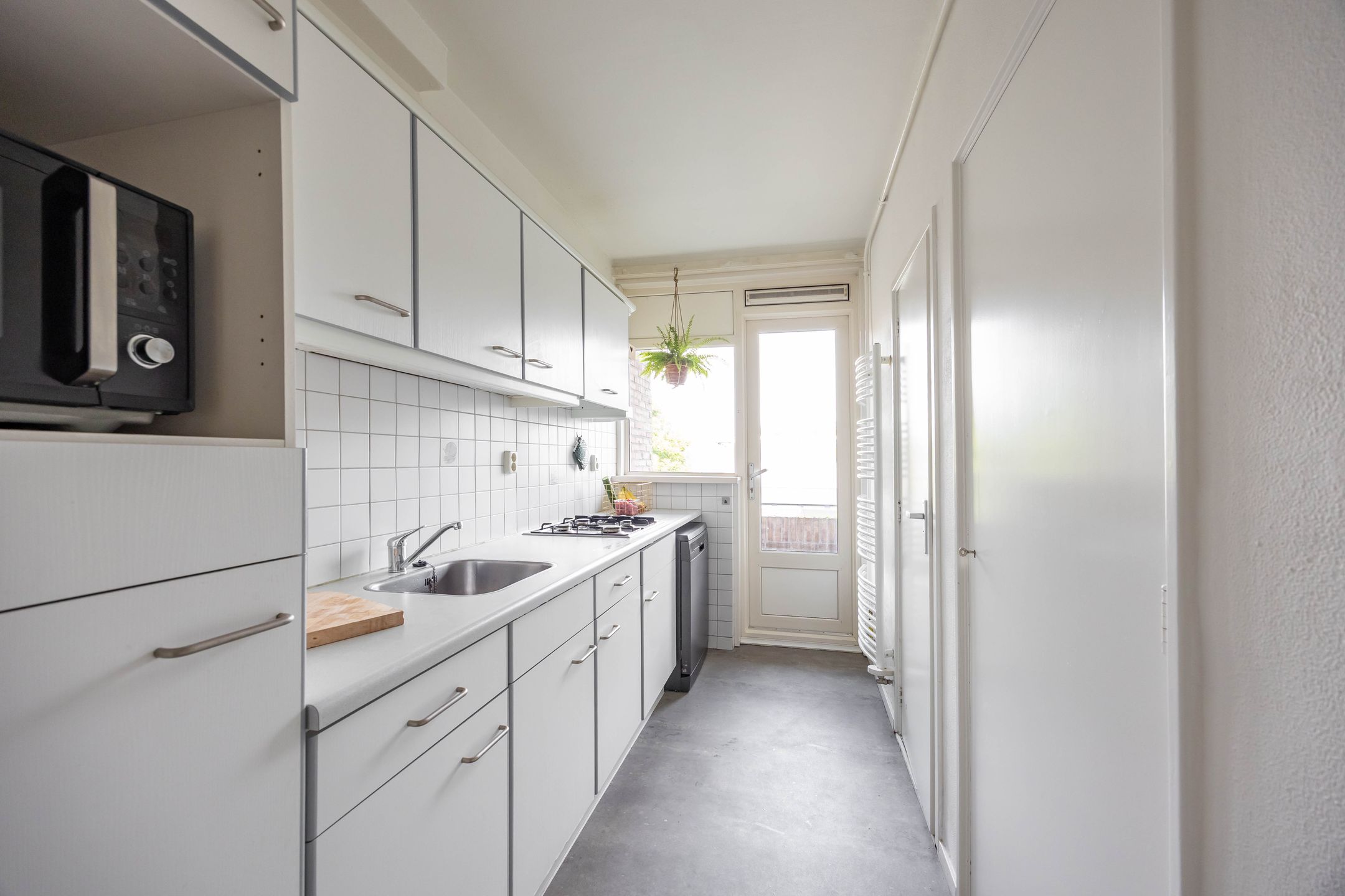 Een fraai, instapklaar en zeer licht hoekappartement op een geliefde locatie in De Wijert. Het voormalig 4-kamer appartement is gelegen op de derde woonlaag en voorzien van zowel een ruim balkon op het zuiden als een klein balkon op het noorden. Rondom voorzien van kunststof kozijnen met HR++ glas. Dit uiterst verzorgde appartement ligt op korte afstand van meerdere winkelcentra (HelpmanVan LenneplaanOverwinningsplein) alsmede nabij de bruisende binnenstad van Groningen. Een opstapplaats voor de bus is direct om de hoek van het appartementencomplex. INDELING Begane grond: Afgesloten portiek met intercom - via trappenhuis naar de derde verdieping. 3e Verdieping Entree - hal met meterkast - toilet met fonteintje - keuken met nette keukeninrichting voorzien van koelkast met vriesvak, 4 pits gaskookplaat en wasmachine aansluiting, ruime voorraadkast en deur naar het balkon op het noorden. Op het balkon staat een kast met de cv-combiketel. De verzorgde badkamer (2018) heeft een inloopdouche, wastafelmeubel en mechanische ventilatie. Twee slaapkamers (10 en 8m2). De doorzonwoonkamer (35m2) met gestuukte wanden heeft een zijraam waardoor er extra veel licht binnenkomt. Het tweede balkon ligt op het zuiden en is vanuit de woonkamer te bereiken; woonkamer is voorzien van een zonnescherm. In de kelder bevindt zich de ruime berging (14m2). Bijzonderheden: - Volledig voorzien van kunststof kozijnen met HR++ glas; - VvE bijdrage 140,- per maand; - Mijnbouwschade dossier (circa 1200,-); - Verwarming d.m.v. cv-combiketel (Intergas, bj. 2008).