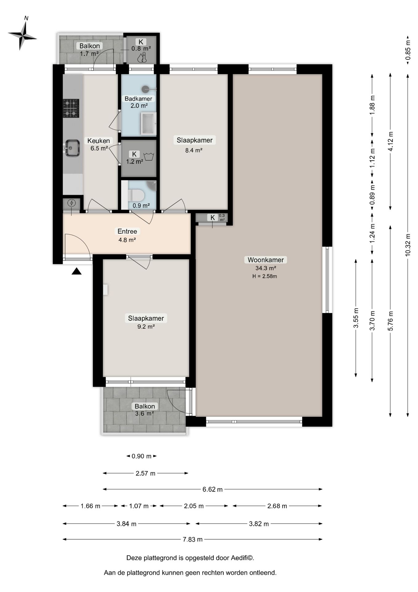 | Numărul de camere | 3 kamers (2 slaapkamers) |