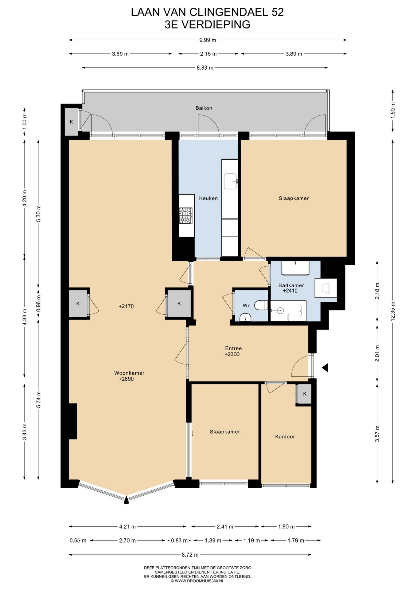 Royaal 5 kamer topappartement is gelegen op de 4e woonlaag (3e etage) aan de brede en groene Laan van Clingendael, in het rustige gedeelte van het Benoordenhout. Er is een heerlijk zonnig achterbalkon op het zuidwesten gelegen over de volle breedte met uitzicht tot de skyline van Den Haag, een berging in de onderbouw n een flinke bergkamer in de kapverdieping. Het park Clingendael met de Japanse Tuin en het Haagse bos liggen werkelijk om de hoek. De gezellige winkels en terrasjes aan de Van Hoytemastraat liggen even verderop. De uitvalswegen zijn eenvoudig te bereiken en met het o.v. op loopafstand bent u binnen 10 minuten op Centraal Station. In het Benoordenhout bevindt zich een groot aantal sportverenigingen waaronder tennis, hockey, voetbal, cricket en golf. Ook het bruisende centrum van De Haag ligt in de zeer nabije omgeving. De combinatie van deze factoren maakt het Benoordenhout een van de meest gewilde woonwijken van Den Haag. De unieke 3D rondleiding van Matterport vindt u op Domek.nl, voor de afmetingen verwijzen we u naar de plattegronden. Indeling: Gesloten hoofdentree met elektrische deuropener en videofoon installatie. Trap naar de verhoogde parterre. Lift of trap naar de 4e woonlaag. Entree appartement. Ruime U-vormige hal, meterkast en garderobekast. Toilet met fontein. Vóór de royale woonkamer met erker en achter de eveneens royale eetkamer met daar tussen de originele schuifseparatie met twee vaste kasten. Vanuit de eetkamer is er toegang tot het zonnige balkon op het zuidwesten met een heerlijk vrij uitzicht! Voorzijkamer met de originele schuifseparatie naar de woonkamer. Daarnaast nog een voorzij-studeerkamer, in Den Haag kabinet genoemd. Nette witte keuken is v.v. inbouwkoel-vriescombinatie, 4 pits kookplaat, oven en vaatwasser. Hoofdslaapkamer aan de achterzijde met toegang tot het zonnige balkon op het zuidwesten, voorzien van balkonkast en elektrische zonwering. Er is een badkamer met zitbad, wastafelmeubel en wasmachineaansluiting. Grote berging in de kapverdieping en een eigen berging in de onderbouw met gelijkvloerse uitgang naar het achterterrein voor bijvoorbeeld de fiets. Algemeen: Woonoppervlakte 115m2 Inhoud 375m Blokverwarming, elektrische boiler (huur) Het zonnige balkon is voorzien van elektrische zonwering over de volle breedte Zeer actieve en gezonde vereniging van eigenaars, bijdrage 303,69 per maand, voorschot stookkosten 170,= per maand Grote eigen bergzolder en een separate kelderbox in de onderbouw Ouderdoms-asbestclausules worden in de NVM koopakte opgenomen Beschermd stadsgezicht Belanghebbenden parkeren Notariskeuze koper, mits binnen het werkgebied Haaglanden Eigen grond Oplevering in overleg, kan spoedig Toelichtingsclausule NEN2580 De Meetinstructie is gebaseerd op de NEN2580. De Meetinstructie is bedoeld om een meer eenduidige manier van meten toe te passen voor het geven van een indicatie van de gebruiksoppervlakte. De Meetinstructie sluit verschillen in meetuitkomsten niet volledig uit, door bijvoorbeeld interpretatieverschillen, afrondingen of beperkingen bij het uitvoeren van de meting. Interesse in dit huis? Schakel direct uw eigen NVM-aankoopmakelaar in. Uw NVM-aankoopmakelaar komt op voor uw belang en bespaart u tijd, geld en zorgen. Adressen van collega NVM-aankoopmakelaars in Haaglanden vindt u op Domek.nl.nl Deze informatie is door ons met de nodige zorgvuldigheid samengesteld. Onzerzijds wordt echter geen enkele aansprakelijkheid aanvaard voor enige onvolledigheid, onjuistheid of anderszins, dan wel de gevolgen daarvan.