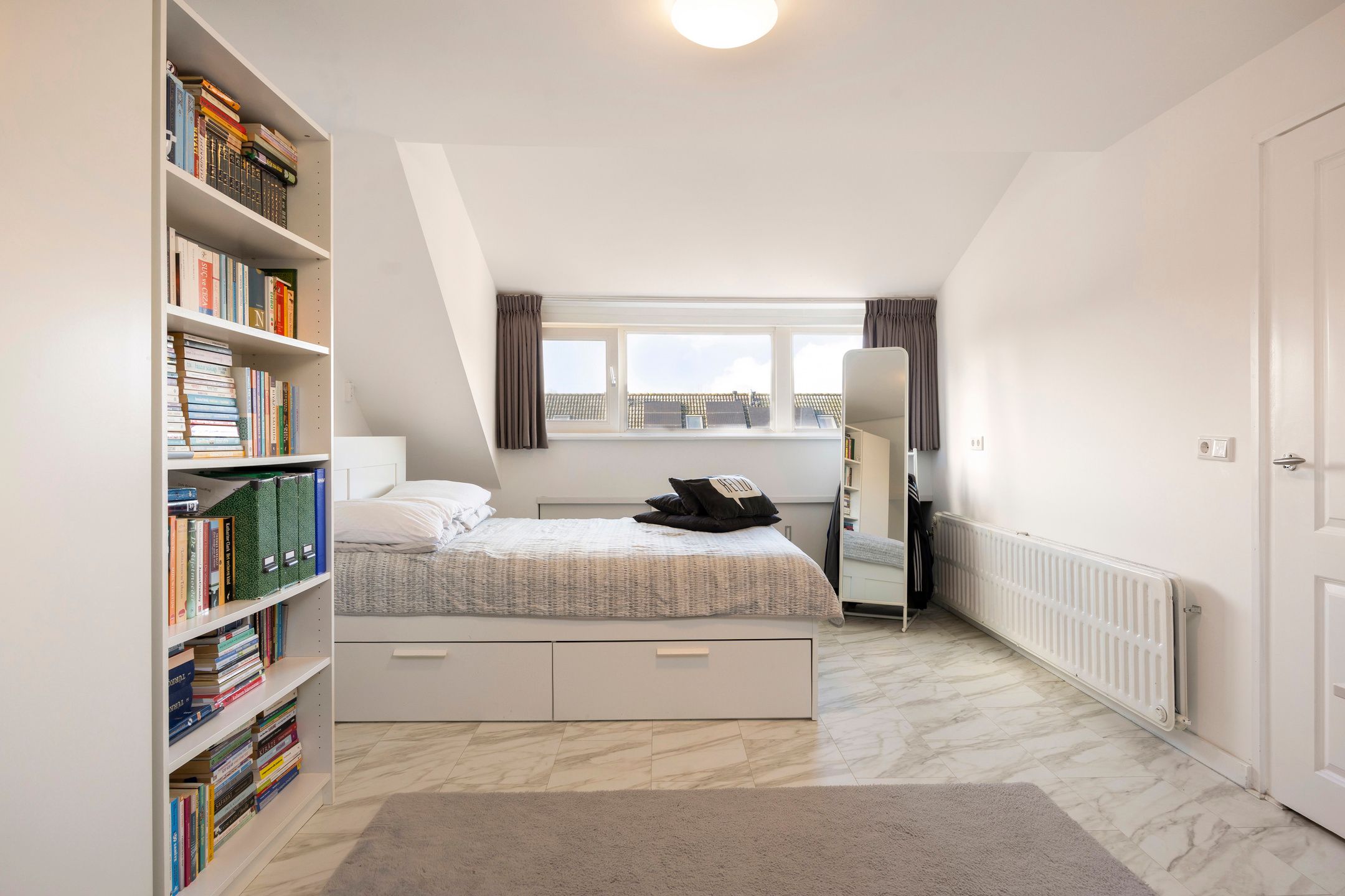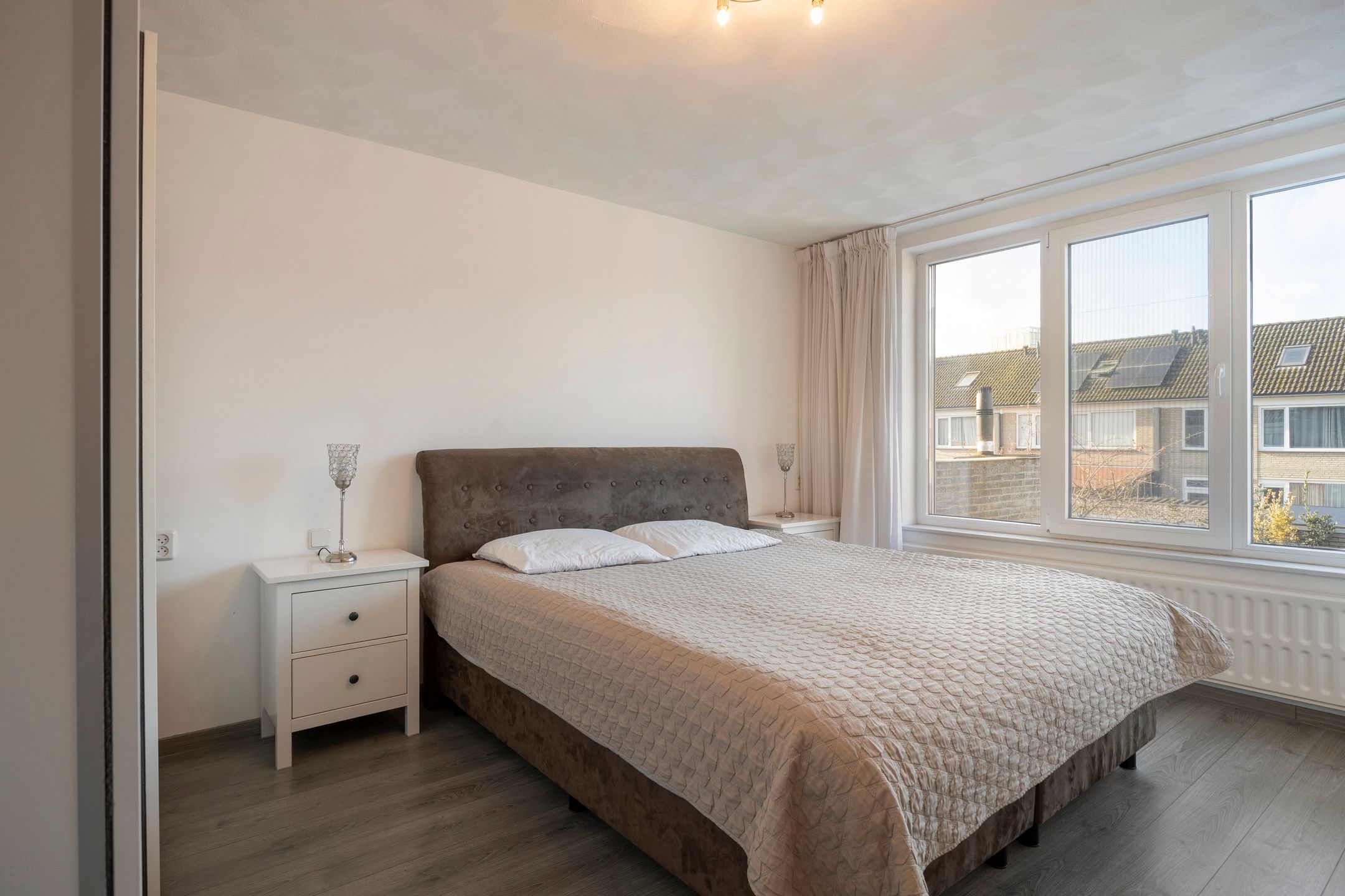 In een brede, rustige straat, op steenworp afstand van winkelcentrum Wagnerplein, scholen, park, sportvoorzieningen en openbaar vervoer, staat deze royale tussenwoning. De woning is in 2022 volledig voorzien van nieuwe kunststof kozijnen met triple glas en beschikt over 20 zonnepanelen, wat zorgt voor zeer lage energielasten. Daarnaast biedt de woning vier slaapkamers, een in 2016 vernieuwde badkamer, moderne toiletruimte, bijkeuken, zolder met dakkapel (2015) en een zonnige tuin op het westen. Een ideale gezinswoning met volop leefruimte, veel lichtinval en een praktische indeling. Indeling Begane grond: Via de voortuin bereik je de entree van de woning. De ruime hal is voorzien van een laminaatvloer en biedt toegang tot de toiletruimte (2014) met closet, fontein en radiator, de meterkast (6 groepen + aardlekschakelaar), de trapopgang en de woonkamer. De doorzonwoonkamer is afgewerkt met een laminaatvloer, strakke wanden en een strak plafond. Aan de achterzijde bevindt zich de keuken in rechte opstelling, uitgerust met: oven (2014) inbouwkoelkast vaatwasser (2014) 4-pits gaskookplaat afzuigunit spoelbak Aansluitend ligt de praktische bijkeuken met toegang tot de achtertuin. De achtertuin op het westen is onderhoudsvriendelijk aangelegd met sierbestrating en diverse groenborders. Achterin de tuin staat een stenen berging over de volledige breedte, voorzien van een deur naar de achtergelegen brandgang. Eerste verdieping: Vanaf de overloop zijn drie slaapkamers, de badkamer en de trapopgang naar zolder bereikbaar. De slaapkamers hebben praktische afmetingen, zijn voorzien van een laminaatvloer en beschikken over glad afgewerkte wanden en plafonds. Alle drie de slaapkamers zijn uitgerust met rolluiken. De vernieuwde badkamer (2016) is modern uitgevoerd en voorzien van: ligbad met douchescherm, thermostaatkraan, een tweede toilet, wastafel in meubel en een designradiator. Tweede verdieping: Via de vaste trap kom je op de voorzolder met de opstelling van de Intergas cv-ketel (2015) en aansluitingen voor wasapparatuur. De vierde slaapkamer is een echte ruimtewinner: dankzij de brede dakkapel (2015) heeft deze kamer een oppervlakte van ruim 20 m2. Ook hier ligt een laminaatvloer. Algemeen: In 2022 volledig voorzien van nieuwe kunststof kozijnen met triple glas 20 zonnepanelen aanwezig Groot deel van de woning voorzien van elektrische rolluiken Badkamer vernieuwd in 2016 Toiletruimte vernieuwd in 2014 Ruime stenen berging Perceeloppervlakte: 173 m2 Woonoppervlakte: ca. 130 m2 Een ruime, functionele en goed onderhouden woning op een uitstekende locatie, ideaal voor gezinnen die comfortabel en energiezuinig willen wonen met alle voorzieningen binnen handbereik. De woning is voorzien van 20 zonnepanelen, geplaatst in 2022 via het gemeentelijke alles-in-n-pakket Zon op je dak. Dit maakt de woning nog energiezuiniger en draagt bij aan lagere energiekosten. Tijdens de bezichtiging vertellen we graag alles over deze duurzame regeling. Kom je binnenkort ook bezichtigen? We ontvangen je graag.