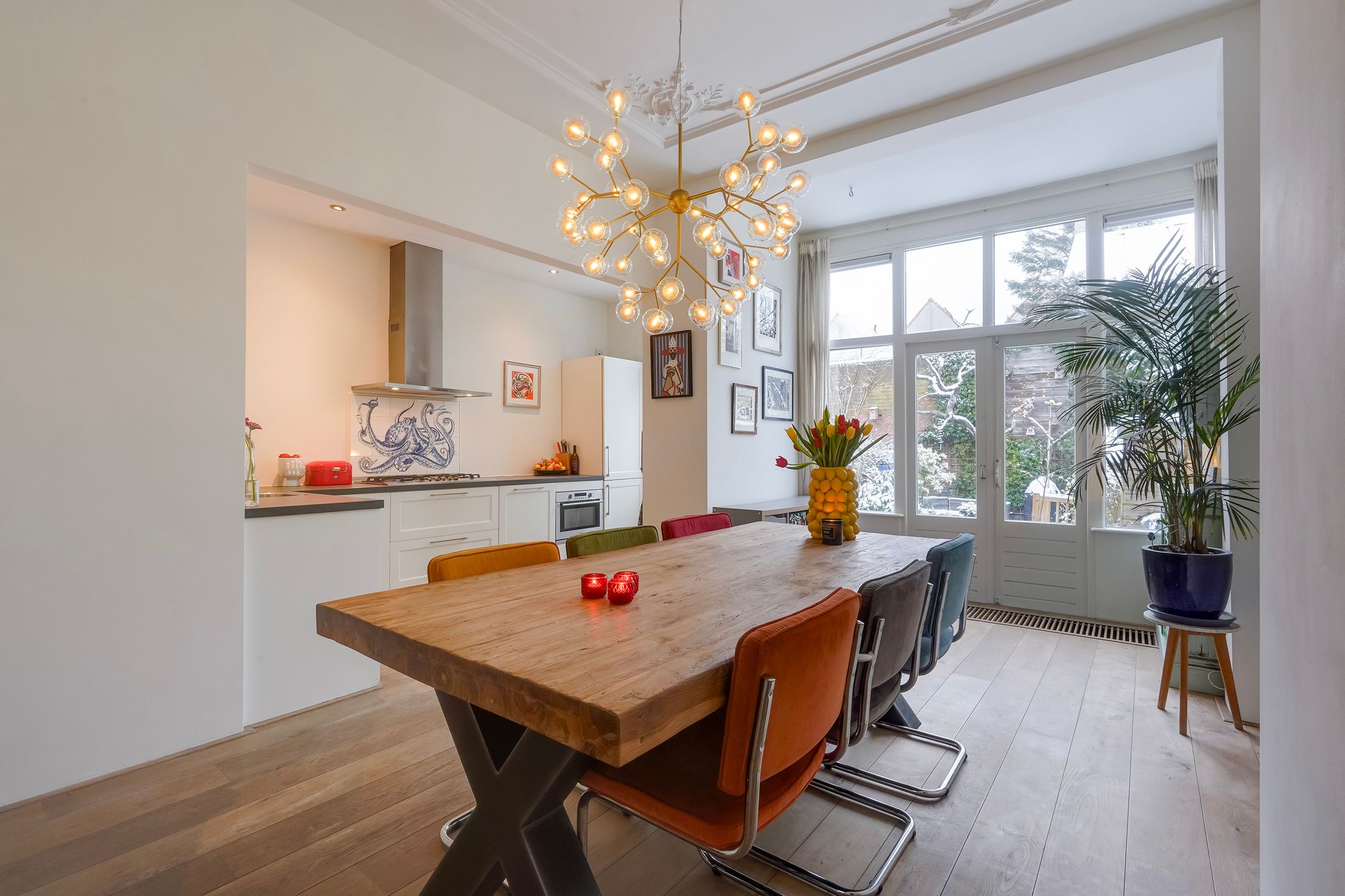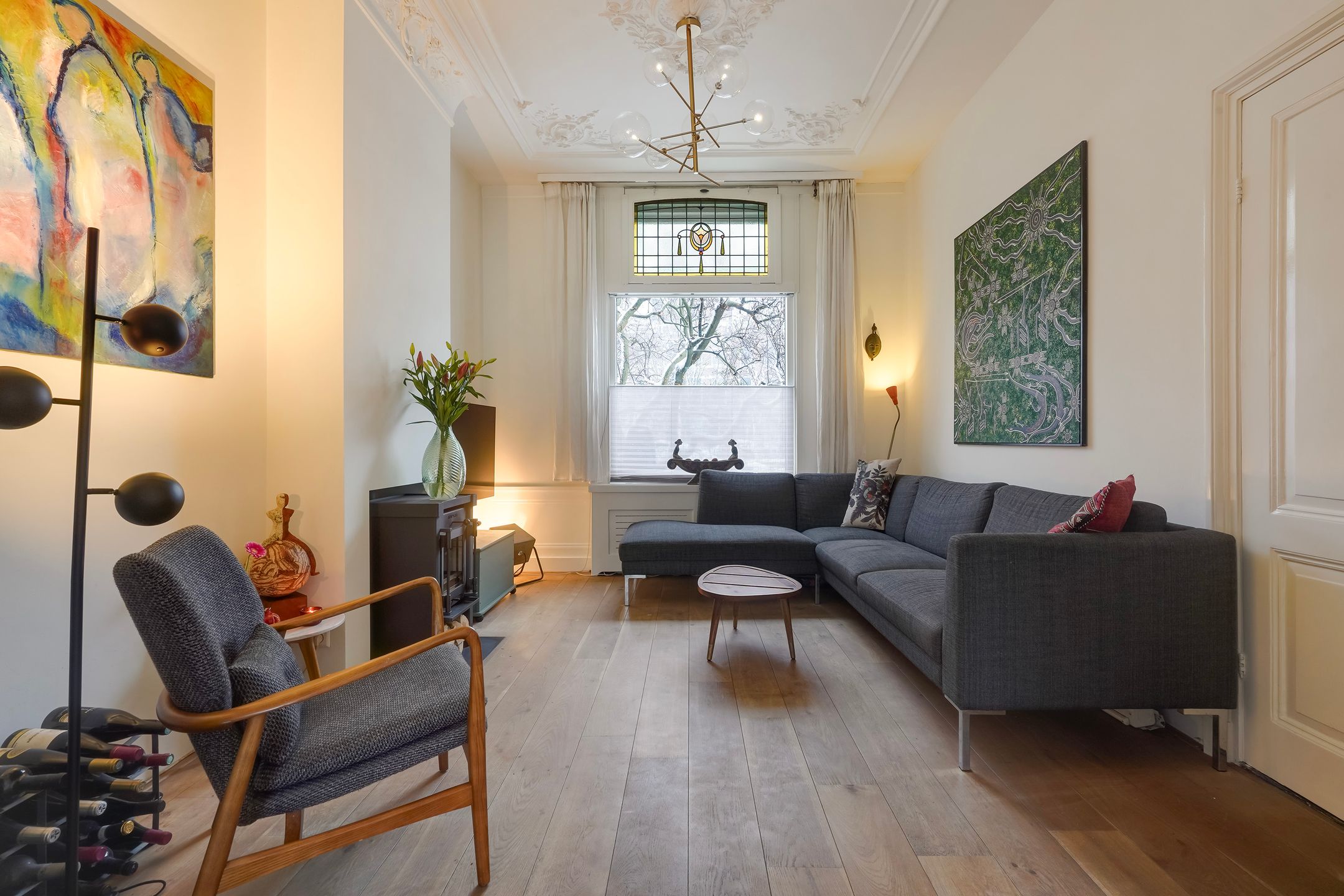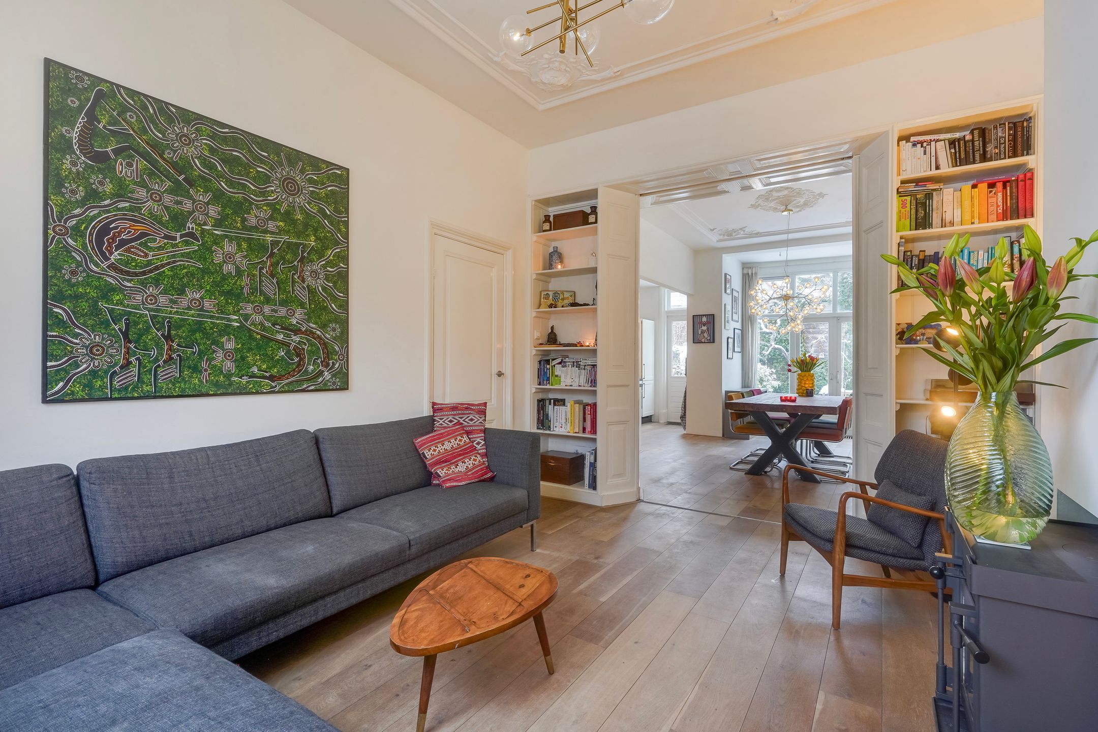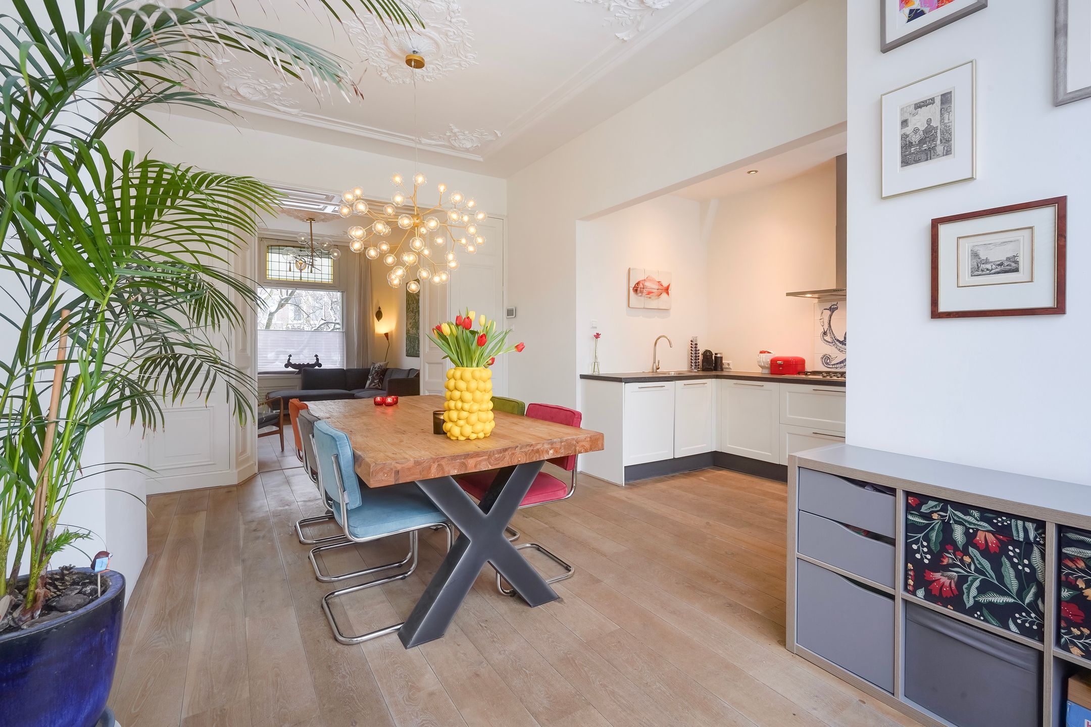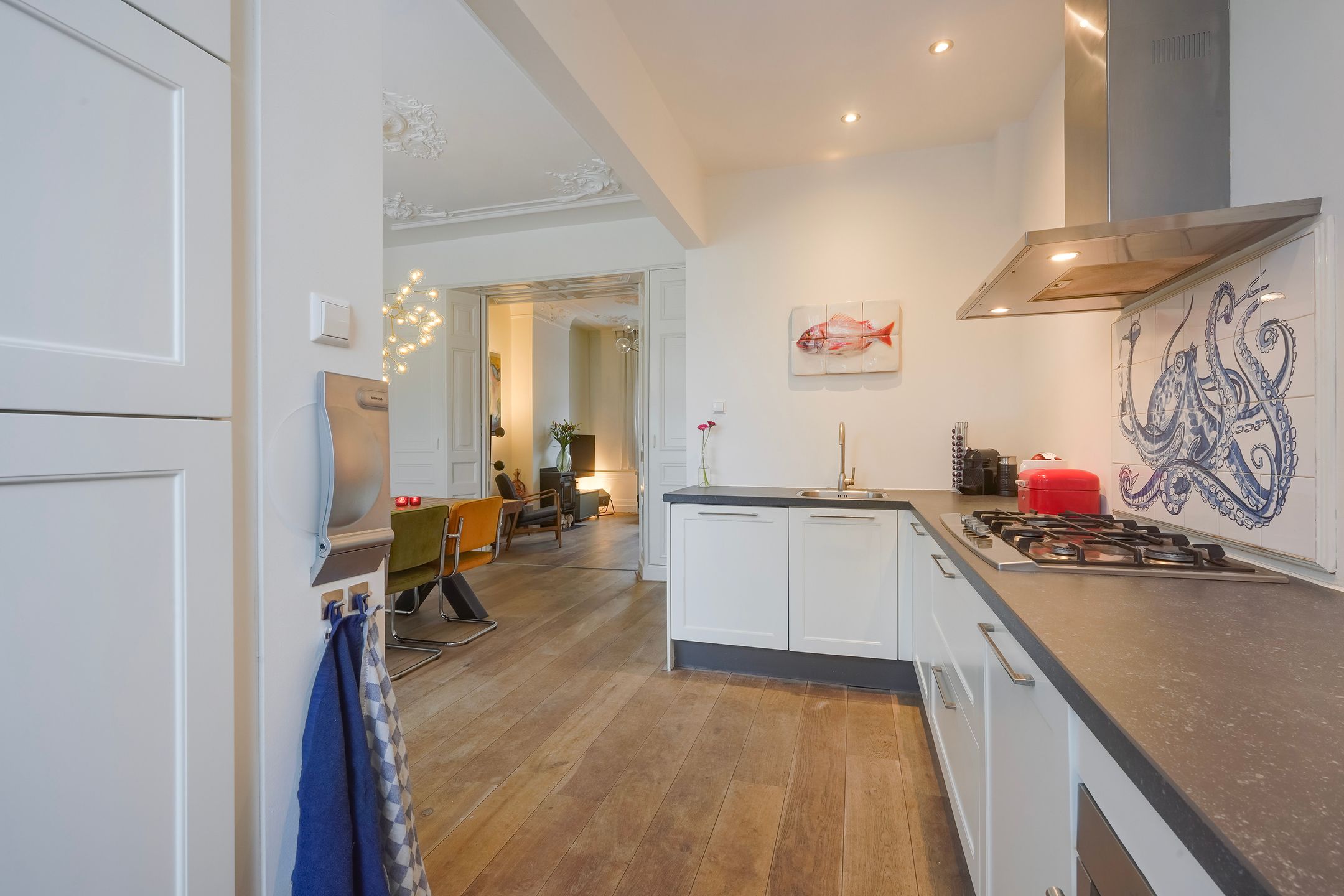 Een super karakteristiek en charmant 3-laags stadsherenhuis gebouwd in 1886 aan het breedste gedeelde van de kade met totaal ca. 142 m2 woonoppervlak, een verrassend zonnige achtertuin van bijna 12 meter diep en veel privacy dankzij de voortuin met een prachtige Magnolia. Dit heerlijke en sfeervolle familiehuis - in zeer nette staat van onderhoud - is gelegen op een perfecte locatie in het populaire en kindvriendelijke Zeeheldenkwartier, schuin tegenover het beeldschone Koningsplein met mooie speeltuin en om de hoek van de bruisende Prins Hendrikstraat en -plein met een uitgebreid aanbod aan kleinschalige horeca, speciaalzaken en winkeltjes. Tevens vlakbij de gezellige Piet Heinstraat met veel restaurantjes en winkels. Albert Heijn XL ligt op 5 minuten lopen. Tram en bushaltes liggen op 2 minuten lopen. Centrum is 5 minuten fietsen en het strand 10 minuten. Goede kinderopvang en basisscholen in de buurt. Indeling: Begane grond Voortuin ca. 5.50x5.02met plek voor (bak)fietsen, ruime hal met meterkast en ruime toilet voorzien van wandcloset, fonteintje en ventilatie. Vanuit de hal de sfeervolle kamers en suite ca. 10.30x3.41 met fraaie originele ornamenten plafonds, parketvloer, moderne houtkachel, schuifseparatie met vaste kasten, glas in lood en suite deuren, glas in lood bovenraam en openslaande deuren naar de riante achtertuin ca. 11.75x5.50 met veel privacy en zon - dankzij geringe bebouwing op de aangrenzende percelen. De luxe open keuken ca. 4.10x1.74 is gesitueerd aan de achterzijde en voorzien van composiet werkblad, 5-pits gaskookplaat, combi-oven, koel-vriescombinatie en (nieuwe)vaatwasser (2025). Eerste verdieping Voorts karakteristieke trap met loper naar de eerste etage, overloop met apart toilet voorzien van fonteintje, ruime family room aan de voorzijde ca. 5.22x3.94 met maatwerk ingebouwde grote kasten van antieke boerderijdeuren, inbouwbureau, tv-lift en schuifdeuren. Aan de achterzijde de hoofdslaapkamer ca. 4.65x3.38 met ingebouwde kasten en glas in looddeuren naar eigen badkamer ca. 4.77x1.30 voorzien van vloerverwarming, fraai tegelwerk, meubel met wastafel, inloopdouche met glazen wand en een inloopkledingkast. Tweede verdieping Vanuit de overloop de trap naar de tweede etage, overloop met dakraam, ruime slaapkamer aan de voorzijde ca. 5.22x2.87 met dakkapel en dakraam, de tussengelegen slaapkamer ca. 3.222.05x2.99 is perfect als kinderkamer en voorzien van een vaste trap naar de vliering met een achtergelegen bergruimte. Ideaal om kerstspullen, koffers e.d. uit zicht op te bergen. Tot slot aan de achterzijde de ruime tweede badkamer ca. 5.22x2.59 met vrijstaand ligbad, twee wastafels, een toilet en een inloopdouche. Deze verdieping is ideaal voor opgroeiende kinderen, een au pair of uitstekend te gebruiken als kantooratelier ruimte. Aanvullende informatie: - s-Gravenhage sectie Z nummer 624 - Perceelgrootte 149 m2 - Bouwjaar 1886 - Eigen grond - Gemeentelijk beschermd stadsgezicht - Energielabel C - Voorzien van dakisolatie - Geheel voorzien van dubbele beglazing - Glas in loodramen voorzien van voorzetraam - Cv-combiketel Intergas HRE 3630 A (maart 2025) - Voor- en achter woning buiten volledig geschilderd (2025) - Woning binnen volledig geschilderd (2020), in najaar 2025 75% huis nogmaals geschilderd - Ouderdoms- en materialenclausule van toepassing - Algemene verkoopvoorwaarden van toepassing - Oplevering in overleg