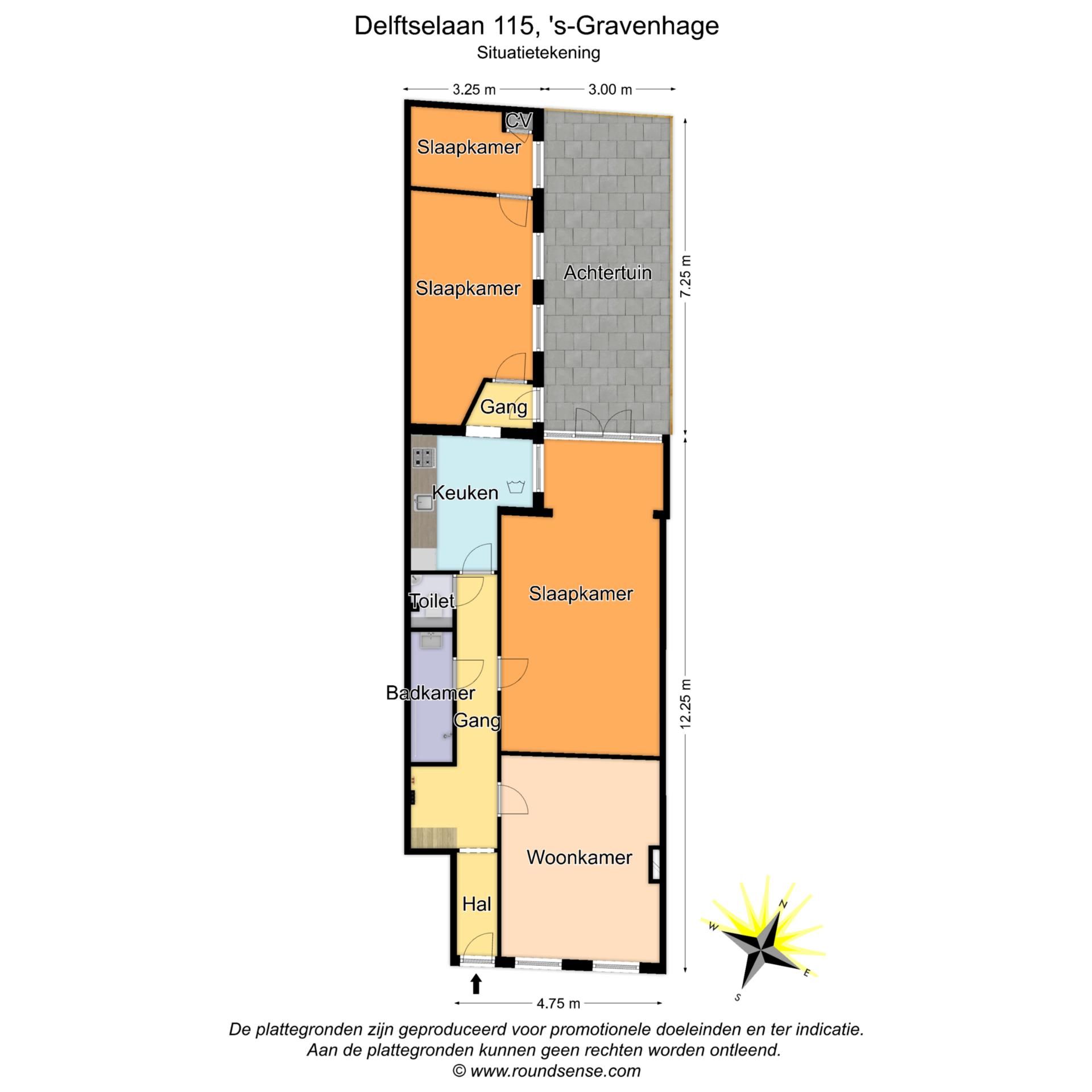 | în afara curții | 22 m2 (7,25 meter diep en 3,00 meter breed) |