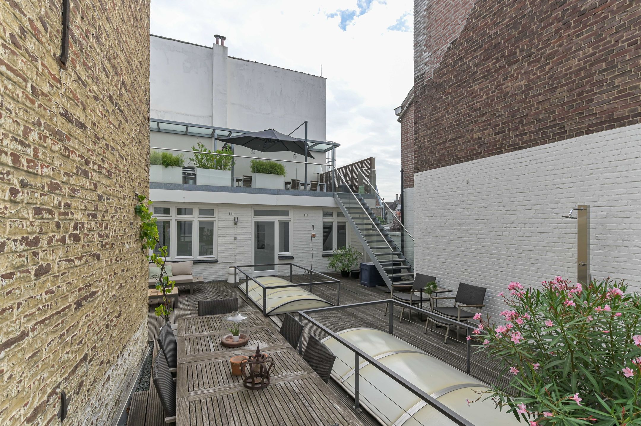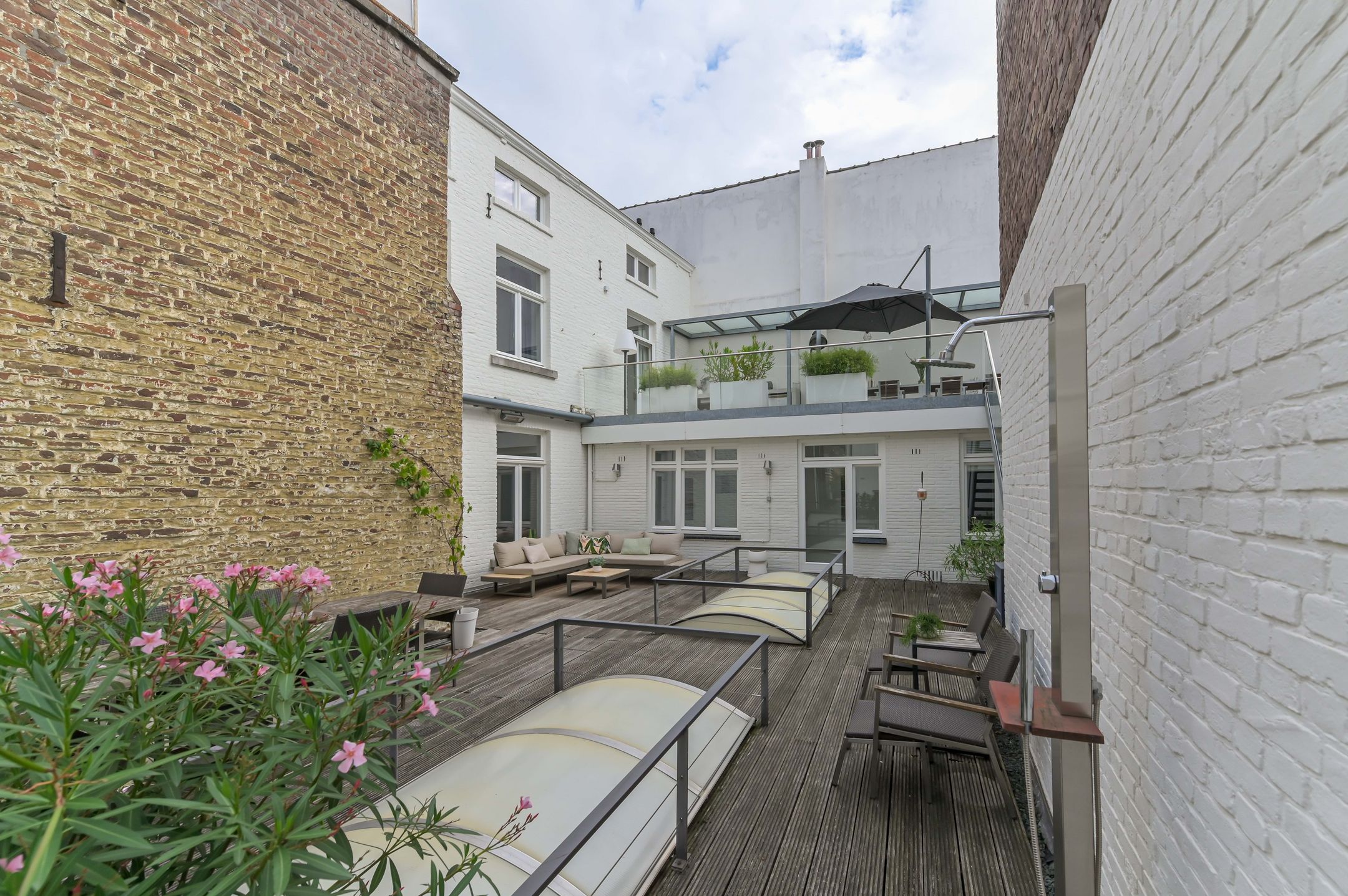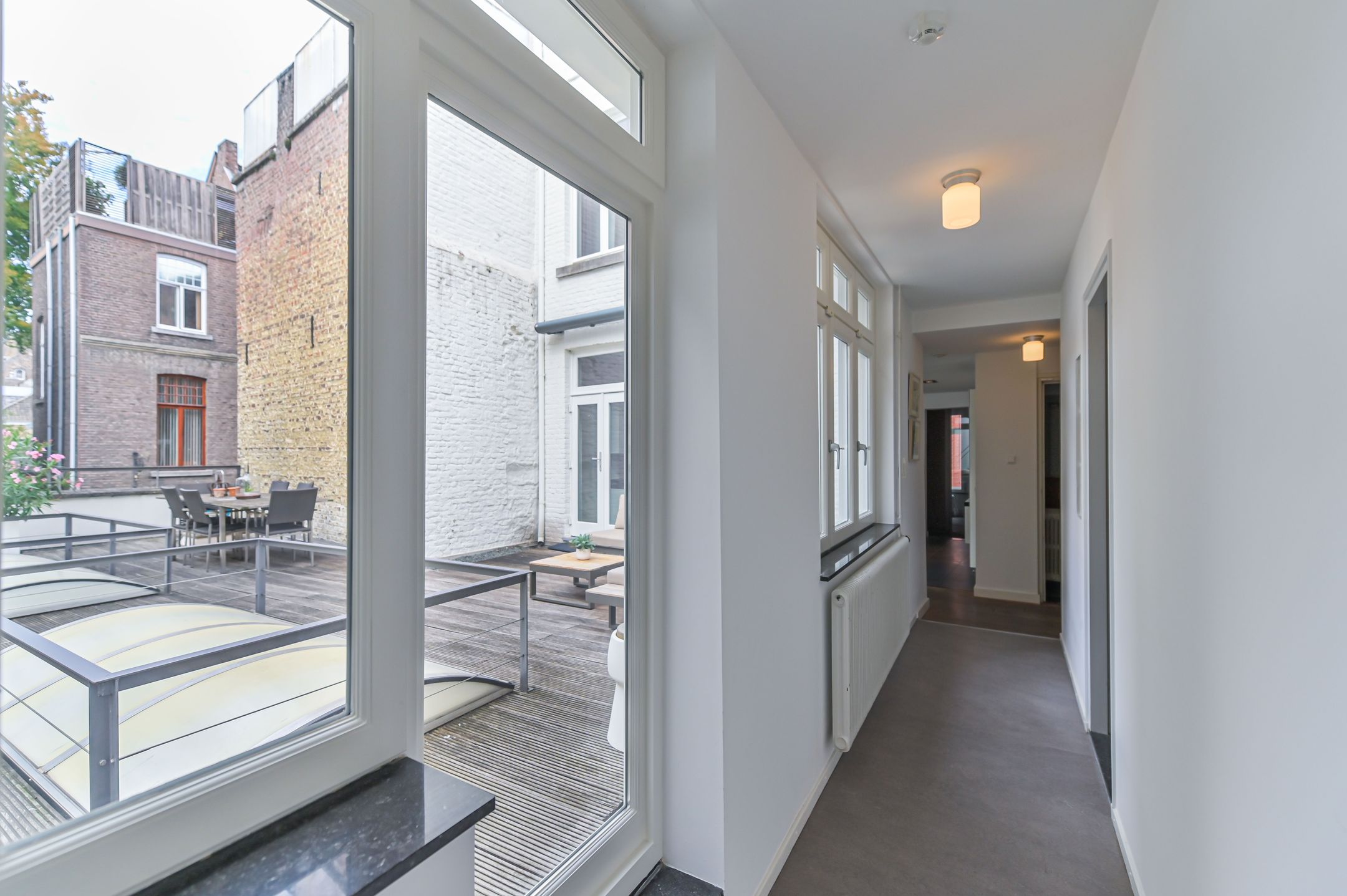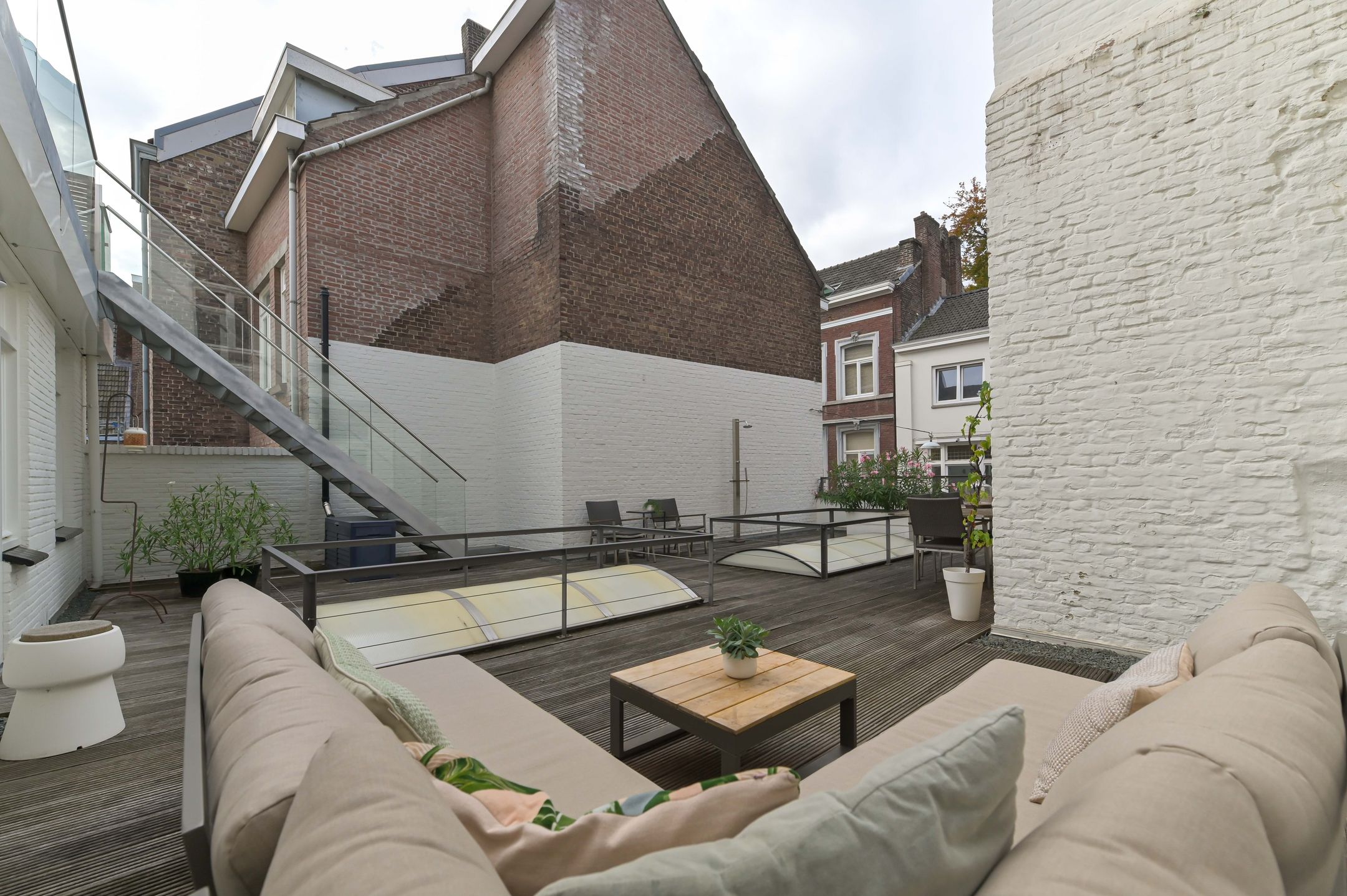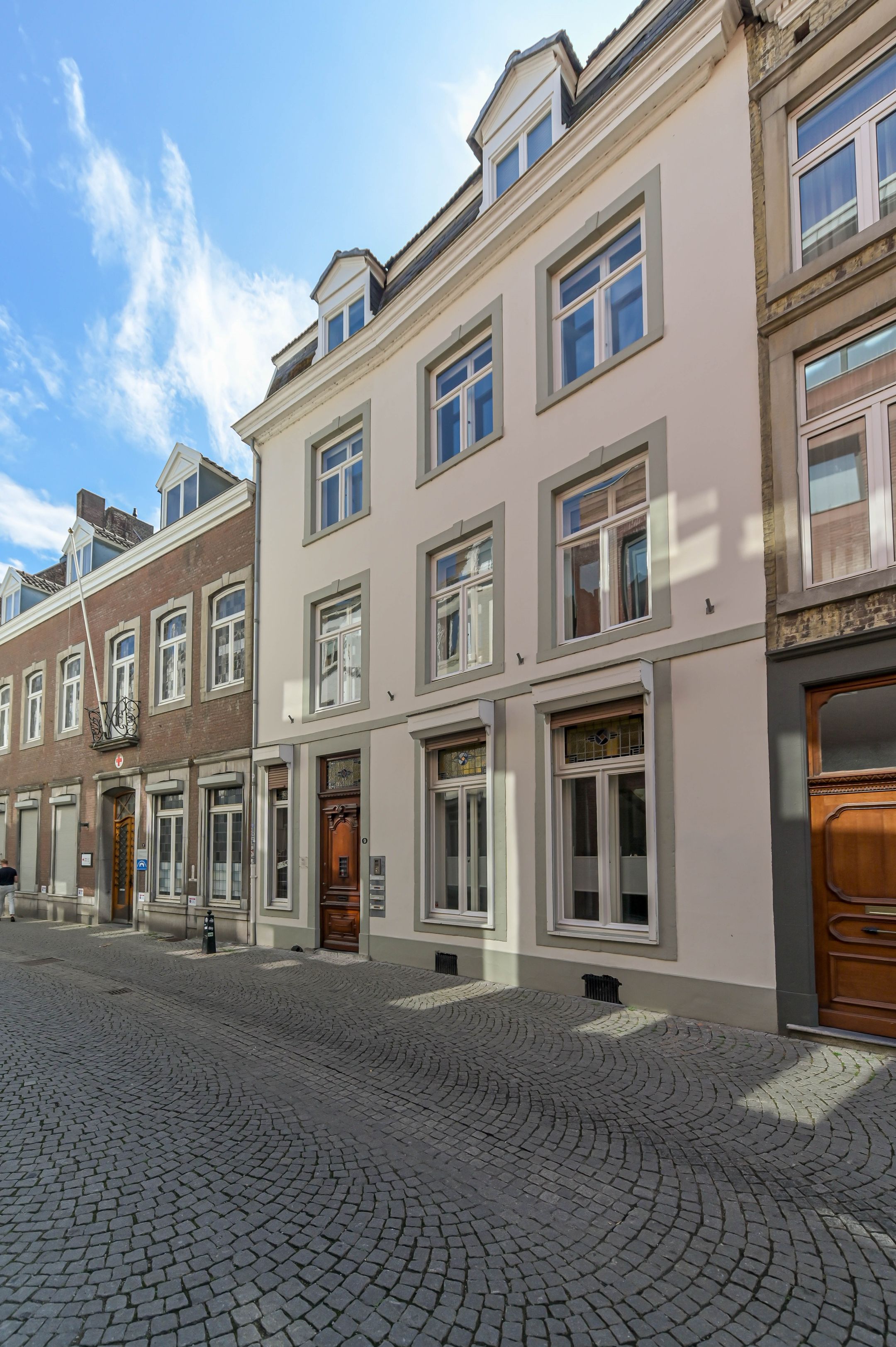 DEZE WONING WORDT AANGEBODEN DOOR PH EXCLUSIVE REAL ESTATE Bijzonder royaal pand in hartje Maastricht met zelfstandige kapsalon om de hoek! Aan de Cortenstraat 9A tm D en Maastrichter Heidenstraat 1 ligt dit indrukwekkende pand dat historie, ruimte en veelzijdigheid op unieke wijze combineert. Het betreft een royale stadswoning met meerdere verdiepingen, verschillende dakterrassen en zelfstandige kapsalon gelegen op een absolute toplocatie in de Maastrichtse binnenstad. Dankzij de bijzondere indeling biedt dit object talloze mogelijkheden: van een ruime gezinswoning tot dubbele bewoning, van verhuur tot de perfecte combinatie van wonen en werken. Bij binnenkomst ervaar je direct de karaktervolle uitstraling. Authentieke details zoals de marmeren haardpartijen en de gewelfde kelders geven het pand een charmante en sfeervolle ambiance. Op de begane grond bevindt zich naast de ruime woonkamer een zelfstandige kapsalon met eigen entree - ideaal voor een praktijk, kantoor of atelier aan huis. De verdiepingen zijn ingericht als zelfstandige woonlagen, elk voorzien van een woonkamer, keuken, badkamer en slaapkamers. Dit maakt het pand bijzonder flexibel: geschikt voor groot gebruik als n woning, maar ook eenvoudig op te delen in meerdere appartementen of woon-werkcombinaties. De aanwezigheid van meerdere keukens en badkamers zorgt voor optimaal wooncomfort en gebruiksgemak. De dakterrassen zijn een groot pluspunt. Hier geniet je in alle rust van het uitzicht over de stad en de levendige sfeer van Maastricht, terwijl je beschikt over je eigen buitenruimte. Het pand is degelijk gebouwd en voorzien van o.a. HR++ beglazing, houten kozijnen, twee HR-ketels en een goed onderhouden dakconstructie. Daarmee combineert het historische charme met hedendaags comfort. Indeling: Souterrain: Onder het pand liggen meerdere gewelfde kelders, bereikbaar via stenen trappen. Deze ruimten zijn ideaal als wijnkelder of extra opslag. Begane grond De representatieve entree met hardstenen vloer leidt naar de ruime hal met trap naar de eerste verdieping. De woonkamer bestaat uit twee gedeelten met houten vloeren, stucwerk en twee marmeren haardpartijen. Daarnaast zijn er een portaal met toiletruimte, een pantry, kantoorruimte en een praktische wasruimte met keukenblok en cv-installatie (Daalderop HR, ca. 2001). De kapsalon aan de voorzijde beschikt over een eigen entree, hardstenen vloer, toiletgroep en aparte meterkast. Eerste verdieping Een volwaardige woonlaag met een keuken die toegang geeft tot een groot dakterras, voorzien van alle benodigde inbouwapparatuur. Er zijn drie slaapkamers, waarvan twee met marmeren haardpartij, en een ruime badkamer met ligbad, douche, zwevend toilet en dubbele wastafel. Tweede verdieping: Hier vind je een royale woonkamer met open keuken, twee slaapkamers, een badkamer met ligbad en witgoedaansluitingen, een separaat toilet en toegang tot een tweede dakterras. Een extra kast biedt ruimte aan twee HR-ketels en een boiler. Derde verdieping: Ook deze verdieping is volledig ingericht met een woonkamer, open keuken, badkamer, separaat toilet en twee slaapkamers. Bijzonderheden: - Authentieke details zoals gewelfde kelders en marmeren haardpartijen - Meerdere woonkamers, keukens en badkamers - Diverse dakterrassen met uitzicht over de stad - Praktijk-kantoorruimte met eigen entree - Gelegen op een toplocatie in de Maastrichtse binnenstad Dit pand is een unieke kans voor wie groots en stijlvol wil wonen of wonen en werken in het hart van Maastricht. Algemene info: Ter bescherming van de belangen van zowel koper als verkoper, wordt uitdrukkelijk gesteld dat een koopovereenkomst met betrekking tot deze onroerende zaak eerst dan tot stand komt nadat koper en verkoper de koopovereenkomst hebben getekend ("schriftelijkheidsvereiste").De termijn die wordt opgenomen voor eventuele (overeengekomen) ontbindende voorwaarden (bv. Financiering) is in de regel 4 tot 6 weken na het sluiten van de mondelinge wilsovereenstemming. De waarborgsombankgarantie is 10% van de koopsom. De koper dient deze 2 weken n het vervallen van de ontbindende voorwaarden bij de desbetreffende notaris te deponeren. Afhankelijk van de situatie van de woning, is de makelaar bevoegd om aanvullende bepalingen op te nemen in de koopovereenkomst, zoals een ouderdomsclausule of niet-bewoond clausule. Koper is te allen tijde gerechtigd voor eigen rekening een bouwkundige keuring te (laten) verrichten dan wel andere adviseurs te raadplegen teneinde een goed inzicht te verkrijgen over de staat van onderhoud. Bovenstaande vrijblijvende informatie is door PH Exclusive Real Estate met de nodige zorgvuldigheid samengesteld. Echter aanvaardt PH Exclusive Real Estate geen enkele aansprakelijkheid voor enige onvolledigheid, onjuistheid of anderszins, dan wel de gevolgen daarvan. Oppervlakten en maten zijn indicatief.