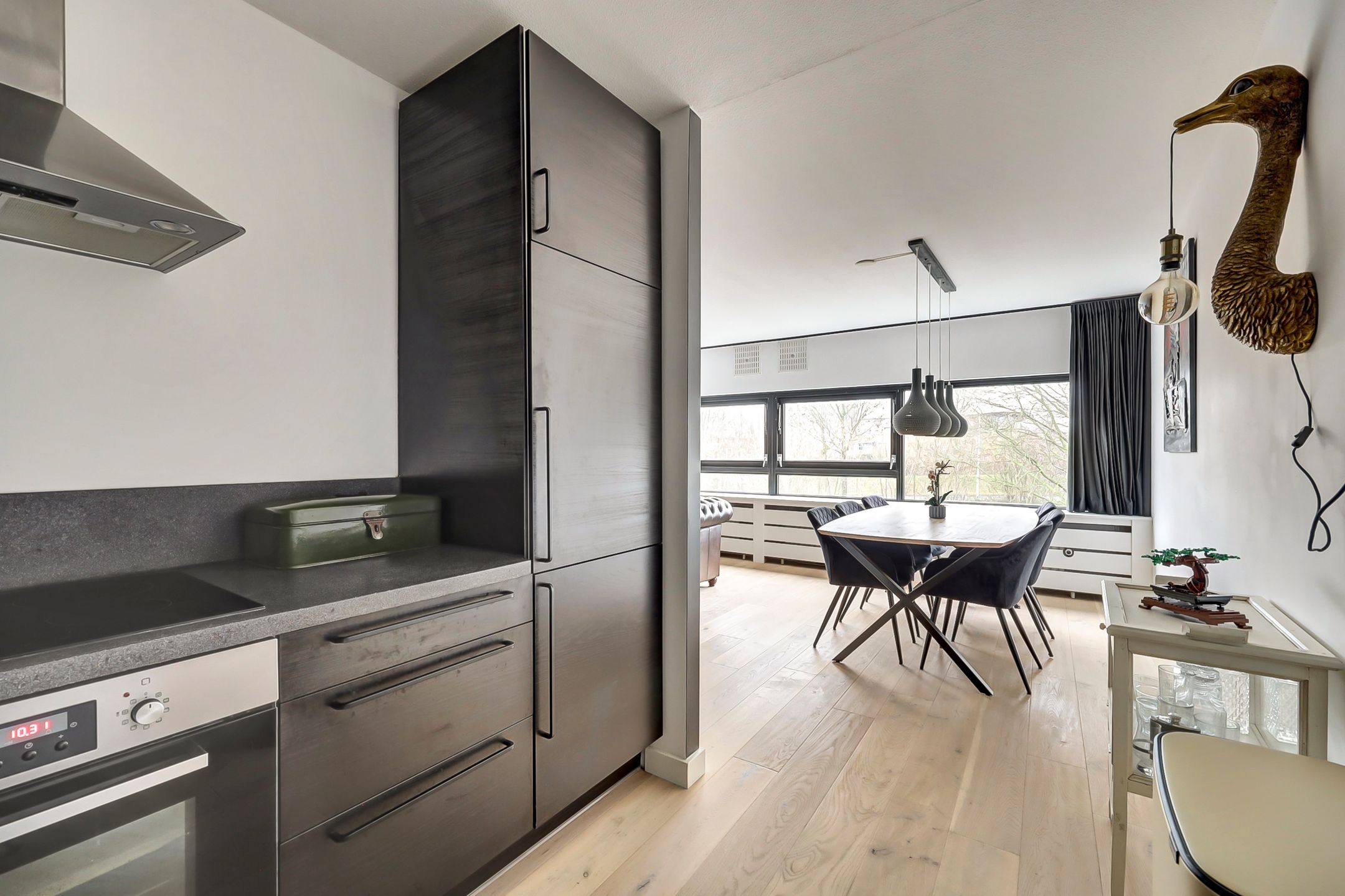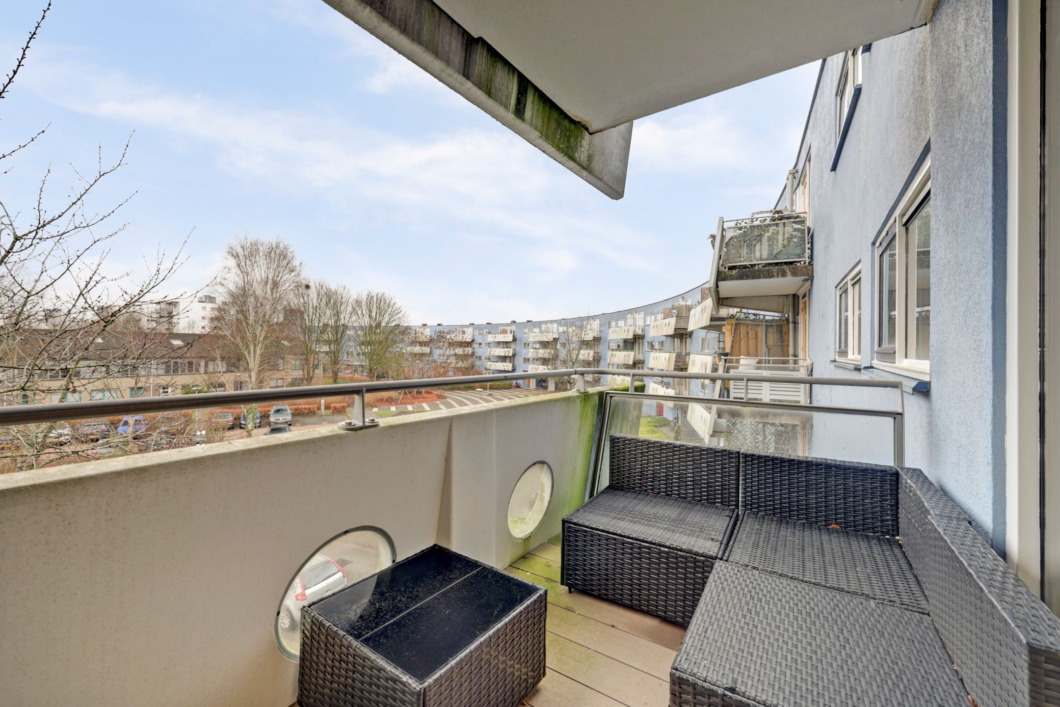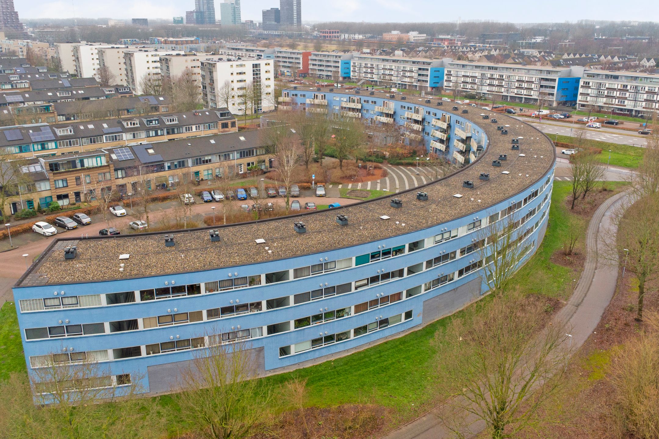 Gelegen aan het Peter Sellershof in Filmwijk en op loopafstand van het bruisende centrum, staat het iconische halfronde blauwe complex.....dat voor vele in Almere een punt van herkenning is. Hier mogen wij je aanbieden dit goed onderhouden lichte 3-kamer appartement op de tweede etage met fraai wijds uitzicht. Indeling: Entree, meterkast, badkamer, bergkast, toilet met fontein, enerzijds de slaapvertrekken en aan de andere zijde toegang tot de woonkamer. Door de vele raampartijen word je bij binnenkomst, in het leefgedeelte, verwelkomt door prettig veel (dag)lichtinval. Hier is een gezellige zithoek gecreerd en ook nog voldoende plek voor een grote eettafel met voldoende stoelen. In het verlengde hiervan staat de zwartkleurige hoekkeuken opgesteld. Deze is uitgerust met onder- en bovenkasten, keramische kookplaat, re-circulatiekap, vaatwasser, magnetron, koel-vriescombinatie, oven, spoelbak met kraan en werkblad. Het appartement beschikt over twee slaapkamers, waarvan n in de huidige setting als werkkamer wordt gebruikt. De andere slaapkamer geeft toegang tot het balkon met westen ligging, hier geniet je op de loungeset van heerlijke middag en avondzon. De badkamer is volledig betegeld en voorzien van een inloopdouche, wastafel met meubel en aansluiting voor de wasmachine. Het toilet is in dezelfde stijl betegeld en bevindt zich in een separate ruimte aan de zijde van de slaapkamers. De gehele woning beschikt over een eiken houten vloer en strak gestucte wanden. In de onderbouw van het complex is de entree met bellenplateau, algemene hal met brievenbussen, toegang tot de bergingen en het trappenhuis naar de verschillende verdiepingen. De berging die aan dit appartement toebehoord is ruim en daardoor uitermate geschikt om je fiets(en) te stallen. Filmwijk is gelegen in stadsdeel Almere Stad-Oost en is speels en ruim qua opzet en ingesloten door een drietal parken; Lumierepark, Odeonpark en het Ebenezer Howardpark. Maar ook nog eens op loopafstand van stadshart Almere, met al haar winkels, theater en horecagelegenheden. Deze locatie biedt je dagelijkse rust met de reuring en alle voorzieningen van de stad om de hoek. Binnen mum van tijd ben je met de auto op de A6 richting Amsterdam of Lelystad of de A27 richting 't Gooi. Reis je (liever) met het openbaar vervoer, dan zijn bushaltes en het NS-station ook uitstekend te bereiken. Ideaal voor woon- werkverkeer! Kenmerken - twee slaapkamers - complete keuken - ruime en net betegelde badkamer met wasmachineaansluiting - parkeerontheffing voor bewoners via de gemeente - energielabel A - balkon op westen - inpandige berging in de onderbouw - VvE kosten 173,42 per maand *Deze informatie is met de nodige zorgvuldigheid samengesteld. Onzerzijds wordt echter geen enkele aansprakelijkheid aanvaard voor enige onvolledigheid, onjuistheid of anderszins, dan wel de gevolgen daarvan. Alle opgegeven maten en oppervlakten zijn indicatief.