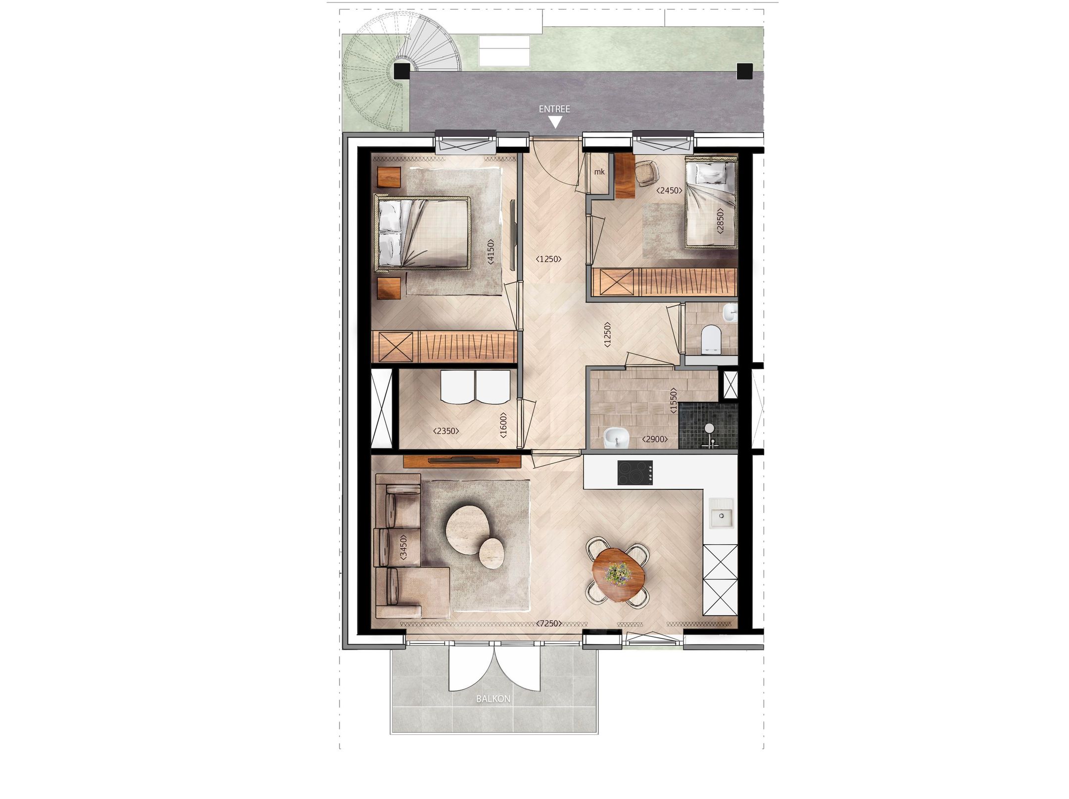 | Numărul de camere | 3 kamers (2 slaapkamers) |