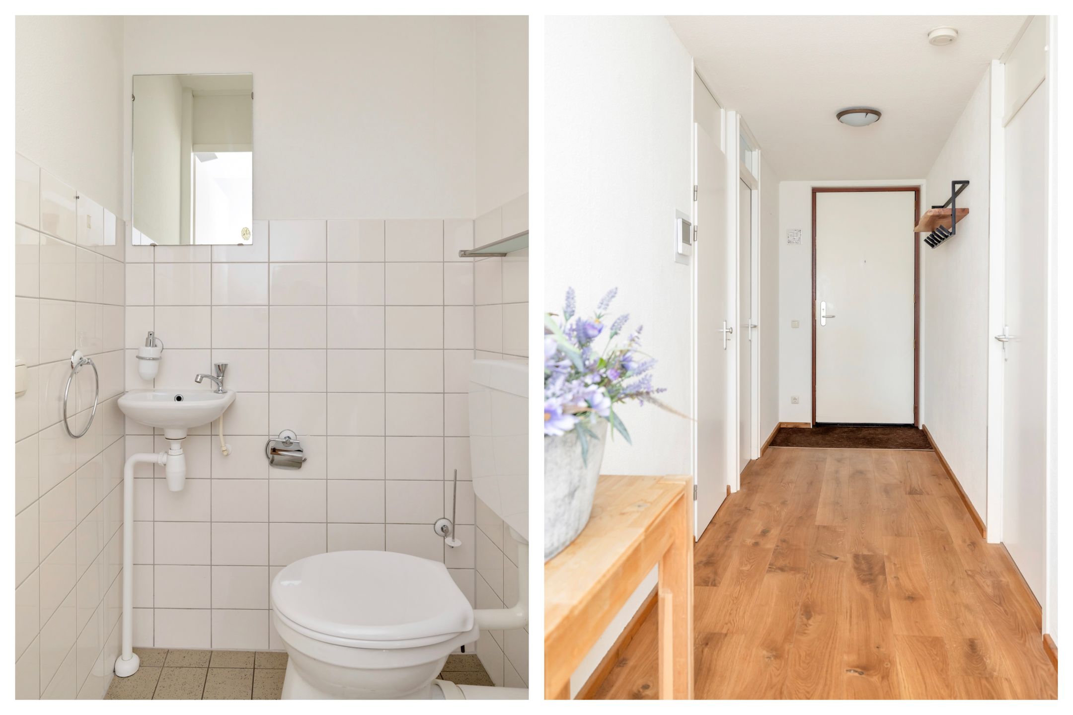 Heerlijk licht en net drie-kamer appartement op de tweede verdieping met vrij uitzicht, serre en twee slaapkamers. Het appartement ligt in een modern en goed verzorgd appartementencomplex. Op loopafstand vindt u het gezellige Schager centrum met veel voorzieningen en de andere kant op bent u zo op het NS station. Door de hoekligging heeft u heerlijk vrij uitzicht zowel vanuit de lichte woonkamer als vanuit de serre. Een ruim balkon op het zonnige westen zorgt ervoor dat u de laatste zonnestralen nog meepakt. Het appartement is netjes afgewerkt met strakke en lichte wanden en een eikenhouten parketvloer. Ook in de badkamer en in de keuken ontbreekt het u aan niets. In de werkruimte is ruimte voor uw wasmachine en vindt u de CV installatie. Op de tweede verdieping is een gezamenlijke fietsenberging aanwezig die met een lift bereikbaar is. Parkeergelegenheid vindt u voor het appartementencomplex. De servicekosten bedragen ca. 234,- per maand. Het appartement is bestemd voor eigenaarsbewoners van 55 jaar en ouder. Bouwjaar ca. 2001, gebruiksoppervlakte wonen ca. 100 m2, gebouw gebonden buitenruimte ca. 12 m2, inhoud ca. 349 m. Indeling: U komt binnen via de centrale entreehal met bellentableau, videofoon installatie, brievenbussen en trappenhuis met trap en lift. Indeling appartement: Welkom via de overkapte trappengalerij op de tweede etage. In de hal bevindt zich de meterkast (7 groepen, 2 x aardlekschakelaar en krachtstroom). Vanuit hier heeft u toegang tot de badkamer, de woonkamer en de slaapkamers. In de hal is een videofoon installatie aanwezig. De badkamer is volledig betegeld en is ingericht met een dubbel wastafelmeubel en een douchecabine. In de separate toiletruimte, die deels betegeld is, vindt u een toilet en een fonteintje. De eerste slaapkamer vangt veel daglicht en heeft een laminaatvloer en een inbouwkast. Vanuit de tweede slaapkamer heeft u zicht op de galerij. De woonkamer is heerlijk licht door de grote raampartijen en geeft toegang tot het royale balkon op het westen. Vanuit de serre kijkt u vrij weg over de Zuiderweg en de gemeenschappelijk tuin. Het balkon en de serre zijn een fijne verlenging van de woonkamer: een heerlijke plek om te ontspannen, te lezen of lange zomeravonden door te brengen met vrij uitzicht. In de open keuken vindt u een hoekopstelling voorzien van een inductie kookplaat, combi magnetron, vaatwasser en koelvriescombinatie. De technische ruimte herbergt de warmte-terugwin-installatie en de CV (Intergas combi HR 2021) en hier vindt u de wasautomaat aansluiting. Het appartement heeft een eikenhouten vloer in de entree en woonkamerkeuken. Interesse in dit huis? Schakel direct uw eigen NVM-aankoopmakelaar in. Uw NVM-aankoopmakelaar komt op voor w belang en bespaart u tijd, geld en zorgen. Adressen van collega NVM-aankoopmakelaars vindt u op Domek.nl.