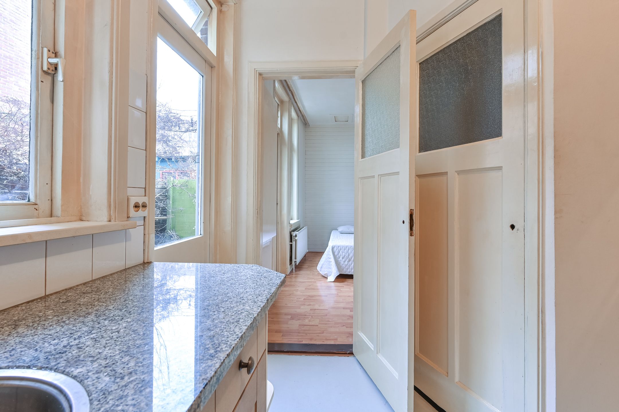 Midden in het zeer gewilde Kleverpark ligt deze leuke en gezellige benedenwoning met voor- en achtertuin op het zuiden op EIGEN GROND. Divers glas-in-lood is nog aanwezig. Het woonoppervlak van deze woning is maar liefst 62m2 en heeft een eigen schuurtje welke via de achterom te bereiken is. Het onderhoud is redelijk en verdient weer aandacht. Het Kleverpark staat bekend om zijn kindvriendelijke karakter en zijn centrale ligging. Het station en diverse uitvalswegen zijn in de directe omgeving. Wat letterlijk om de hoek is zijn de diverse servicegerichte kwaliteitswinkels waar het Kleverpark ook om bekend staat. Van diverse supermarkten, koffiebars, bakkers, elektronica winkel tot viswinkels en slijters. Laten we vooral niet de diverse speelplekjes, open vaarwater, de bossen, de duinen en het strand vergeten. Werkelijk alles in de directe omgeving! Kortom, een super leuke benedenwoning met voor- en achtertuin op toplocatie!! INDELING Parterre: entree, vestibule, gang, verdiepte trapkast, gezellige woonkamer met erker voorzien van glas in lood raampjes en deur naar de tuin, badkamer met wc, wastafeltje en douche, keuken voorzien van gaskookplaat, recirculatiekap, koelkast met vriesvak en combi oven, cv-ketel (Intergas HRE 2024), aansluiting voor wasmachine, deur naar de tuin, royale slaapkamer met wastafel en deur naar de tuin. ALGEMEEN Totaal woonoppervlak 62m2 BBMI. EIGEN GROND. C - label. Drowa chips in de kruipruimte. Spouwmuur isolatie. Gehele dak alsmede de dakpannen vervangen ca 20222023. Vloerbalken woonkamer vervangen waar nodig. CV-ketel Intergas HRE 2024. Servicekosten 40,= per maand voor onder andere onderhoud, verzekering. Eigen voor- en achtertuin. Oplevering in overleg, kan eventueel spoedig. ENGLISH TEXT This charming and cozy ground-floor apartment with south-facing front and back gardens is located in the heart of the highly sought-after Kleverpark on FREEHOLD LAND. Various stained-glass windows are still present. The living space of this home is a generous 62m2 and includes a private shed accessible from the rear. The maintenance is reasonable and needs attention. Kleverpark is known for its child-friendly character and central location. The train station and several major roads are nearby. Literally "around the corner" are the various service-oriented, high-quality shops for which Kleverpark is also known. From various supermarkets, coffee shops, bakeries, electronics stores, to fishmongers and liquor stores. And let's not forget the various playgrounds, open waterways, the woods, the dunes, and the beach. Truly everything is nearby! In short, a super nice ground-floor apartment with front and back gardens in a prime location! LAYOUT Ground floor: entrance, vestibule, hallway, recessed stair cupboard, cozy living room with bay window featuring stained glass and a door to the garden, bathroom with toilet, sink, and shower, kitchen equipped with a gas cooktop, recirculating hood, refrigerator with freezer compartment, and combination oven, central heating boiler (Intergas HRE 2024), washing machine connection, door to the garden, spacious bedroom with sink and a door to the garden. GENERAL Total living area 62m2 BBMI. PRIVATE LAND. C-label. Drowa chips in the crawl space. Cavity wall insulation. Entire roof and roof tiles replaced around 20222023. Living room floor joists replaced where necessary. Intergas HRE 2024 central heating boiler. Monthly service charges of 40.00 for maintenance, insurance, and other expenses. Private front and back garden. Delivery in consultation, can possibly be done soon.