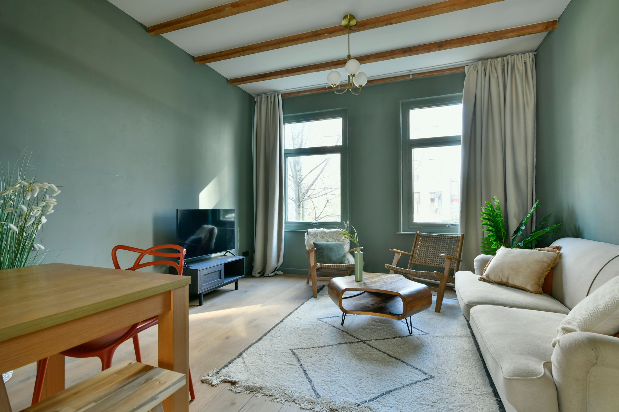 Unieke, ruime en stijlvolle gerenoveerde dubbele bovenwoning met eigen entree in de geliefde Vogelbuurt in Amsterdam-Noord. In deze leuke buurt bevindt zich dit smaakvolle appartement van 68 m2, verdeeld over twee woonlagen, met een eigen entree vanaf de straat. Een bijzonder kenmerk van de woning zijn de plafonds van circa 2,84 meter hoog met zichtbare houten balken, die zorgen voor een warme en authentieke sfeer en een opvallend ruimtelijk gevoel. De indeling geeft de woning meer het gevoel van een huis dan van een traditioneel appartement. In 20202021 is het appartement volledig gerenoveerd, waarbij onder meer de keuken, badkamer, vloeren en installaties zijn vernieuwd. De combinatie van natuurlijke materialen, warme kleurtonen en zorgvuldige afwerking zorgt voor een bijzonder sfeervolle en uitnodigende leefomgeving. De Vogelbuurt in Amsterdam-Noord is een populaire wijk met een aantrekkelijke combinatie van rust, groen en stedelijke voorzieningen. Op slechts vijf minuten lopen ligt het Vliegenbos, dat overgaat in het natuur- en recreatiegebied rond de Noorder IJplas ideaal om te wandelen, sporten of ontspannen aan het water. Op korte afstand bevindt zich het levendige Hamerkwartier met populaire restaurants, koffiebars en sportfaciliteiten langs het Hamerkanaal. Ook winkelcentrum Boven t IJ en diverse winkels en horeca liggen in de directe omgeving. Bereikbaarheid is goed. Metrostation Noord (NoordZuidlijn) ligt op circa vijf minuten lopen en brengt je snel naar Amsterdam Centraal en de Zuidas. Met de auto ben je binnen enkele minuten op de A10 en via de IJtunnel rijd je zo naar het centrum van Amsterdam. De combinatie van groen, voorzieningen en uitstekende verbindingen maakt de Vogelbuurt een zeer aantrekkelijke plek om te wonen. Vereniging van Eigenaren: De Vereniging van Eigenaren wordt professioneel beheerd door Pro VvE Beheer. De maandelijkse servicekosten bedragen 132,-. Erfpacht De erfpacht is vooruitbetaald tot 01-01-2057. Voor de periode daarna kan de koper gebruikmaken van de gunstige voorwaarden voor de overstap naar eeuwigdurende erfpacht, waarvoor in 2021 een aanvraag is gedaan. Deze voorwaarden zijn overdraagbaar op de nieuwe eigenaar. De koper kan daarbij kiezen voor: Eeuwigdurende afkoop: 17.845 Jaarlijkse canon vastklikken: 992,41 per jaar (vanaf 01-01-2057) Begane grond Via de eigen entree vanaf de straat betreed je de woning. Eerste verdieping : Aan de voorzijde bevindt zich de stijlvolle keuken met meerdere werkbladen en inbouwapparatuur zoals een inductiekookplaat en vaatwasser. Aan de achterzijde ligt de lichte woonkamer. Tussen de keuken en woonkamer bevindt zich het gastentoilet. Tweede verdieping: Op de tweede verdieping bevinden zich twee slaapkamers, Tussen de slaapkamers ligt de stijlvolle badkamer met marmerlook tegels, messing accenten, een zitbad en een infrarood douchespa. Daarnaast is er een technische ruimte met de cv-ketel en aansluiting voor de wasmachine-droger. Bijzonderheden : Volledig gerenoveerd in 2020-2021 Energielabel A Plafonds tot 3 meter hoog met zichtbare houten balken Vloerverwarming in de gehele woning Twee ruime slaapkamers Stijlvolle keuken met inductiekookplaat, vaatwasser en design koelkast; Luxe badkamer met ligbad, regendouche, infraroodsauna, marmerlook tegels en messing accenten Op de tweede verdieping zijn er op maat gemaakte glazen scheidingswanden Unique, spacious and stylishly renovated double upper-floor apartment with private entrance in the popular Vogelbuurt in Amsterdam-Noord. Located in this attractive neighbourhood, this tasteful apartment of 68 m2 is spread over two levels and features a private entrance directly from the street. A distinctive feature of the property is the ceilings of approximately 2.84 metres high with exposed wooden beams, creating a warm and authentic atmosphere and a striking sense of space. The layout gives the property more the feeling of a house rather than a traditional apartment. The apartment was fully renovated in 20202021, including the kitchen, bathroom, flooring and technical installations. The combination of natural materials, warm colour tones and high-quality finishes creates a particularly inviting and stylish living environment. Living in the Vogelbuurt The Vogelbuurt in Amsterdam-Noord is a popular neighbourhood that offers an attractive combination of tranquillity, greenery and urban amenities. Within a five-minute walk you will find the Vliegenbos, which connects to the extensive nature and recreational area around the Noorder IJplas ideal for walking, exercising or relaxing by the water. A short distance away is the lively Hamerkwartier, one of the creative hotspots of Amsterdam-Noord, with popular restaurants, coffee bars and sports facilities along the Hamer Canal. Shopping centre Boven t IJ, along with various shops, restaurants and daily amenities, is also located nearby. The accessibility is excellent. Metro station Noord (NorthSouth line) is approximately five minutes away on foot, providing a fast connection to Amsterdam Central Station and the Zuidas business district. By car, you can reach the A10 ring road within a few minutes, and via the IJ Tunnel you can quickly reach the city centre of Amsterdam. The combination of green surroundings, urban facilities and excellent transport connections makes the Vogelbuurt a highly attractive place to live. Homeowners Association (VvE) The homeowners association is professionally managed by Pro VvE Beheer. The monthly service charges are approximately 132,-. Ground Lease (Erfpacht) The ground lease has been paid in advance until 01-01-2057. After this period, the buyer can make use of the favourable conditions for switching to perpetual ground lease, for which an application was submitted in 2021. These conditions are transferable to the new owner. The buyer can choose between: Perpetual buy-off: 17,845 Fixed annual ground rent: 992.41 per year (starting from 01-01-2057) Layout Ground floor Private entrance from the street le